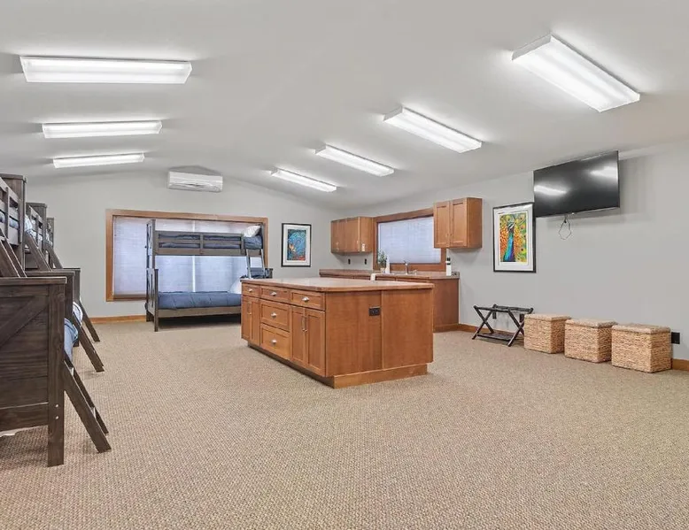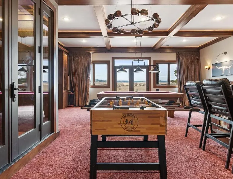 Spacious Holiday Home in Sturgis: Raz Hideaway offers a spacious holiday home in Sturgis, featuring eight bedrooms and six bathrooms. The property includes a living room and a fully equipped kitchen with modern appliances. Outdoor Spaces and Amenities: Guests can relax on the terrace or balcony, enjoy mountain views, and take a dip in the hot tub. Free WiFi is available throughout the property, ensuring connectivity. Convenient Facilities: The holiday home provides free on-site private parking, a washing machine, and a work desk. Additional amenities include a spa bath, fireplace, and barbecue area. Nearby Attractions: Adams Museum is located 22 mi away, and Rapid City Regional Airport is 49 mi from the property. This holiday home's special feature is the fireplace. Guests will find a stovetop, a refrigerator, a dishwasher and kitchenware in the well-equipped kitchen. The holiday home also offers a barbecue. The spacious holiday home provides a washing machine, a tea and coffee maker, a terrace with mountain views as well as a shared bathroom featuring a bath. The unit offers 18 beds.