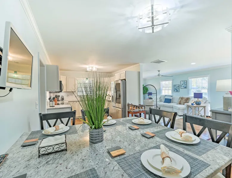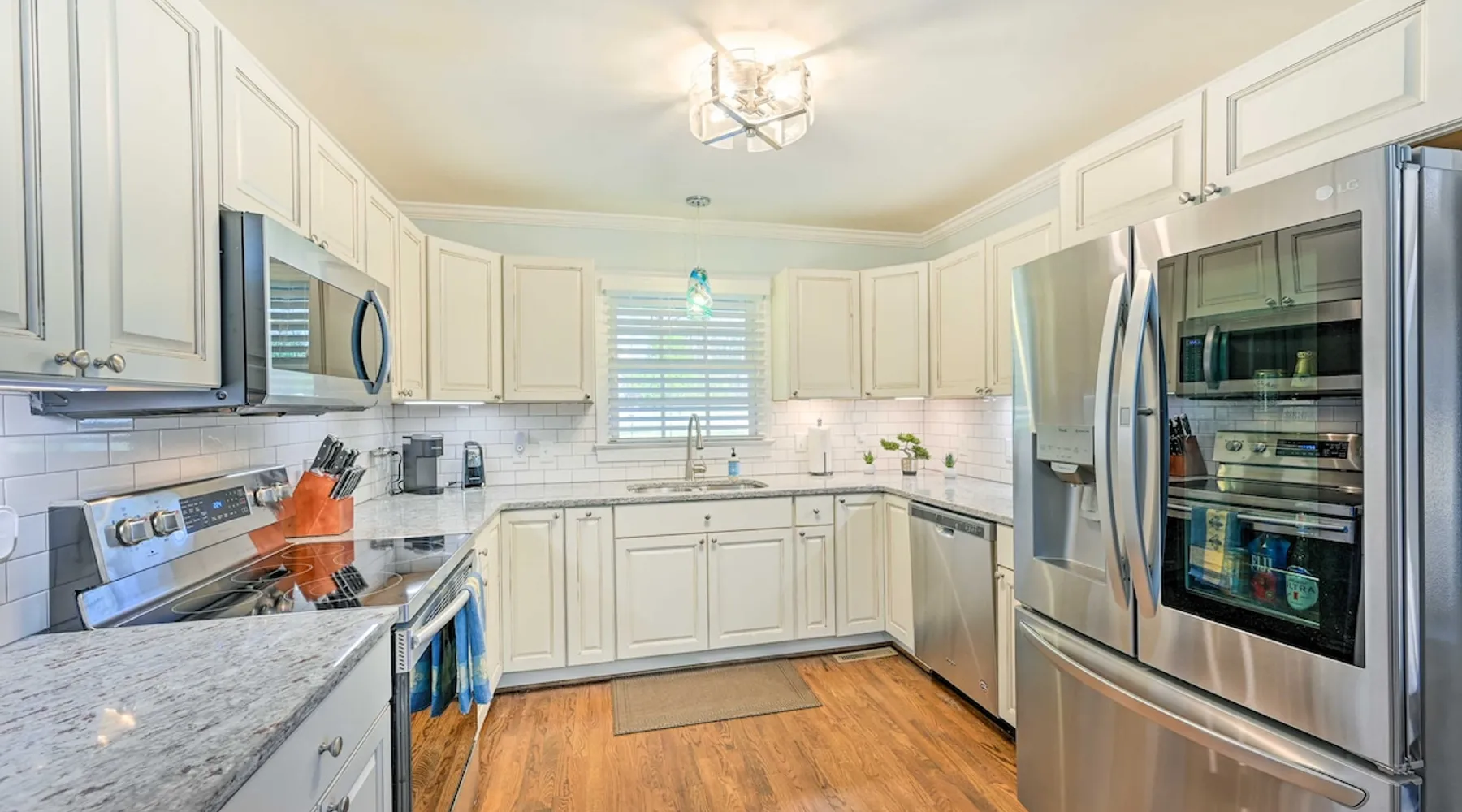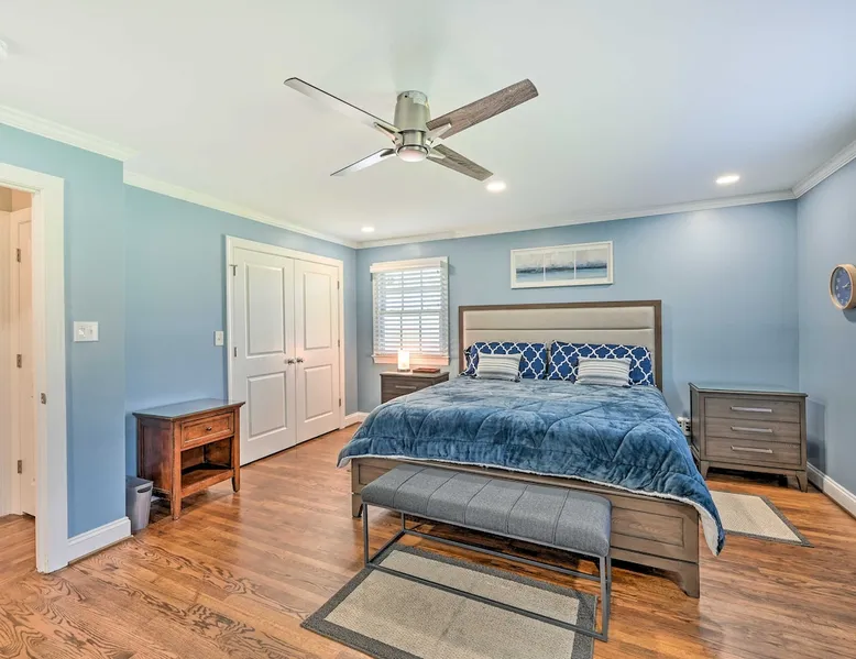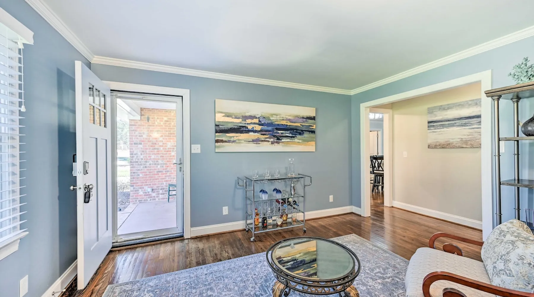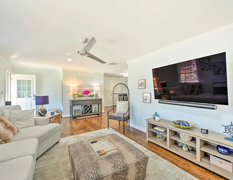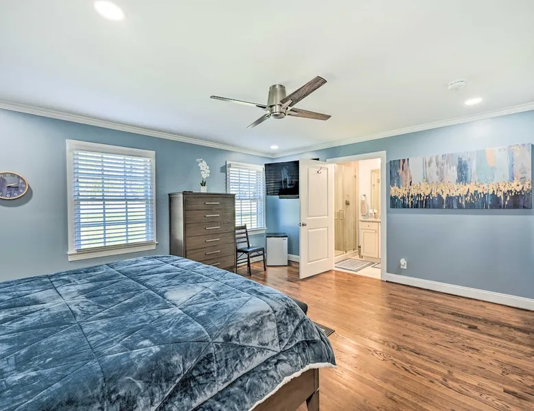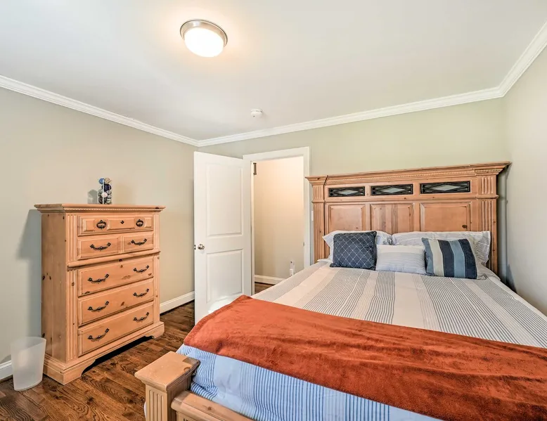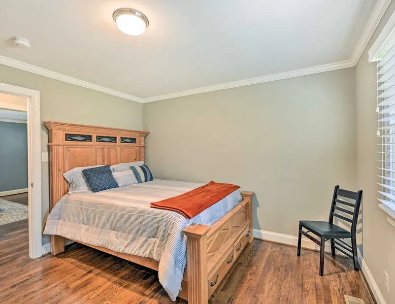 Get the best of the city at your fingertips while still enjoying private suburban living at this Greensboro, NC, vacation rental. This spacious 2-bedroom, 2-bathroom home is just 7 miles from Downtown Greensboro while also offering proximity to parks and lakes. Watch white-tailed deer run through the backyard while you have your morning coffee, walk to the trails at Lake Jeanette for a hike with your furry friend, then hit the city for a show at the Steven Tanger Center for the Performing Arts. The space 24-492 | Pet Friendly w/ Fee | Sonos Home Theater System | Bar Cart | Gas Grill | 1,850 Sq Ft Bedroom 1: King Bed | Bedroom 2: Queen Bed INDOOR LIVING: Smart TVs, dining table, en-suite bathroom OUTDOOR LIVING: Private yard, covered porch KITCHEN: Cooking basics, spices, dishware/flatware, dishwasher, smart fridge, stove, microwave, coffee maker, ice maker, water filter GENERAL: Free WiFi, keyless entry, central air conditioning, ceiling fans, complimentary toiletries, linens/towels, washer/dryer, iron/board, hangers, hair dryer, trash bags/paper towels FAQ: Pet fee (paid pre-trip), 2 external security cameras (facing out) SUITABILITY: Stairs required to access, single-story home PARKING: Driveway (8 vehicles) Guest access Guests will have access to the entire property via keyless entry Other things to note - No smoking - Pet friendly w/ $50 fee (+ fees & taxes) - No events, parties, or large gatherings - Additional fees and taxes may apply - Photo ID may be required upon check-in - NOTE: The property requires stairs to access - NOTE: Your safety matters. This property features 2 exterior security cameras. Camera 1 is a Ring doorbell device facing out from the front entry and camera 2 is over the front of the home facing out toward the driveway. They do not look into any interior spaces. The cameras record video and sound when activated by motion