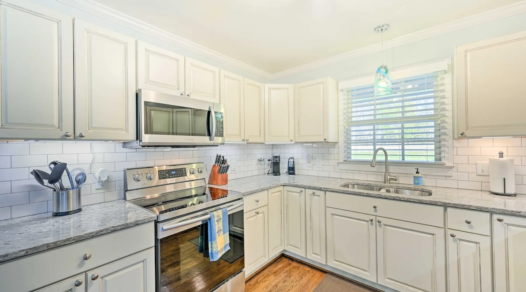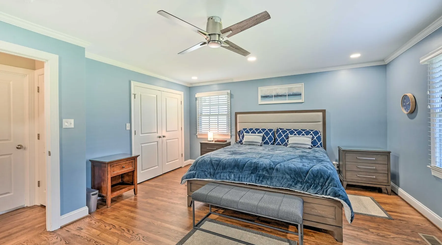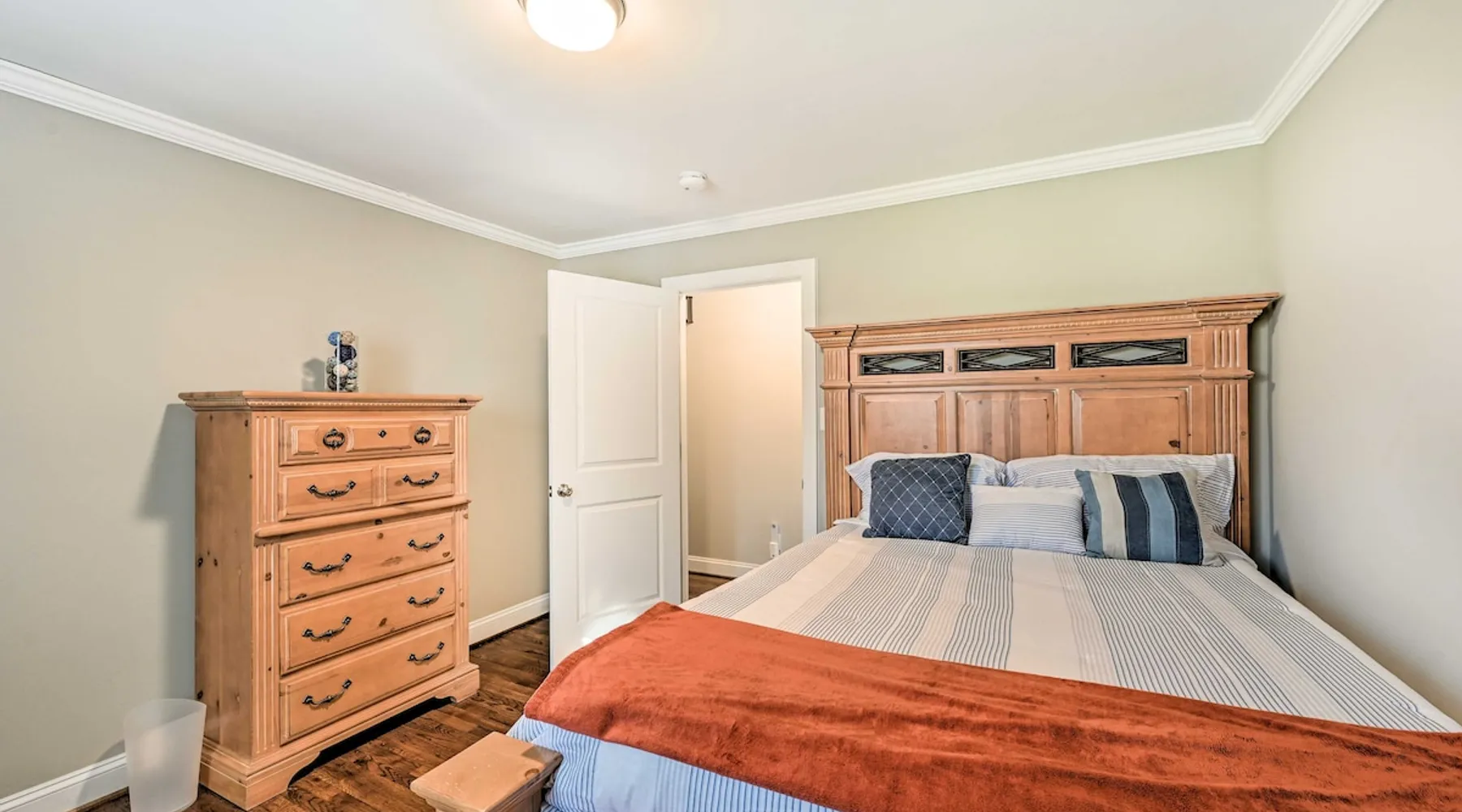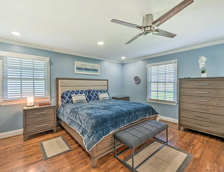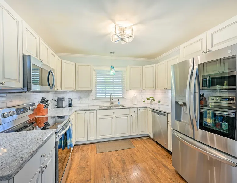Get the best of the city at your fingertips while still enjoying private suburban living at this Greensboro, NC, vacation rental. This spacious 2-bedroom, 2-bathroom home is just 7 miles from Downtown Greensboro while also offering proximity to parks and lakes. Watch white-tailed deer run through the backyard while you have your morning coffee, walk to the trails at Lake Jeanette for a hike with your furry friend, then hit the city for a show at the Steven Tanger Center for the Performing Arts. The space 24-492 | Pet Friendly w/ Fee | Sonos Home Theater System | Bar Cart | Gas Grill | 1,850 Sq Ft Bedroom 1: King Bed | Bedroom 2: Queen Bed INDOOR LIVING: Smart TVs, dining table, en-suite bathroom OUTDOOR LIVING: Private yard, covered porch KITCHEN: Cooking basics, spices, dishware/flatware, dishwasher, smart fridge, stove, microwave, coffee maker, ice maker, water filter GENERAL: Free WiFi, keyless entry, central air conditioning, ceiling fans, complimentary toiletries, linens/towels, washer/dryer, iron/board, hangers, hair dryer, trash bags/paper towels FAQ: Pet fee (paid pre-trip), 2 external security cameras (facing out) SUITABILITY: Stairs required to access, single-story home PARKING: Driveway (8 vehicles) Guest access Guests will have access to the entire property via keyless entry Other things to note - No smoking - Pet friendly w/ $50 fee (+ fees & taxes) - No events, parties, or large gatherings - Additional fees and taxes may apply - Photo ID may be required upon check-in - NOTE: The property requires stairs to access - NOTE: Your safety matters. This property features 2 exterior security cameras. Camera 1 is a Ring doorbell device facing out from the front entry and camera 2 is over the front of the home facing out toward the driveway. They do not look into any interior spaces. The cameras record video and sound when activated by motion