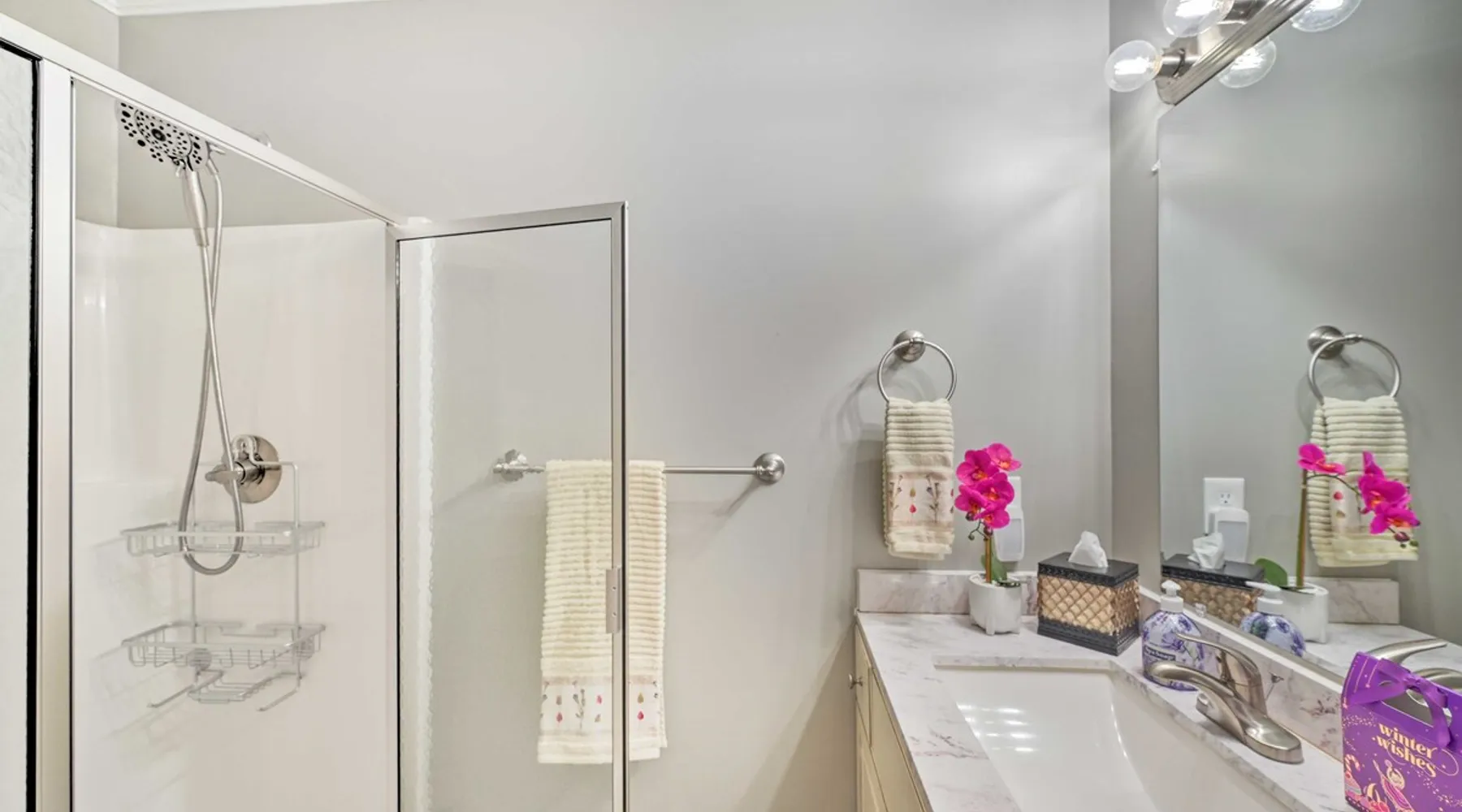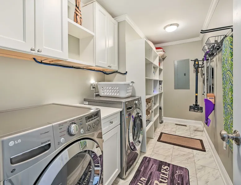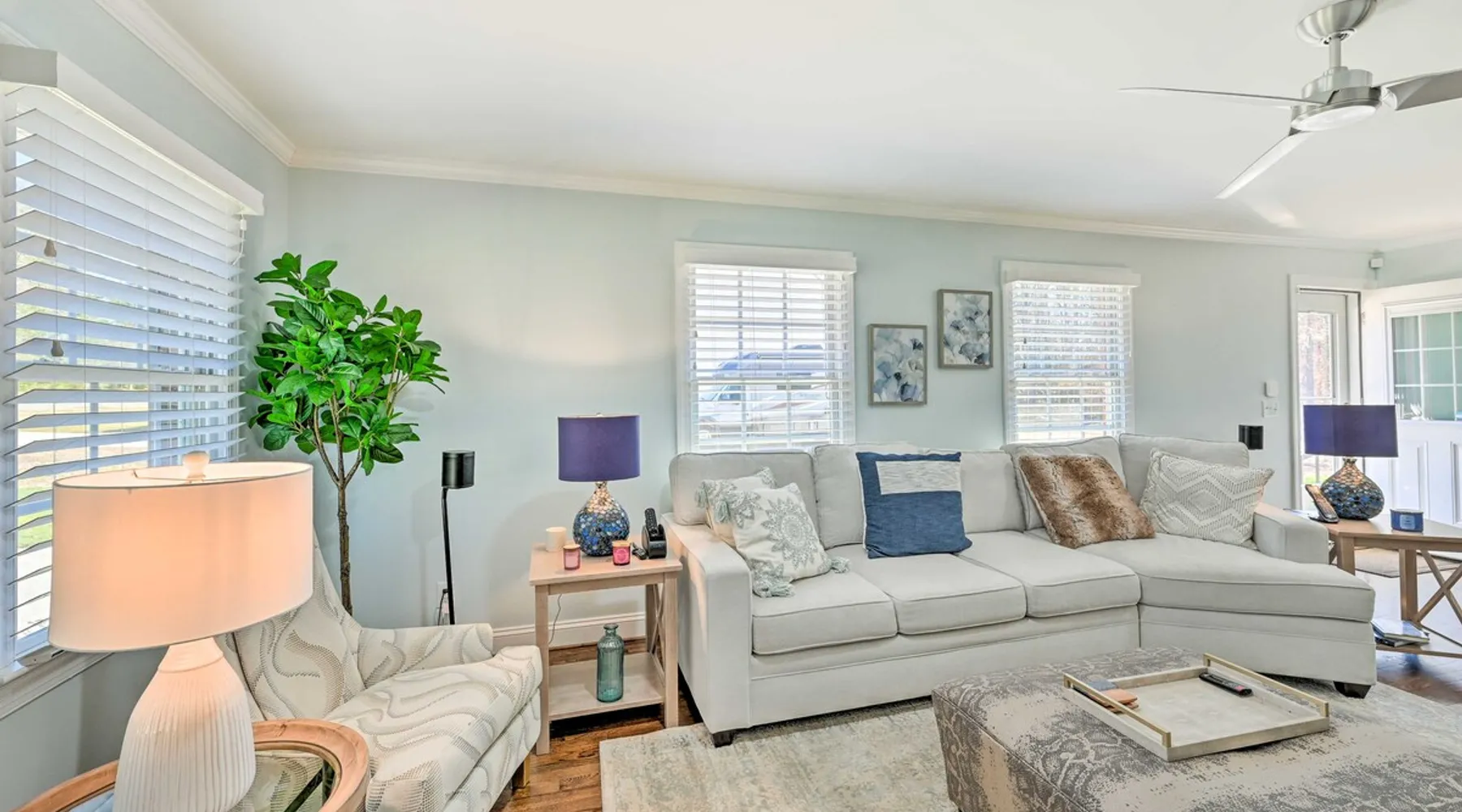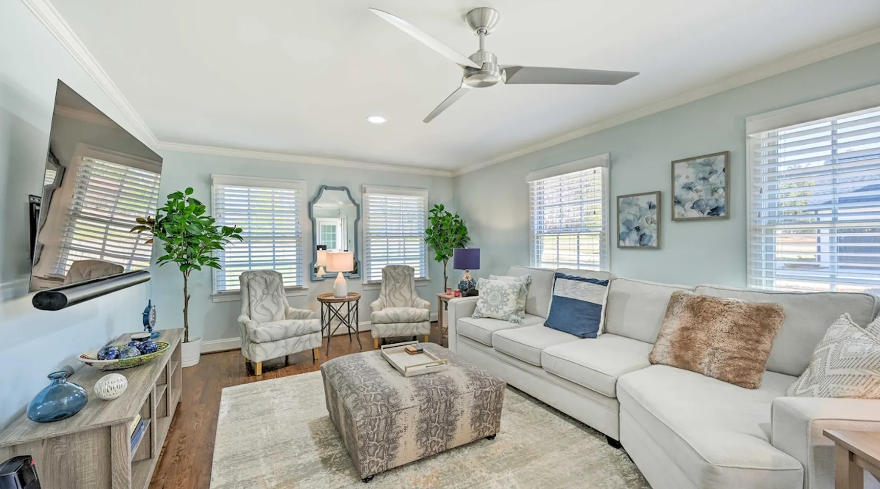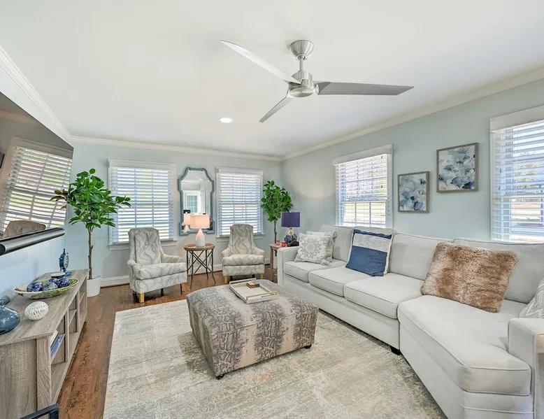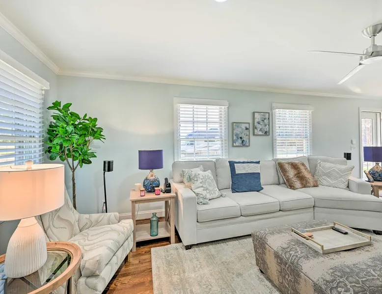 Get the best of the city at your fingertips while still enjoying private suburban living at this Greensboro, NC, vacation rental. This spacious 2-bedroom, 2-bathroom home is just 7 miles from Downtown Greensboro while also offering proximity to parks and lakes. Watch white-tailed deer run through the backyard while you have your morning coffee, walk to the trails at Lake Jeanette for a hike with your furry friend, then hit the city for a show at the Steven Tanger Center for the Performing Arts. The space 24-492 | Pet Friendly w/ Fee | Sonos Home Theater System | Bar Cart | Gas Grill | 1,850 Sq Ft Bedroom 1: King Bed | Bedroom 2: Queen Bed INDOOR LIVING: Smart TVs, dining table, en-suite bathroom OUTDOOR LIVING: Private yard, covered porch KITCHEN: Cooking basics, spices, dishware/flatware, dishwasher, smart fridge, stove, microwave, coffee maker, ice maker, water filter GENERAL: Free WiFi, keyless entry, central air conditioning, ceiling fans, complimentary toiletries, linens/towels, washer/dryer, iron/board, hangers, hair dryer, trash bags/paper towels FAQ: Pet fee (paid pre-trip), 2 external security cameras (facing out) SUITABILITY: Stairs required to access, single-story home PARKING: Driveway (8 vehicles) Guest access Guests will have access to the entire property via keyless entry Other things to note - No smoking - Pet friendly w/ $50 fee (+ fees & taxes) - No events, parties, or large gatherings - Additional fees and taxes may apply - Photo ID may be required upon check-in - NOTE: The property requires stairs to access - NOTE: Your safety matters. This property features 2 exterior security cameras. Camera 1 is a Ring doorbell device facing out from the front entry and camera 2 is over the front of the home facing out toward the driveway. They do not look into any interior spaces. The cameras record video and sound when activated by motion