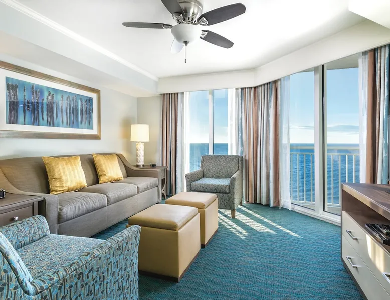 Welcome to our coastal getaway at Wyndham Towers on the Grove! Our charming studio suite offers a private balcony and a comfortable retreat for your beach vacation. Step inside and be greeted by a tastefully furnished living space, designed with your relaxation in mind. Book your stay in our studio suite at Wyndham Towers on the Grove and experience the beauty of the coast in a cozy and convenient setting. The space • Size: 337 - 371 • Kitchen: Full • Baths: 1 • Accommodates: 2 Guests • Beds: King Bed - 1 Room Amenities • Ceiling Fan - Some • Hairdryer • Washer/Dryer In Unit • DVD Player - Most • Television • Wi-Fi Internet Access • Balcony/Patio • Jetted Tub Resort Amenities • Beach (On-Site) • Beach Access • Children's Pool (Outdoor/Seasonal) • Computer With Internet (Shared) • Concierge Services • Fitness Center • Hot Tub (Outdoor) • Lazy River (Seasonal) • Sunbathing Area • Swimming Pool (Outdoor/Seasonal) • Water Playground • Wi-Fi Internet Access Nearby Activities • Boating • Fishing • Golf • Horseback Riding • Jet Skiing • Live Entertainment • Marina • Miniature Golf • Parasailing • Scuba Diving • Snorkeling • Tennis Courts • Water-Skiing Guest access Helpful Hints: • Some suites do not have ocean views. An ocean view can be requested but cannot be guaranteed. This resort offers alternative suite entry points to provide you the best views. As such you'll experience floor plans unique to this destination, including some suites that include a bedroom as the entry point Not all suites are oceanfront or oceanview Most of the one bedroom oceanfront suites have two full size beds Standard suites have a small galley-style kitchen and a dining room area that accommodates 3 to 4 people (varies per suite) This resort does not have an activities department This is a non-smoking resort; smoking is not permitted in the suites or balconies. Designated smoking areas are available on the ground level of the parking garage. Motorcycles are not allowed on property. The resort will undergo suite, lobby, and corridor renovations from Dec. 1, 2022 - April 14, 2023. During this time, you may encounter noise, dust, odors, and work crews on-site. Dates are subject to change. The Boulevard 2-bedrooms do not have a balcony. Resort & COVID-19 Alerts • Our updated housekeeping protocols for our resort operation teams are in place to minimize potential exposure to COVID-19 for our associates as well as owners and guests. These protocols include temporarily suspending housekeeping services while suites are occupied, including stay-over cleans for extended stays. • Resort amenities are available, except where prohibited by state or local mandate. Please note: Kids Clubs are temporarily closed. • We require the guest information for the primary guest (should at least be 21 years old) checking in to be provided as soon as possible to avoid check-in issues. Other things to note • Photos are not of the specific suite you are renting and your suite may vary slightly from the photos. • You have full access to all resort amenities for the duration of your stay, including on your arrival and departure day. • We will always place you in the best suite available, however we cannot guarantee a specific location in the resort. • Your suite may be a mobility accessible unit. • Information in this listing is provided by the resort and not independently verified. • We are not affiliated with the resort, you are renting directly from a timeshare owner. We help timeshare owners cover their HOA and maintenance costs when they can't use their properties. • You may be asked to watch a timeshare presentation, however you are under no obligation to do so and we recommend politely declining if you are not interested. • The guest checking in must be 21+ years old and present a valid credit card for a refundable damage deposit due at check-in. • Guests are required to accept additional terms and conditions in accordance with the resort's policies, including any applicable taxes and fees paid to the resort. • No refunds or credits will be granted outside of the listing's cancellation policy.