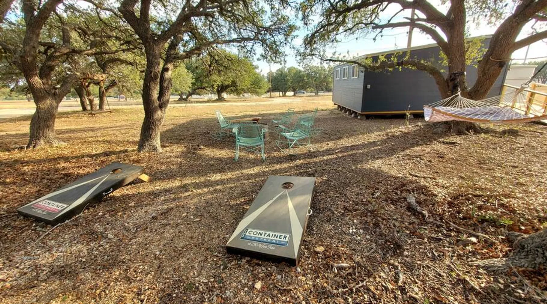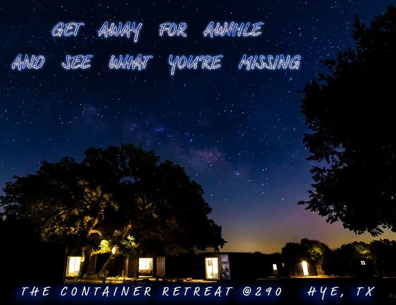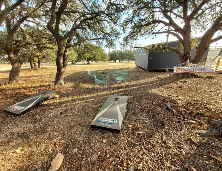 Welcome to The Container Retreat @ 290 Wine Trail! The perfect place to stay as you explore the beautiful Texas Hill Country and it's amazing wineries, parks, shops and people. We are happy to share our special getaway with you and truly hope you enjoy it as much as we do. The space We have now converted containers #11, #12 & #13 to be dog friendly. They are a bit larger and further away from the other containers so they are more conducive for a positive experience for all guests. Containers #1 - #10 will continue to only allow our human guests. Dogs must be crate trained and in the crate whenever left in the container alone (but let's face it, your gonna want your dog to be with you as you are out and about). All dogs must be on leash when not in the container and guests are required to pick up all dog waste or be assessed a $50 fee. Please dispose of your doggie bags in the dumpster and not in the container. Our standard fee will be $35 per pet, per visit, maximum of two dogs and a maximum weight of 50 pounds each. If you plan to have the dogs on any furniture, please bring your own blanket for them to lay on. This unit is a 40' shipping container that has been converted into a tiny home in the heart of the Texas Hill Country complete with one bedroom with a queen sized bed, full bath with walk-in shower, kitchenette with mini fridge and microwave, dining table and full sized convertible couch in the living room. The peace and tranquility is amazing and we are right in the middle of over 50 Texas Hill Country wineries. We have three within walking distance that you can begin to enjoy as you settle in: Blue Lotus Winery and Silver Dollar Winery to the east and Untamed to the west. So whether you are looking for a quick getaway or a home base while you attend one of the many festivals and events in the surrounding areas, we are the right choice. Guest access Our 40' containers are arranged in pods of four surrounding majestic oak trees and lush landscaping with just enough ambient lighting to make it relaxing and comfortable. If you want to hang out, just walk over to the common area where you will find open space, picnic tables, grills, giant beer pong, wooden tower game, ring games, chairs, a hammock and our custom Container Retreat cornhole boards. Because we want to preserve our beautiful oak trees, we do not currently offer a fire pit. Other things to note Our mattresses were custom handmade locally from Cantwell Mattress in San Antonio. These mattresses are made in Texas with 100% All-Natural Cotton sourced in Texas. Our shampoo, conditioner and body wash are made with 100% Pure Morocco Argan Oil and are 100% Vegan & Cruelty-Free. In addition, our hand soap is made with essential oils, aloe vera, olive oil, and without parabens, phthalates or artificial colors. We have provided everything you need in our kitchenette, including a corkscrew and wine pourer to enjoy your Texas Hill Country wine. Couples getaway, check! Girls weekend, check! Bachelor or Bachelorette parties, check! Whatever the occasion, we are the right choice. We have twelve other listing and can accommodate groups of up to thirty two.