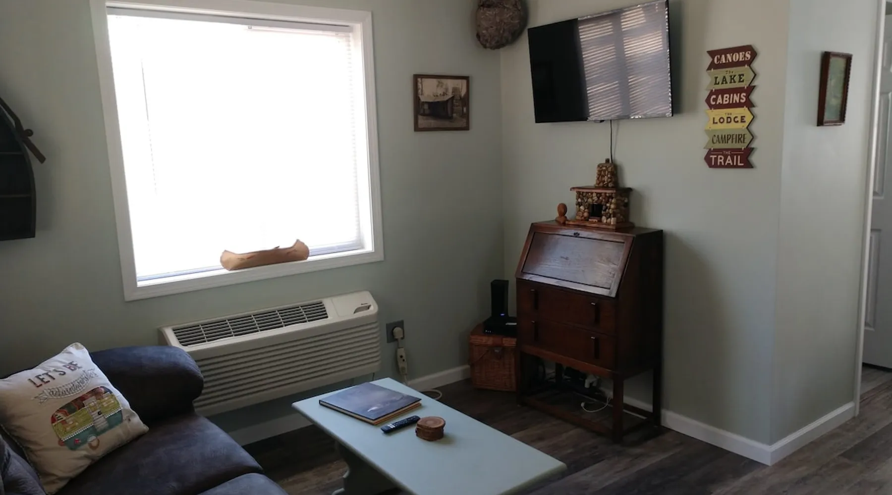 Nature's Nest at Cold Creek Farm mini cabin. 1 bed, 1 bath getaway in the middle of the Chain of Lakes area. Equipped with elec. stove, microwave and small fridge. Wi-fi. Smart This is the perfect location for boating, golfing, wineries and brew pubs, sight-seeing along Lake Mich beach towns. TC, Petoskey & Gaylord are a 40 min. drive. There's also hiking trails along the creek. Lake access nearby. Open May- Oct. Read house rules before booking!