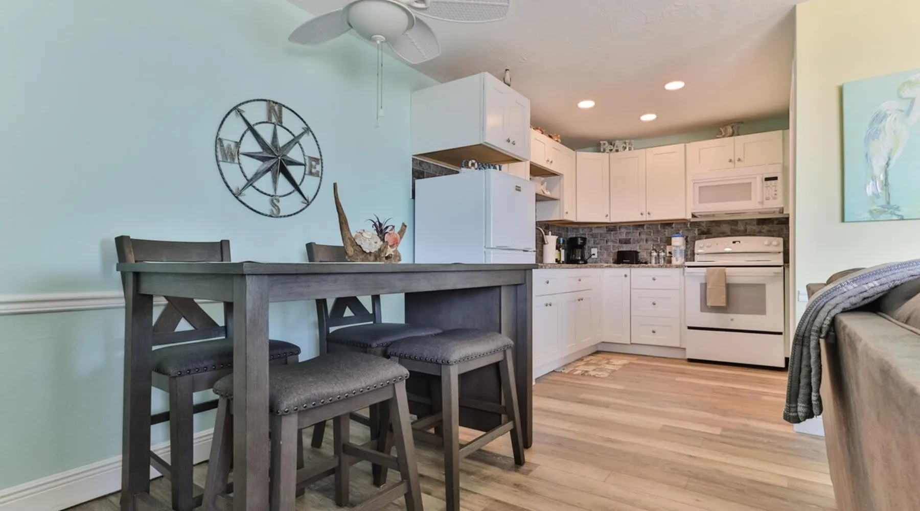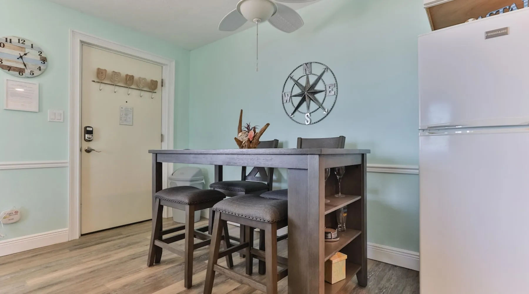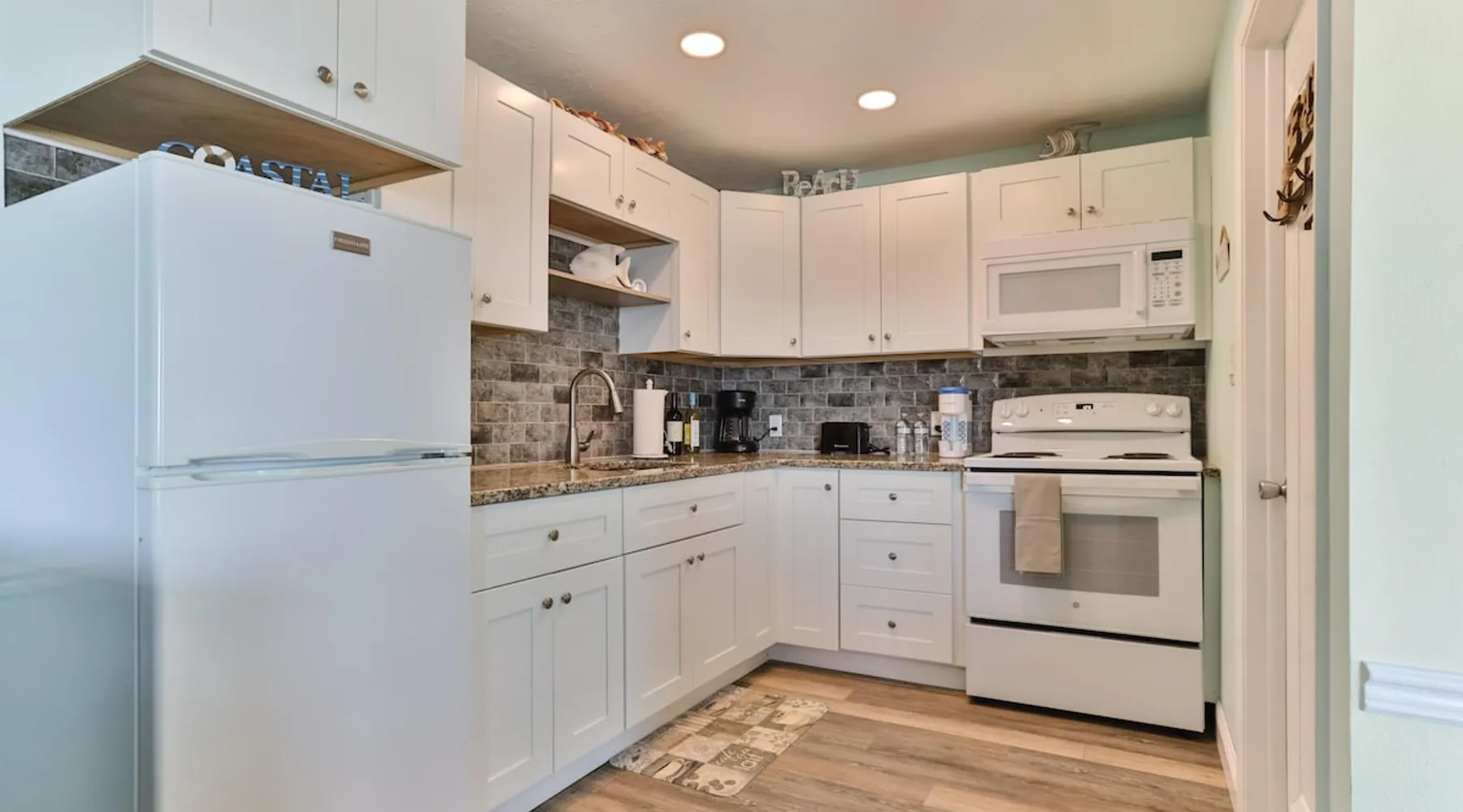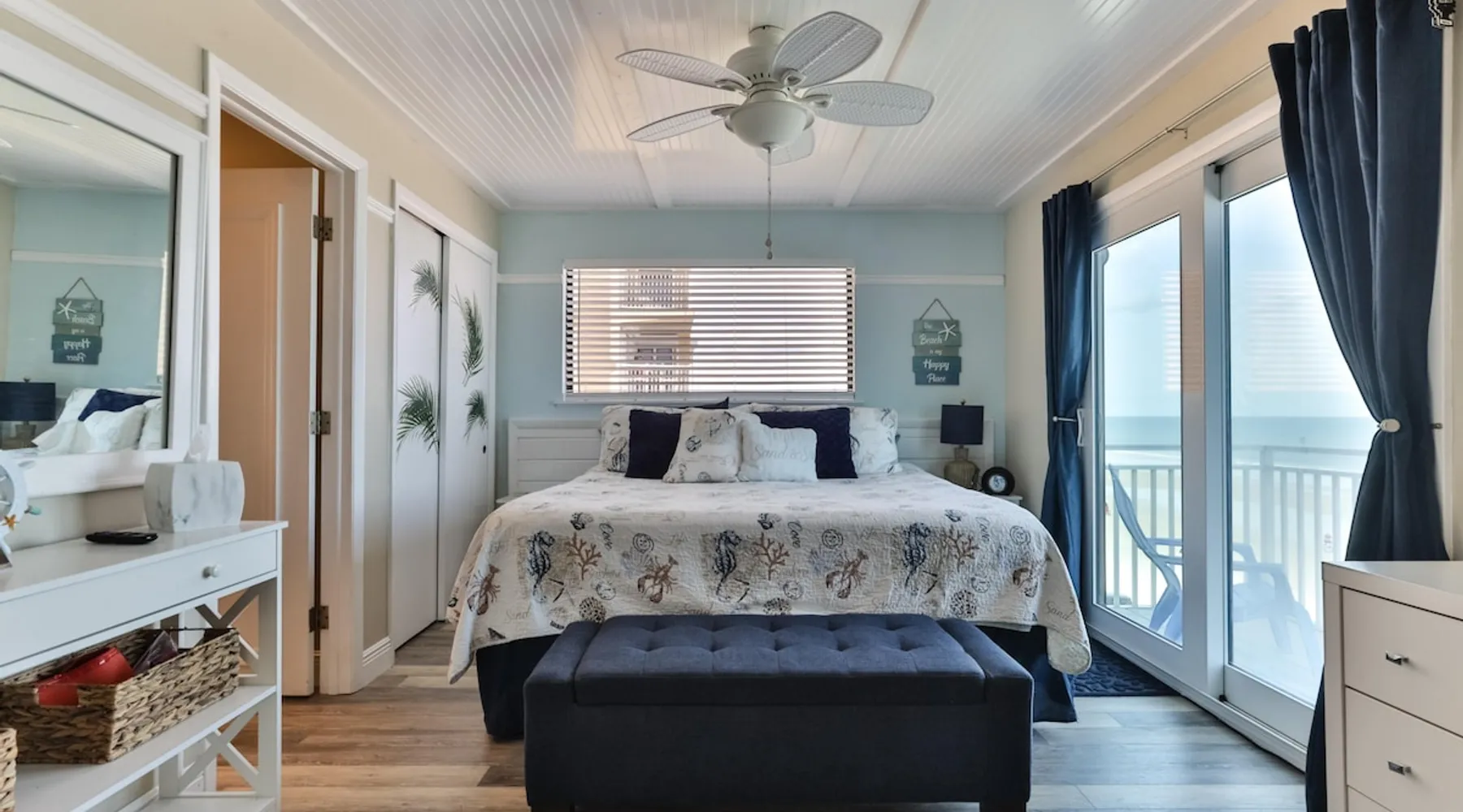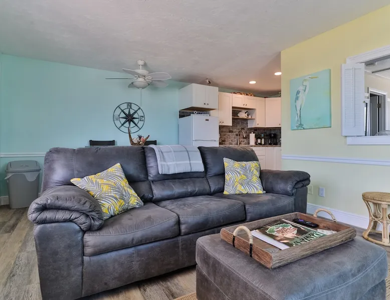Coastal Waters 309 The space This oceanfront condo in Coastal Waters captures the quintessential New Smyrna Beach lifestyle in this coastal styled unit with luxurious finishes matched with the finest materials. A 1/1 waterfront condo that offers indoor/outdoor living spaces that connect with spectacular views. Enter to a coastal inspired living room with hurricane proof sliders that open to cool ocean breezes on the wrap around balcony. This is the place you’ll spend your time gazing out over the blue Atlantic Ocean, you’ll be treated to surfers and dolphins playing in the waves during the day and spectacular sunrises in the mornings. unique to this condo is the interior window between the bedroom and living room that contribute to the grandeur and open space feeling while enhancing this unit's already amazing ocean views. Warm colors of this unit compliment the azure Atlantic Ocean backdrop. As you enter this home find yourself in a light beach living room area with comfortable seating (including a full size pull out sofa bed for extra guests) from which to enjoy the large wall-mounted smart TV with cable and views of the water. Adjacent to the living room area is a colorfully accented dining area with seating for 4 making it easy for everyone to eat together. The tidy kitchen comes well-equipped for at-home convenience featuring a full size stove and oven, drip and keurig coffee maker, refrigerator, microwave and more. The primary bedroom has a luxurious King bed, TV, and access to the balcony with seating, the ensuite bathroom has a full size tub/shower combo, All beds are furnished with premiere linens for your comfort. This one-of-a-kind vacation rental is perfect for a romantic getaway or couple’s retreat. We invite you to experience the unparalleled peaceful tranquility of Coastal Waters. Head downstairs to the pool deck where you can take a dip in the heated pool and unwind while listening to the soothing sounds of the ocean. Coastal Waters is an oceanfront complex on the driving section of New Smyrna Beach. When you're not basking on the white sands of NSB, you'll find the complex provides great on-site amenities such as a heated swimming pool, 2 gas BBQ's and direct ocean access. Within walking distance to many great restaurants with just a short drive from Flagler Ave. Located near 27th avenue park, walking distance to some of NSB’s popular hometown restaurants and just minutes away from Flagler Avenue & Canal Street! There is parking in the front and an overflow parking across the street which can accommodate your trailer or boat, parking is first come first serve with appropriate parking pass. New Smyrna Beach is known for its small town character and family atmosphere. The warm climate, wide, white sand beaches, and variety of outdoor activities make this the perfect Florida beach vacation spot. PLEASE NOTE: : The condo is located on the 3rd floor and there is no elevator. We provide a "starter supply" of toilet paper, paper towels, hand soap, and trash bags. The starter supplies should suffice until a trip to the store is required. We do recommend you bring shampoo/conditioner, soap, coffee, and anything else you may need for your perfect vacation!