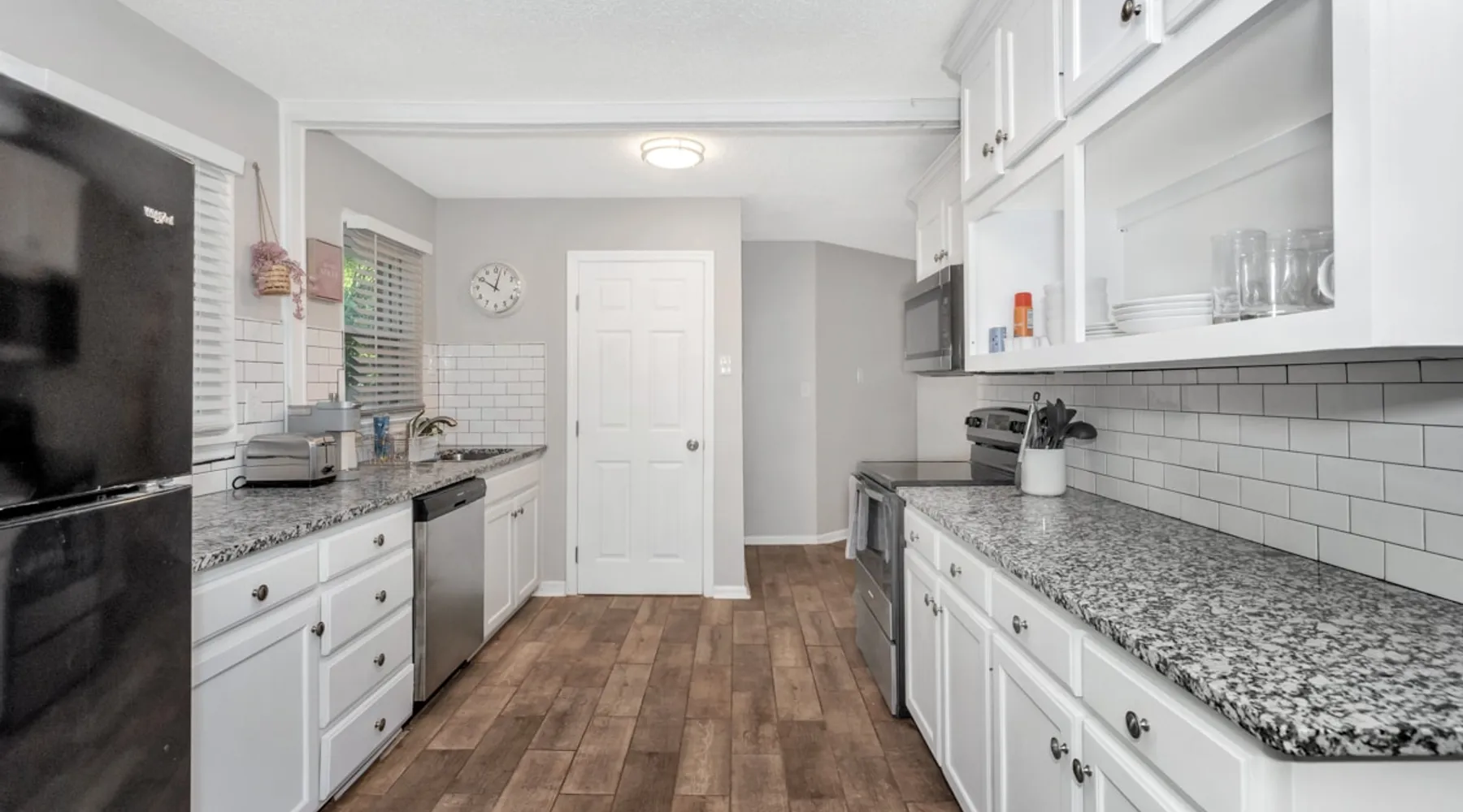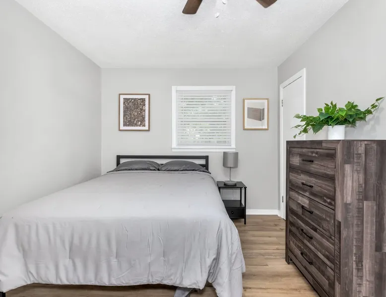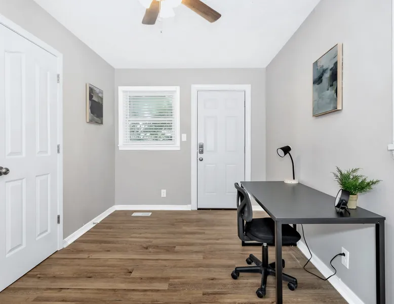 This home is perfect for business travelers, families in transit, and those visiting for both short and long term stays. The space In this two bedroom, two bathroom apartment, all bedrooms have queen mattresses, as well as closets and dressers (so great storage for both short and long term guests). There is a room with a desk, chair and door that can be used an office. The kitchen has a Keurig coffee maker, toaster, microwave, electric stove and oven, as well as a full size refrigerator and freezer. The living room is cozy and comfortable with a new reclining couch. Guest access Guests have access to the entire home. Other things to note There are security cameras on the exterior of the house (none inside). We have regular pest control, but during the summer months, there may be more pest activity due to heat and moisture. If you encounter any issues, please notify us and we will send someone ASAP.