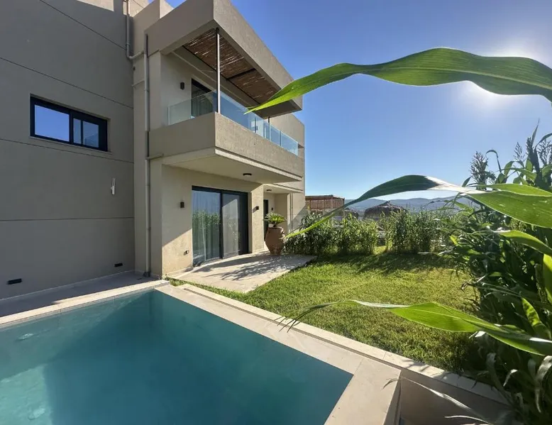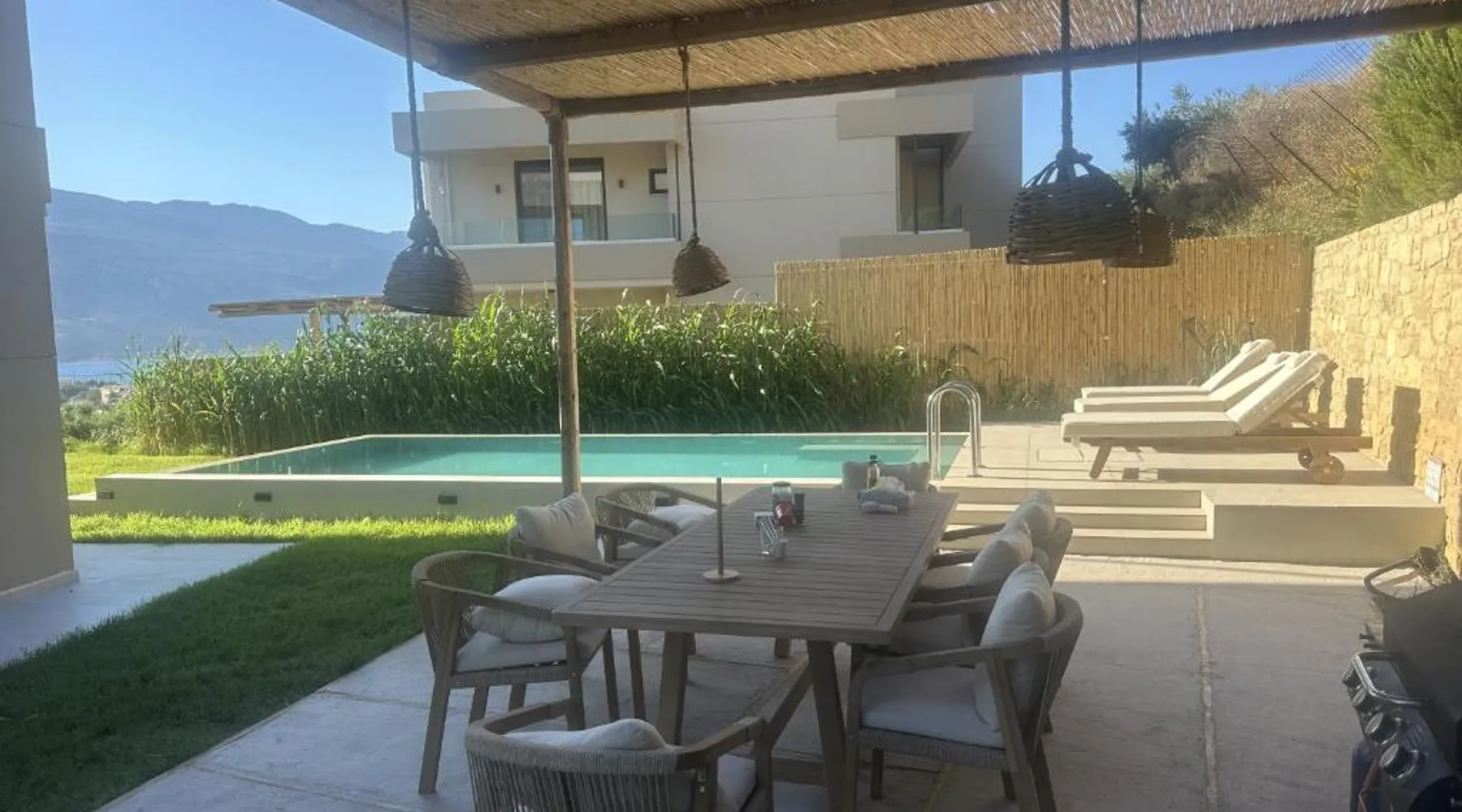 Elegant Accommodations: Nusa Retreat in Trachilos offers a recently renovated holiday home with a garden and terrace. Free WiFi is available throughout the property. Comfortable Amenities: The residence features family rooms, air-conditioning, a kitchenette, balcony, and private bathrooms. Additional amenities include a private pool with a view, hot tub, and outdoor dining area. Prime Location: Located 34 mi from Chania International Airport, Nusa Retreat is an 8-minute walk from Viglia Beach and 0.9 mi from Kissamos Port. Nearby attractions include Ancient Falassarna (7.5 mi) and Platanias Square (19 mi). Guest Satisfaction: Highly rated for its pool with a view, scenic location, and attentive host. Guests will have a special experience as the holiday home offers a pool with a view. This spacious holiday home consists of 1 living room, 3 separate bedrooms and 4 bathrooms with a walk-in shower and free toiletries. Guests will find a stovetop, a refrigerator, a dishwasher and kitchenware in the fully equipped kitchen. The holiday home also offers a barbecue. The air-conditioned holiday home provides a flat-screen TV with streaming services, a washing machine, a private entrance, soundproof walls as well as sea views. The unit offers 4 beds.