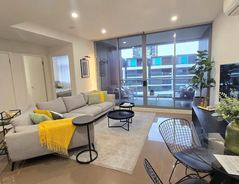 Professionally managed by Holiday Rentals Australia, this stunning, luxury 1 bedroom apartment in Waterloo with exec-standard separate study and allocated indoor parking is everything a discerning traveller needs. In a building with a pool, gym and communal gardens, you'll be thrilled by your home away from home during your visit to Sydney. The apartment has free wifi, its own inbuilt laundry, twin HDMI monitors in the study plus ergonomic chair and large desk. The space This bright and spacious one-bedroom apartment with a separate, dedicated study area is ideal for a travelling exec or those who work from home but want a change of scenery to visit a new city. The living room features a huge and comfortable sofa ready for your rest and relaxation and the large Samsung Frame tv provides high-definition access to tv and movies through your own streaming accounts. The living room also has a large split system air conditioning/heating unit which helps to keep the apartment cool or warm depending on your needs. The kitchen is fully equipped for most things you might need during your stay, including a Nespresso-compatible coffee machine, dishwasher and all usual amenities. The apartment has a large, enclosed balcony with a view over the square outside. There is seating for four for those guests who like to entertain. The bedroom features a luxurious king-size bed with deep, top-quality Ecosa memory foam mattress. Automatic blackout blinds lower at the push of a button to help give you a sound sleep and there is plenty of storage in the large, mirrored wardrobe. Please be aware there is no direct air conditioning in the bedroom but cooling from the unit in the living room normally keeps the bedroom temperature very pleasant. There is a wall-mounted heater for winter use also and a portable fan for the summer in case it is needed. The bathroom has a specialist, dual head shower with waterfall-type and flexible directional-type shower heads. The toilet is a Japanese-style electronic heated button-controlled bidet toilet which is certain to leave you fresh, clean and with a surprising spring in your step. The apartment has a built-in laundry room with a washing machine and separate dryer that guests are free to use. The apartment has one large allocated underground parking space that is free for guest use. Outside of the apartment, the building has a shared pool as well as a small gym you are welcome to use. Communal gardens are great for relaxing in the summer and taking in some rays or having a picnic with your friends. We're a kind, honest, hard-working team that genuinely wants to deliver 5 star guest stays. During your stay please reach out if we can help you in any way; we can only help if we know and we're dedicated to making your visit a happy one. This property is managed by Holiday Rentals Australia, a professional and licenced dedicated holiday rental agency. By choosing to book with professionals, you can be assured your stay is in the best possible hands. All guests are urged to read the House Rules prior to completing their booking, these can be found on the final booking page along with Airbnb's Terms and Conditions. Guest access Guests have full use of the apartment. No one else will be using the apartment. Other things to note All the apartments we manage come with a welcome letter and detailed information so you know how everything works to ensure you can get the most out of your stay. All bedding and towels (note one bath towel per person) are included for 2 people as booked along with beginner basics such as tea, coffee, sugar, milk, shampoo, bodywash and toilet paper to get you through the first few days. All bookings are assumed to be one or two people sharing bed the only. The sofa is not to be used as a bed. Prior to arrival, we ask all guests to quickly fill in some contact information and tell them a little bit more about how we hope they'll look after the apartment. Please note as we continue to improve the property over time the furniture and furnishings may change from those shown in the photos. Registration details PID-STRA-55343