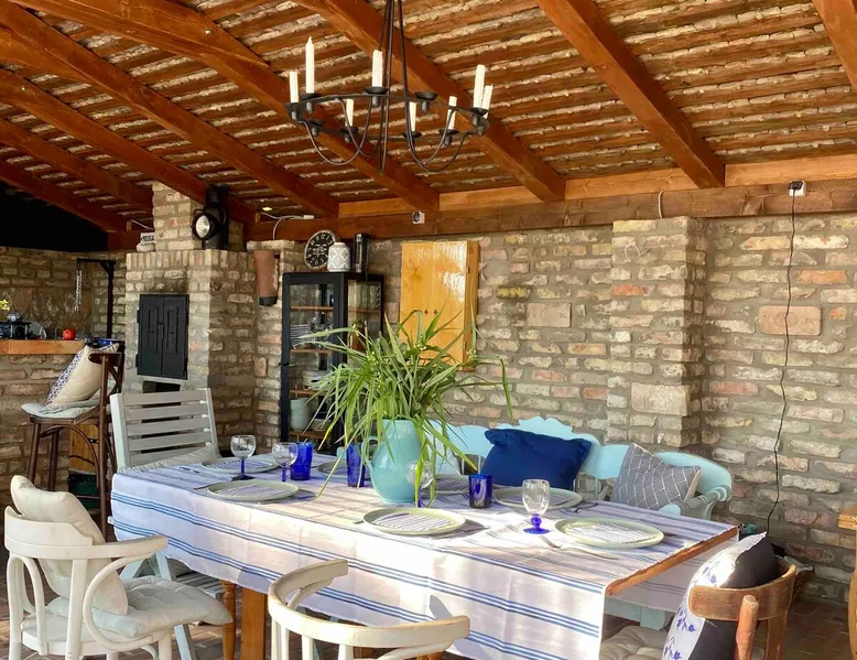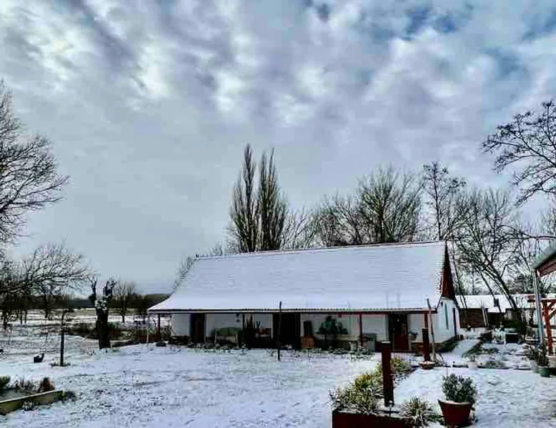 The price is for 6 people, each additional guest is 65 euro (max 8 people) Our 2 guesthouses are located next to Kecskemét, in the Kiskunság National Park by the sand dunes of the Kulöpház. We can comfortably accommodate our guests in 3 apartments of our 2 guesthouses. Ideal number of guests 6-8 people. The price is per person and includes breakfast and taxes. This is a working farm with different native animals and orchards. We live here, too, so this is a great opportunity to get a glimpse into the everyday life of farm life. The space 1. Guest House The farmhouse built of adobe has 1 bedroom-living room 30 m2 room to the right and to the left. The lobby has access to a vintage style bathroom and separate toilet. 2. Guest House This two-story cozy family room ( 2 bedrooms) is located in a hunter style house and through a small hallway, we get into a community space with a fireplace. We only rent the accommodations together, so we can guarantee that only our guests will be on the property. Of course, this also applies to the pool and wellness. Guest access What is still included in the price: 🔹abundant breakfast from local producers 🔹IFA 🔹heated salt water pool 10*4m 🔹wellness: jacuzzi, steam and salt cabin, fitness use of🔹 outdoor games ( wood playground, swing, trampoline) 🔹petanque track 🔹Wifi 🔹Netflix 🔹 coffee, tea, lemonade consumption ( limited ) 🔹kettle - BBQ use In addition to a pleasant stay, we can offer a lot of exciting excursion tips in the area… plus a backyard menu can be ordered upon request… Other things to note Min. 6 people, max. 8- 10 people. Up to 3 years of age 50% Dogs per night 4000 ft The pool is out of service from October to May. The wellness is in operation all year round. - no weekend price - no extra cleaning fee - no tourist tax fee - no wellness use extra fee - no other hidden costs Breakfast included Wellness use included The apartments don't have a classically designed kitchen, so it's not really suitable for cooking. There is a grill and kettle. The hosts are willing to cook from their own products for their guests ( a three-course menu per person 29 Euro) They do deliveries from nearby restaurants, pizza places. Registration Details MA23060339
