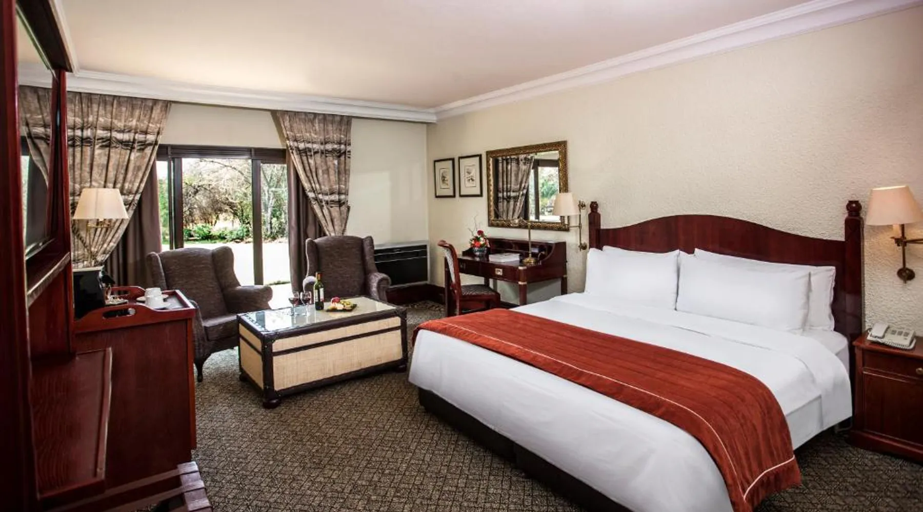 Avani Gaborone Hotel & Casino is located within the heart of the capital city and is 20 minutes’ drive from the Gaborone International Airport. The hotel features a casino, outdoor swimming pool and business center. The classic, air-conditioned rooms come equipped with a desk, sofa and flat-screen satellite TV. Some rooms have a mini-bar. The private bathrooms include free toiletries. Avani Gaborone Hotel & Casino offers a selection of restaurants, the Mahogany’s restaurant serves an à la carte menu and the Savuti Grill buffet-style restaurant features delicious carvery. With several bars, guests can enjoy an array of cocktails and beverages. Facilities include a tennis and squash court, children’s playground and the 24-hour front desk can arrange a complimentary airport shuttle upon request. Free private parking is available on site and the Gaborone Golf Club is a 5-minute walk away. This guest room offers a flat-screen TV with satellite channels, a desk, a safe and tea-and-coffee-making facilities. The bathroom is fitted with a bath or shower, hairdryer and shaver power point.