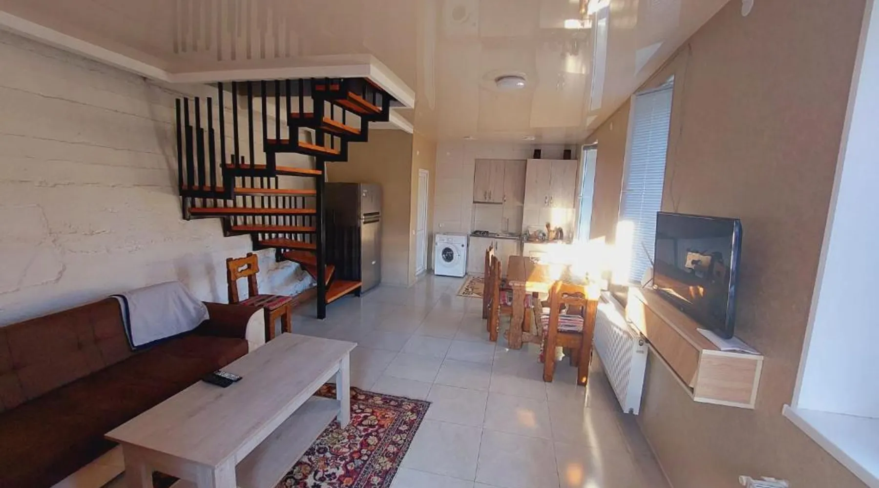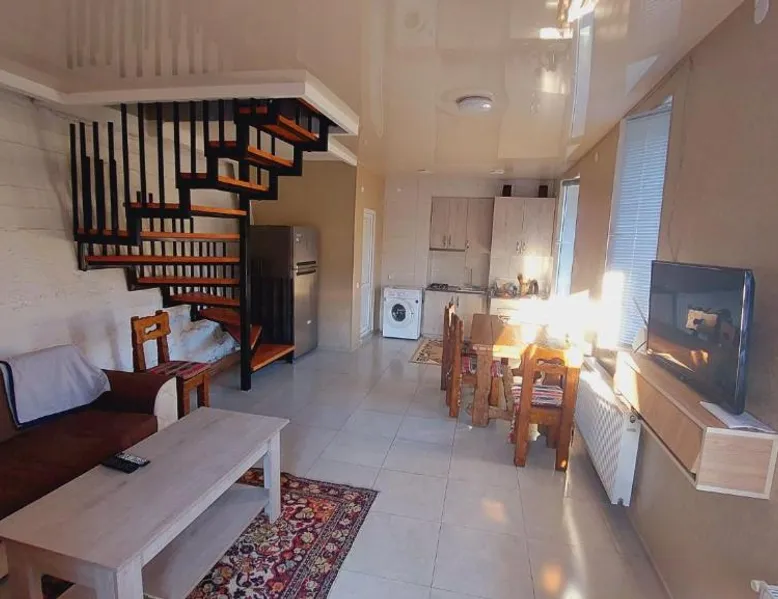 Comfortable Accommodations: Mtskhetela's House in Mtskheta offers a holiday home with two bedrooms and three bathrooms. The property features a spacious living room, fully equipped kitchen, and a balcony with garden views. Outdoor Spaces: Guests can relax on the sun terrace or in the garden, enjoying free WiFi throughout the property. The outdoor seating area and picnic spots provide ample space for leisure activities. Convenient Facilities: The holiday home includes air-conditioning, a kitchenette, washing machine, and a TV. Additional amenities include free on-site private parking, luggage storage, and barbecue facilities. Prime Location: Located 24 mi from Tbilisi International Airport, the property is near attractions such as Medical University Metro Station (12 mi) and Tbilisi Opera and Ballet Theater (15 mi). Highly rated for its host, room cleanliness, and convenient location. Boasting 2 bedrooms and 3 bathrooms, this holiday home has a living room and terrace where you can relax. The holiday home's kitchen is available for cooking and storing food. The air-conditioned holiday home offers a flat-screen TV, a washing machine, a sofa, heating as well as garden views. The unit offers 3 beds.