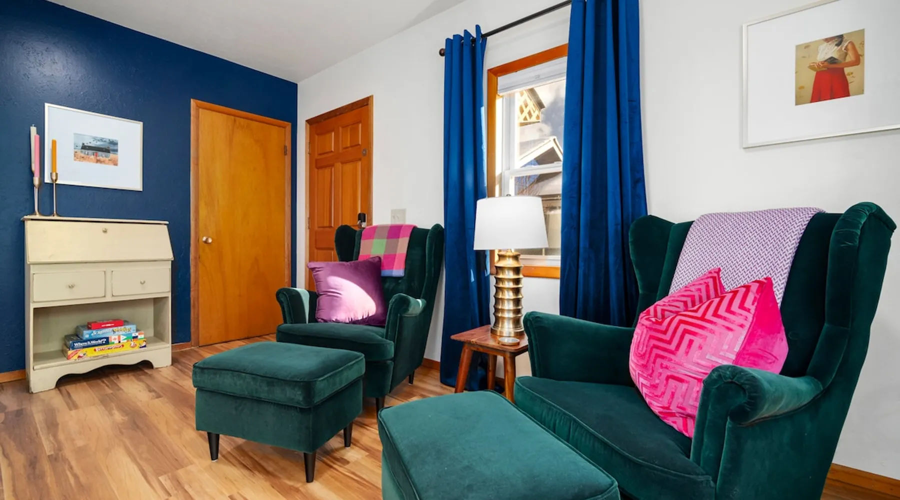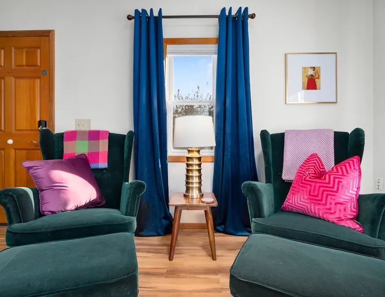 Do you need to slow down and curl up with a good book? Maybe make a homemade meal or do a puzzle? Then you will love this thoughtfully designed home. Sooo many books to choose from, no need to bring your own. Not to mention puzzles and games. The window benches, large couch, multiple cozy chairs, hammock or fire pit all make for great spots to get away from it all! You are sure to fall in love with the decor in this freshly remodeled home. The space 2 bedrooms with comfy queen beds each with their own window bench reading nooks. Large open living room, dining room, and kitchen. This rental is FULL of books and cozy places to enjoy them. Even had a dedicated laundry room with full size washer/dryer. This home has stairs to the two bedrooms and bathroom. Enjoy the yard space with a hammock and fire pit! Guest access The whole back unit is yours along with the yard and driveway. Other things to note This is the back unit of a front/back duplex. Very little noise from the other unit because only the kitchen wall is shared. As we expect our front tenant to live