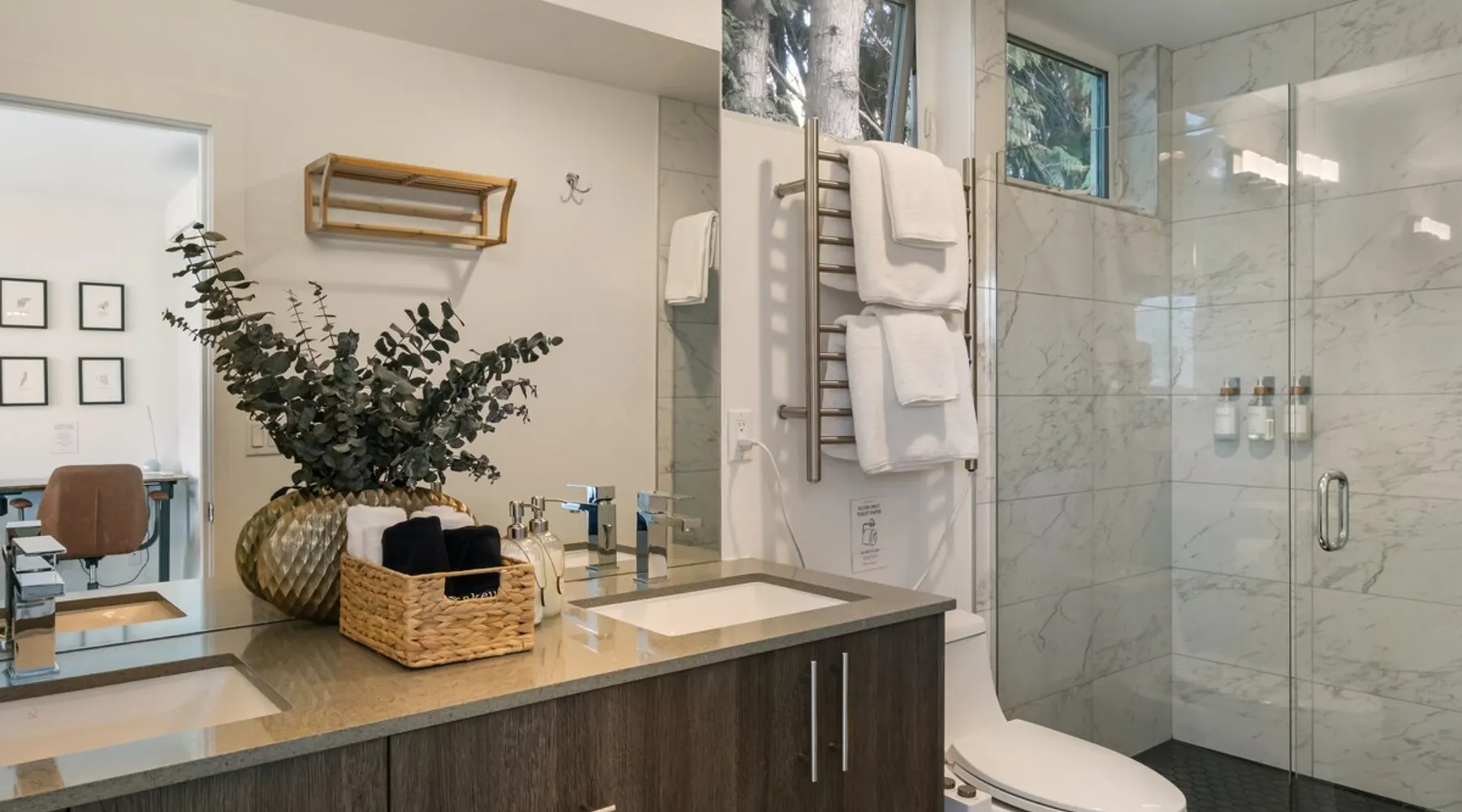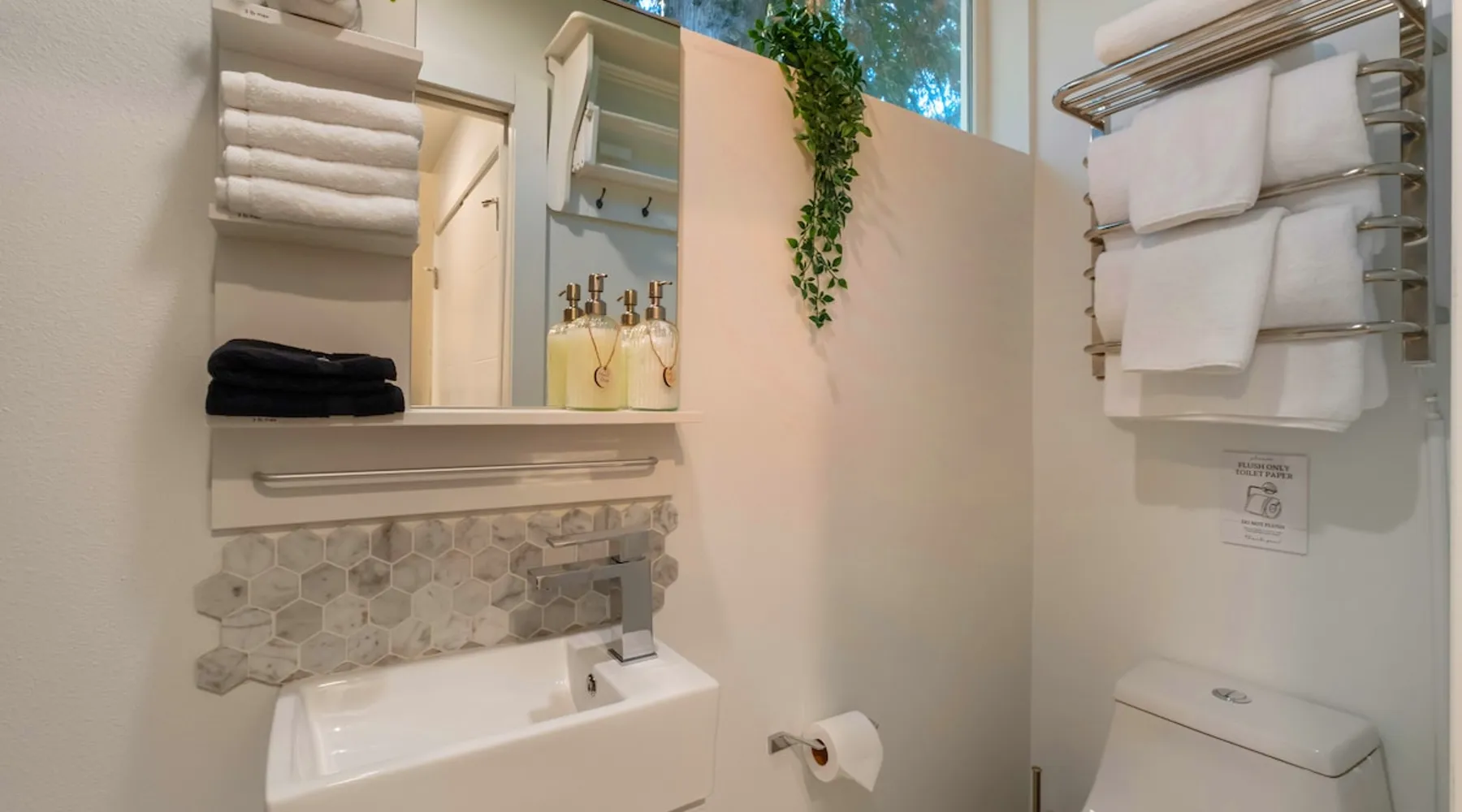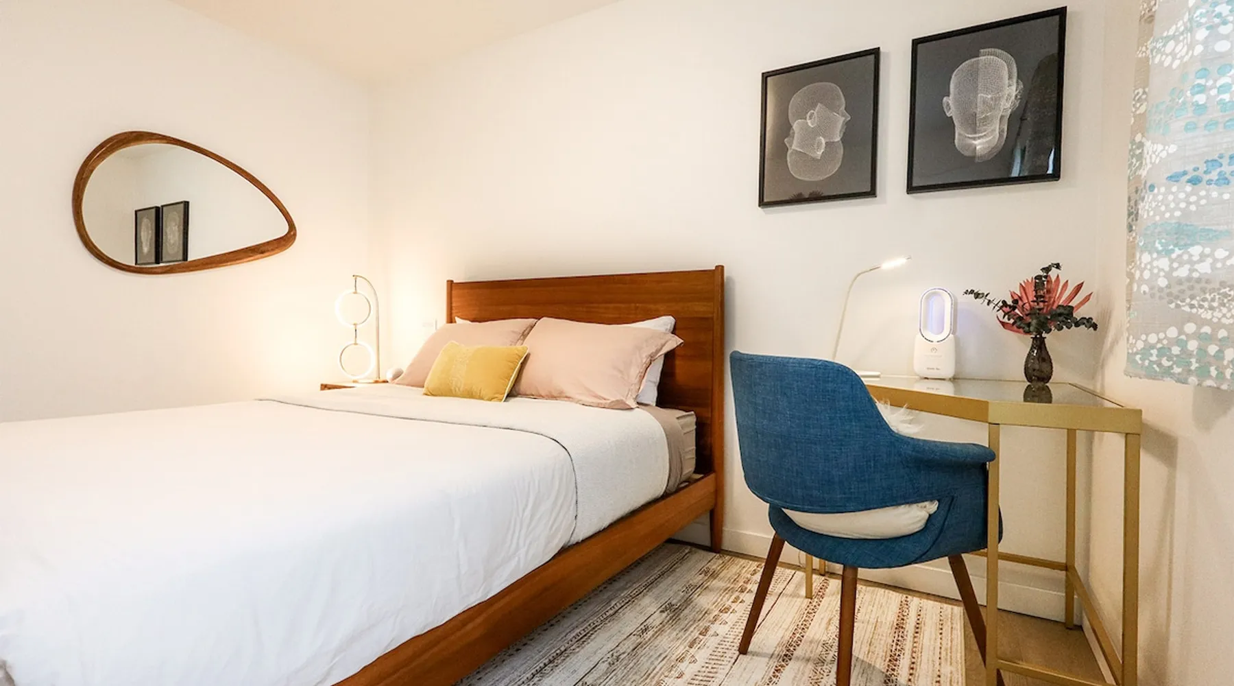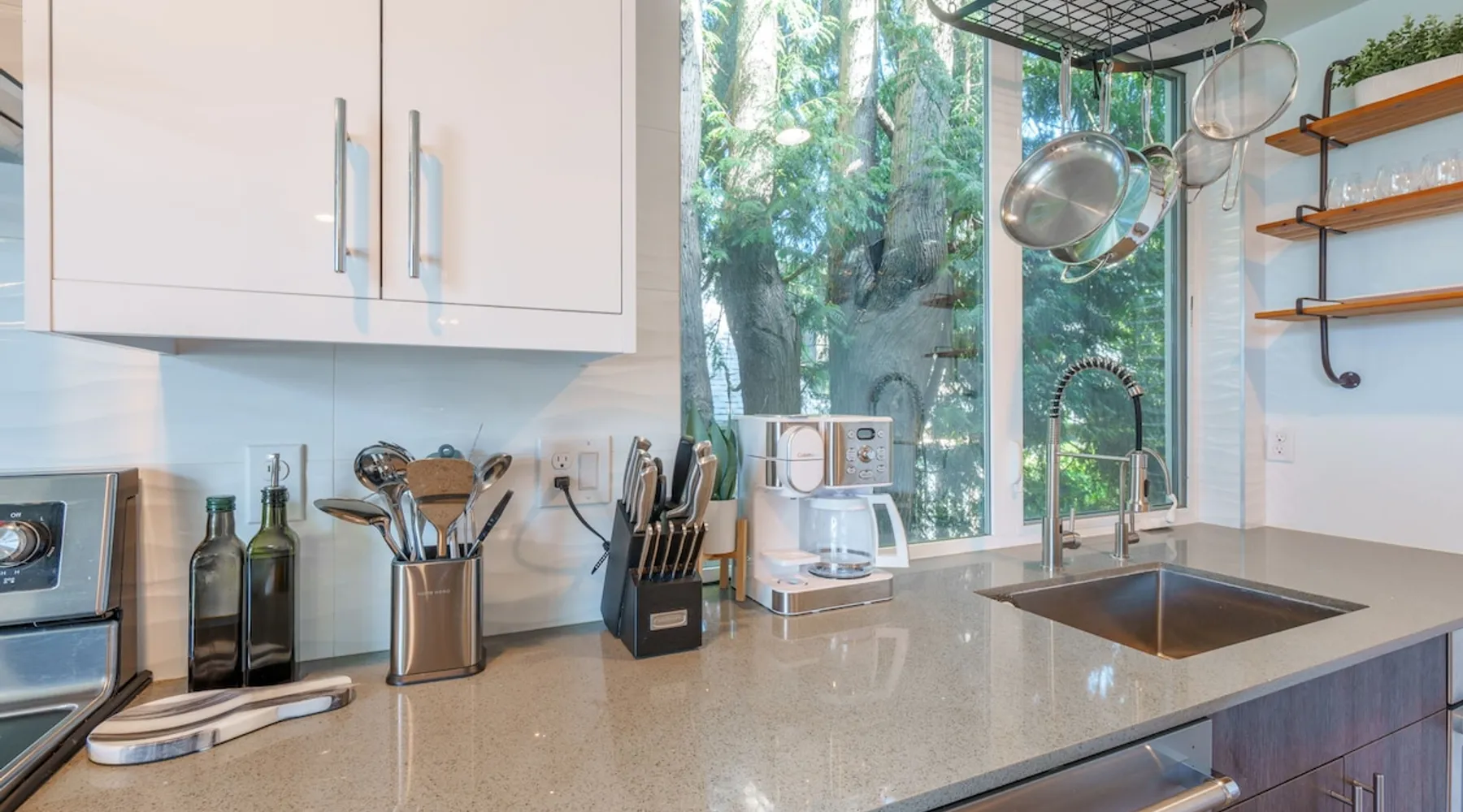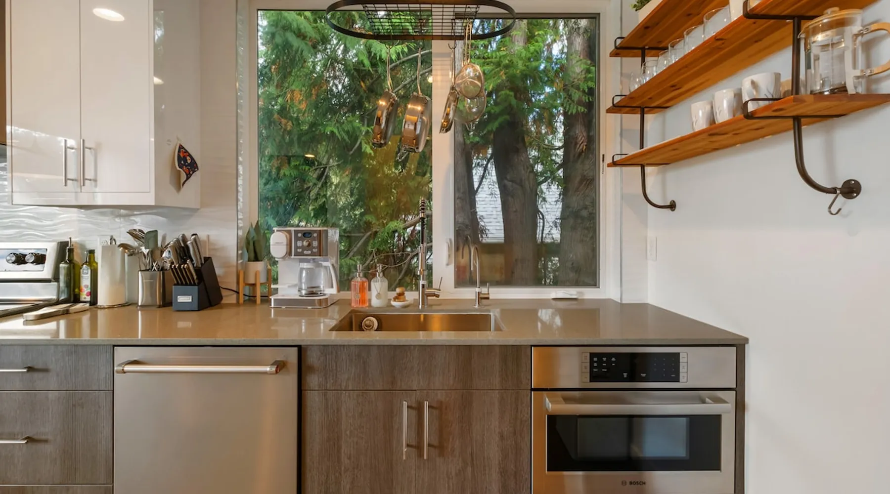 3-story townhouse with stunning mountains, bay, and Seattle city skyline views. •Dedicated parking. •1GB Internet •AC •Sunset vistas from the primary bedroom, private rooftop deck with a fire pit and pellet grill. •Two dedicated workspaces •Bus to DT, Cap Hill •Link train to SeaTac/UW Seamless I90 and I5 highway and city access, plus transit options to stadiums, downtown. ⚽ Stadiums (Lumen Field / T-Mobile Park) ~1.7 mi, ~7-9 min driving, 20 min bus, ~40 mins walk The space Step inside this charming three-story townhouse, where contemporary comfort meets natural beauty. The open living space is adorned with floor-to-ceiling windows framing stunning views of Olympic Mountains and Elliot Bay. Kitchen: A fully equipped kitchen with modern appliances and non-toxic cookware makes cooking a breeze, and you have everything to serve a beautiful dinner while admiring the breathtaking views. Bedrooms: Both bedrooms offer spacious comfort with a West Elm queen bed, exceptionally comfortable mattress, high-quality cotton sheets, and room darkening shades, ensuring a cozy and restful night's sleep. Additionally, you'll find a dedicated workspace for your convenience. Living Room: The retro-futuristic inspired living room welcomes you with a Seattle-themed mural that spans the entire wall, a cozy leather sofa, and a 50" TV. It's the perfect space to soak in the captivating Pacific Northwest ambiance and capture special moments against this unique backdrop. Rooftop: Private rooftop on the fourth floor gives you the most stunning views of Olympics, Bay, SODO and Downtown while you enjoy your comfortable seating under 200year old trees in front of the fire pit or enjoy your meal prepped on the pellet grill(can be used a smoker or regular grill). The most relaxing evening you can imagine! Parking: The townhouse has a dedicated parking spot on the back of the townhouse complex in the alley (1 min walk) and free street parking up front if you find a spot available. AC As most of the new construction townhouses in Seattle the AC is available on the 2nd and 3rd floors. The bottom bedroom is equipped with portable AC and fan. For your comfort: + 1GB Internet; + Air conditioning on second and third floors; fan on the ground floor; + Dedicated parking spot on the back of the townhouse complex; + Recreational smoke sensor; + In-unit washer/dryer; + Filtered water source; + Gentle toiletries without dyes and fragrances; + For little ones: Guava family travel crib, Uppababy G-Luxe stroller, baby monitor, sound machine, silicone plate, baby gates. Warning: it's a townhouse so lots of stairs are inevitable part of your experience of gorgeous view. The security camera is located over the entrance overlooking the street. Our property is committed to sustainability. We provide eco-friendly dish soap, dishwasher tablets, bamboo toilet paper, and reusable kitchen towels, ensuring your stay is both comfortable and environmentally responsible. Whether you seek relaxation or adventure, this townhouse promises an unforgettable experience, with nature's beauty right outside your windows. Guest access The entire townhouse is yours to explore and enjoy. You'll enjoy the convenience of a private entrance with keyless access. Our smart lock system ensures a hassle-free check-in process. Registration Details STR-OPLI-23-001168