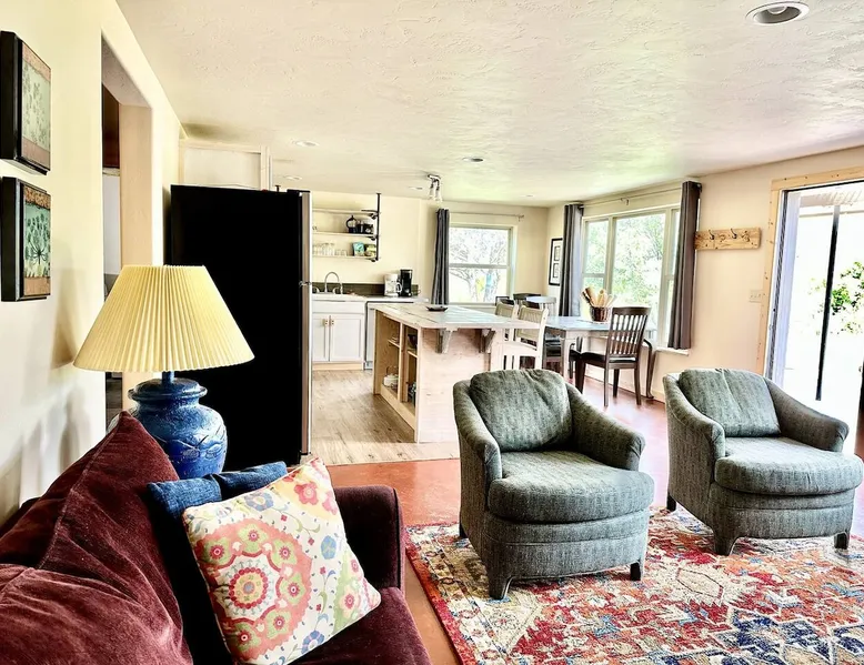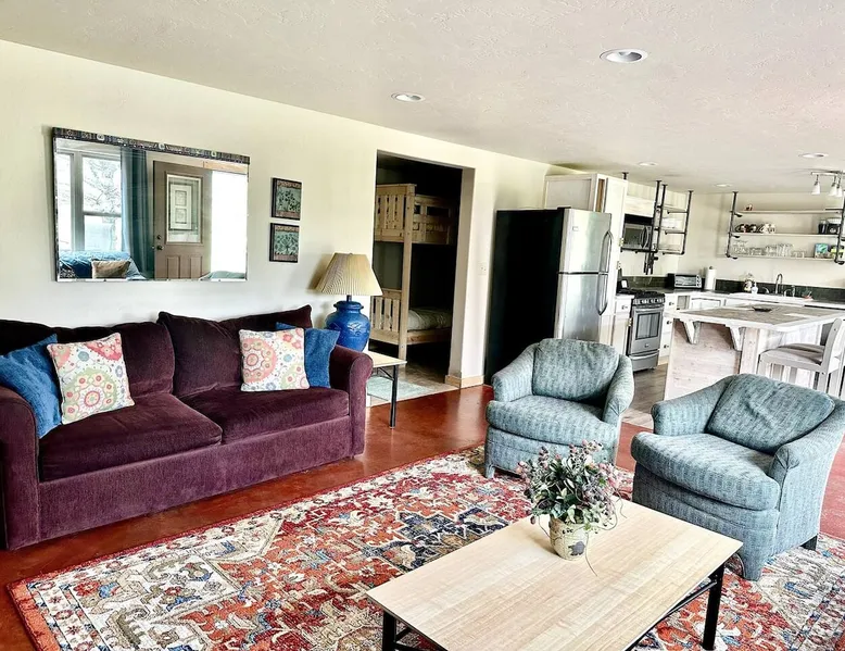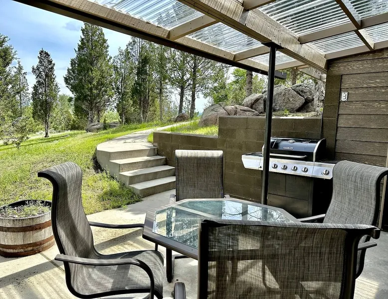 Escape to the breathtaking beauty of Whitehall, Montana, where nature's wonders unfold in every direction. Enjoy: -Private patio with breathtaking view of the valley and also snow-capped mountains -Gas grill -Fully stocked chef's kitchen -Smart TV (we provide Netflix), games -Walk-in shower -Washer/dryer -Complimentary coffee -Fully remodeled home -Desk if you must work from home -Complimentary toiletries This is the bottom half of a duplex. The best part is the stunning views! The space Welcome to our stunning getaway, nestled on 100 acres of awe-inspiring landscape that was once owned by a rodeo star. From the moment you arrive, you'll be captivated by the serene surroundings, offering a true escape to tranquility and natural splendor. Step inside and be greeted by the inviting ambiance of this unique retreat. The interior features concrete floors that provide a cool and contemporary touch. Handcrafted elements, including a beautiful handmade bed frame and nightstands, add a touch of rustic charm and showcase the artistry of the space. Custom shelving and cabinets in the kitchen provide both functionality and style, complemented by stainless steel appliances that elevate your culinary experience. Entertainment options abound in this remarkable home. Enjoy cozy movie nights with seating for 6 on two couches and two sitting chairs with the built-in TV. We also have a DVD player, along with a collection of DVDs, for your enjoyment. For the little ones, there are games like Twister, Cranium, and Taboo to keep them entertained and create lasting memories. The bathroom features a luxurious walk-in tiled shower, inviting you to unwind and rejuvenate after a day of exploration. The fully loaded kitchen is a culinary haven, equipped with all the pots, pans, utensils, and even cooking spices you need to create delightful meals. Embrace the joy of cooking while taking in the stunning views that surround you. Speaking of views, prepare to be mesmerized by the picturesque vistas that unfold from the large picture windows. Gaze out at the nearby Montana mountains, take in the serenity of the Little Pipestone stream flowing through the property, and marvel at the bouldered hills and sagebrush that paint the landscape with natural beauty. This remote oasis offers an escape to nature, yet it's conveniently located just 10 minutes from Whitehall, ensuring easy access to groceries and other amenities. Adventure awaits just beyond your doorstep. Embark on thrilling biking and hiking excursions or explore the rugged terrain of Pipestone on a 4-wheeling adventure. Discover the wonders of Beaverhead Deerlodge State Park, visit Twin Bridges, explore Lewis and Clark Caverns, marvel at the Ringing Rocks, or indulge in the soothing waters of Norris Hot Springs. For those seeking even more, take a trip to Yellowstone National Park or experience the world-class skiing and outdoor activities of Big Sky. Come and experience the ultimate escape to nature at our remarkable Montana getaway. Book your stay today and embark on an unforgettable journey where tranquility, breathtaking views, and endless adventures await you at every turn. SLEEPING ARRANGEMENTS The king bed has its own bedroom with dedicated work space, USB lamps for easy phone charging, overhead ceiling fan. Close the door for a total blackout experience and sleep in! There are two twin beds as part of a bunk that sits in the hallway between bedroom, bathroom, and laundry room. It's semi-private and semi-dark for sleeping. NOTE: These beds may be a little short for adults, and the mattresses may also be a little thin. There is a queen pullout couch in the living room. Pull the curtains for a room darkening effect. Plenty of extra linens and pillows. Guest access You'll have the entire home to yourself. Other things to note POTENTIAL FOR NOISE This home is part of a two-story home that has separate homes in the top and bottom level. Your home is the bottom level. When there are guests upstairs, you should expect some overhead noise. If you are a light sleeper or want perfect quiet, this may not be the place for you. (Consider booking the upper unit instead, or inquire about our 3BR home nearby!) PETS & PET FEE Well-behaved pets are welcome with a $50 fee (per pet) per stay. Please inquire about our pet policy. (We allow horses as well! $150/mo per horse. You need to bring your own hay. We have a creek for water) NO AC This home has concrete floors and close contact with earth, which keeps it naturally cool. Open the windows for an extra cross-breeze at night, and close them up to keep in the cool air. There are only 4-8 weeks per year that Montana gets hot. These things typically keep the home cool, but we want to be very transparent with our guests that we do not have AC.