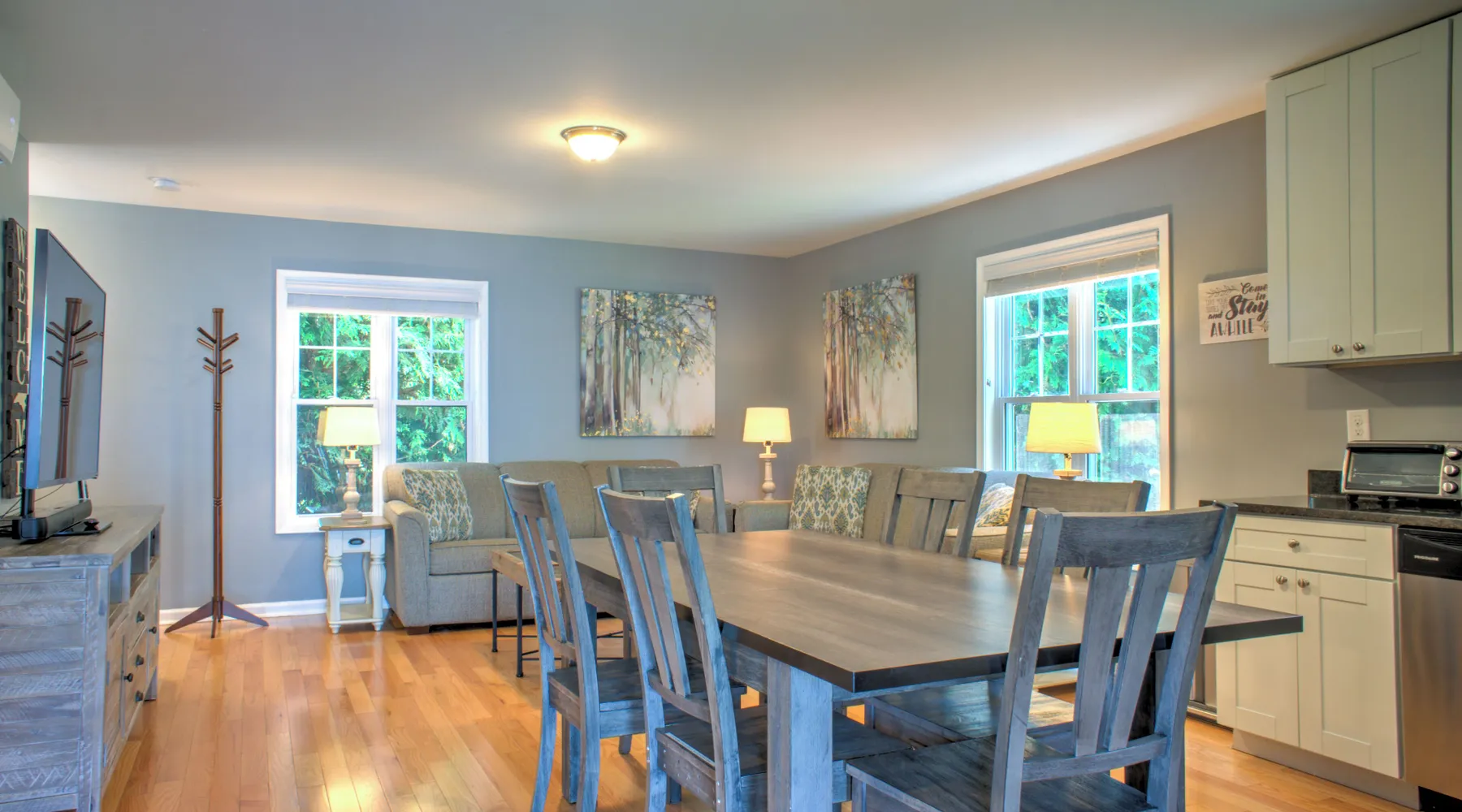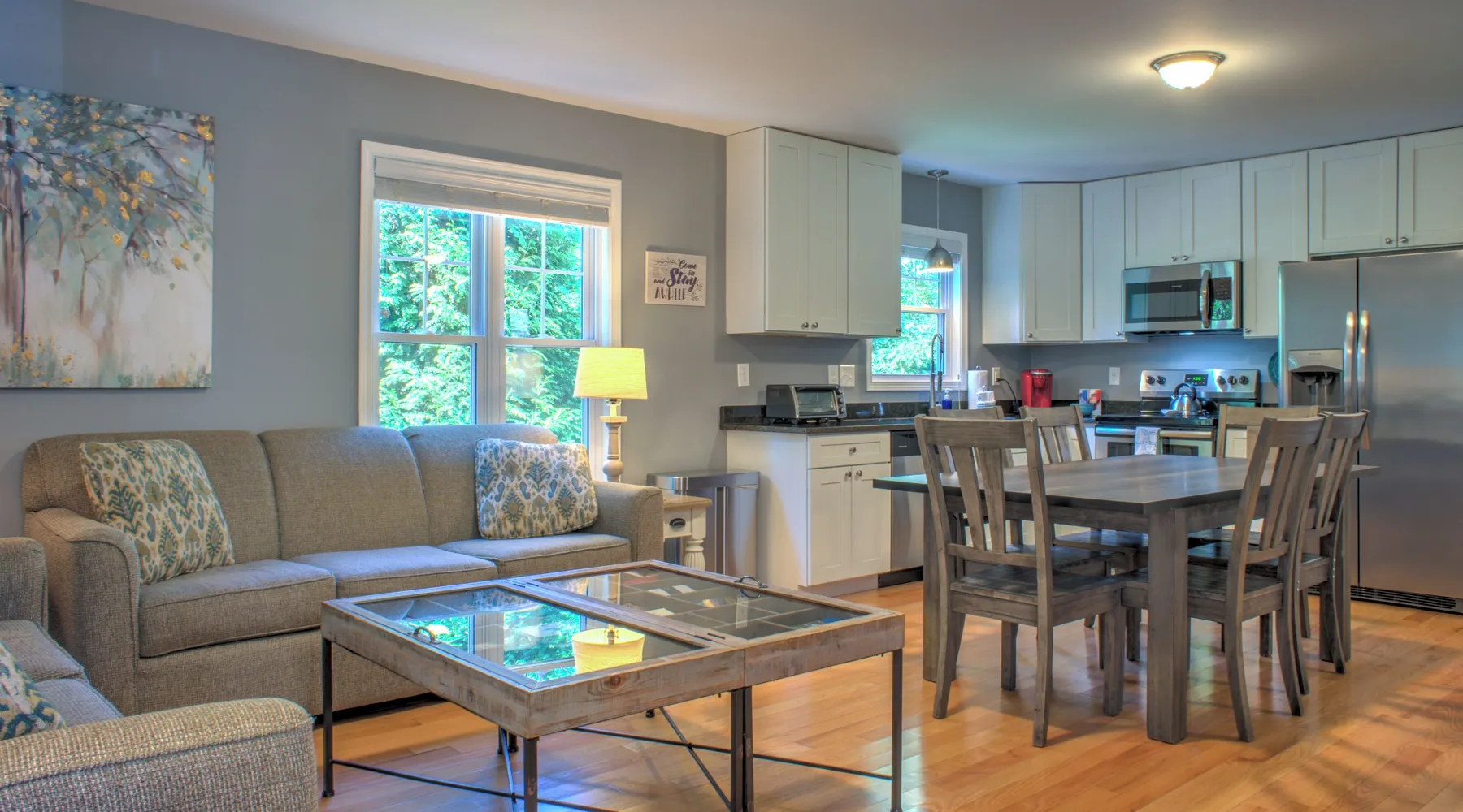 Escape to Cardinal Crest Cottage, a recently built 2-bedroom, 1.5-bathroom haven that offers a tranquil retreat in a peaceful mountain community, with pastoral views. Conveniently located 15 minutes to the vibrant downtown Asheville area,10 minutes to charming downtown Weaverville, and 20 minutes to the Blue Ridge Parkway at Bull Gap. Step into the cottage, you'll be greeted by an inviting living area for you to relax and indulge in a movie night on the 50-inch flat-screen TV. The well-equipped kitchen boasts a full suite of stainless steel appliances and all the necessary gadgets to create delightful meals. This two-story abode comfortably accommodates up to six guests, with two bedrooms and a sleeper sofa in the living area. Relish the serenity of the covered back deck, complete with comfortable seating and a gas fire pit, perfect for unwinding and creating lasting memories. Cardinal Crest Cottage is your ideal mountain getaway, offering both tranquility and easy access to a wealth of attractions. Need room for a few more? Check out Dogwood Blossom Cottage, located just 30 feet away! Exclusive Yonder Special: When you book Cardinal Crest Cottage you will receive a special code for discounted tickets to the Biltmore Estate! Click here for more info. Home Truths: - Sleeps in beds: 4 - Max Occupancy: 6 - Sleeper sofa in the living room - Yonder provides linens for all beds; other occupancy will require guests providing their own linens - Parking for 2 vehicles - Internet Speed: Download - 300Mbps - Cleaning fee: $130 Yonder openly shares & clearly posts our Cleaning Fees in a manner of full disclosure, as we think this is the most honest and forthright approach with respect to our guests. Our Cleaning Fees are backed by our Clean Guarantee, which reflects the highest level of standards, pristine environments for our guests, and a level of clean that surpasses any other vacation homes; we literally guarantee it! Quiet Policy: Please note that the property is located in a very private and quiet community. Parties, loud noise and unruly behavior are absolutely prohibited, and guests are expected to respect the neighbors and the peace this mountain retreat area affords. Pets: Many of our guests have allergies so we have maintained a pet-free environment so they can enjoy their vacation without the potential of an allergic reaction. If you have a pet we can recommend some alternatives nearby. Early Check In and/or Late Check Out may be possible, depending on cleaning schedules and other reservations. If it is possible, there may be an additional fee that would be determined based on the time that you wish to check in or out and the seasonal rates. Please inquire for details regarding payment, the cancellation policy, military discounts, and trip insurance. Note: Reservations over 30 days are subject for review prior to acceptance. A separate rental agreement will be required for 90+ day stays.
