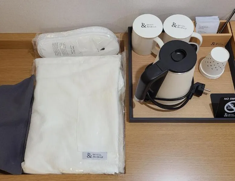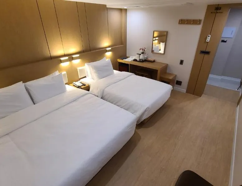 Comfortable Accommodations: Hotel Andrest in Busan offers family rooms with air-conditioning, private bathrooms, and free WiFi. Each room includes a bathrobe, bidet, and free toiletries. Convenient Facilities: Guests benefit from a elevator, 24-hour front desk, housekeeping, laundry, luggage storage, and free on-site private parking. Additional amenities include streaming services, TV, and electric kettle. Prime Location: Located 4.3 mi from Gimhae International Airport and Seomyeon Station, the motel is near attractions such as Gukje Market and Busan China Town. Public transport options are available nearby. Guest Satisfaction: Highly rated for its connectivity to the airport, convenient location, and public transport options. Featuring free toiletries and bathrobes, this twin room includes a private bathroom with a bath, a bidet and a hairdryer. This twin room has air conditioning, an electric kettle and a flat-screen TV with streaming services. The unit has 2 beds.