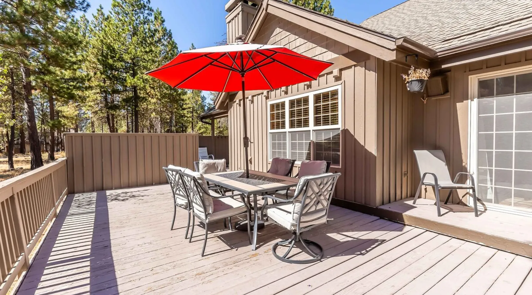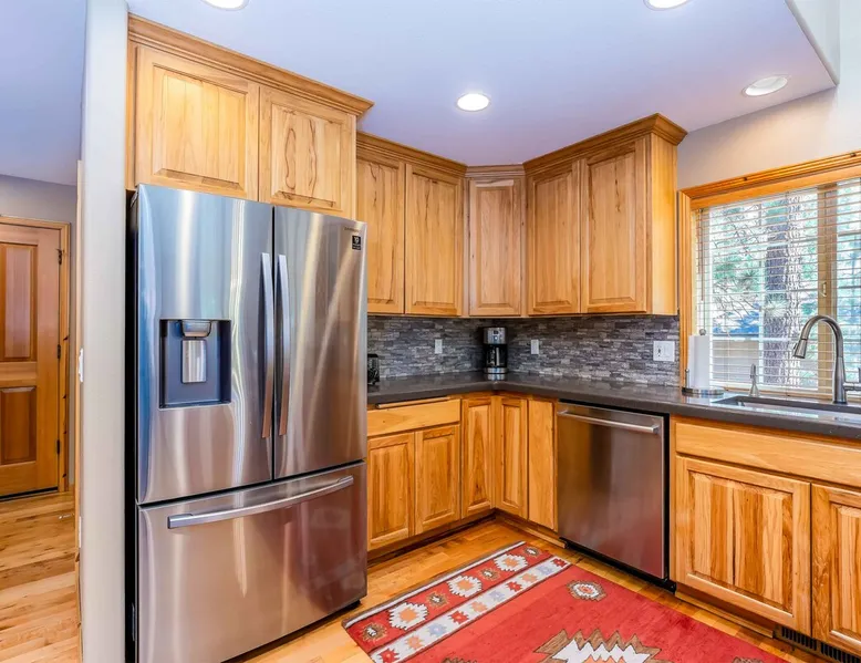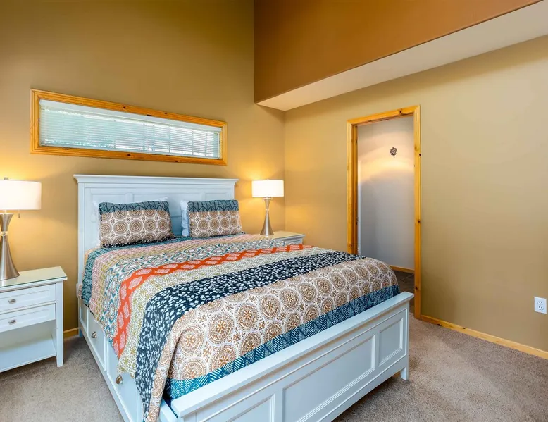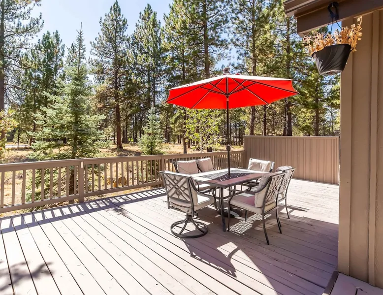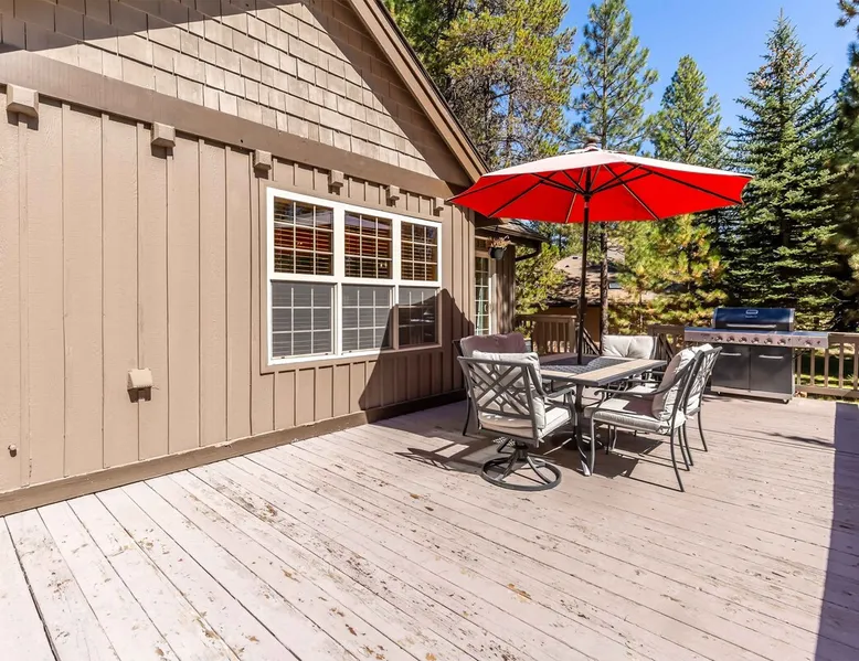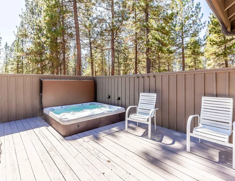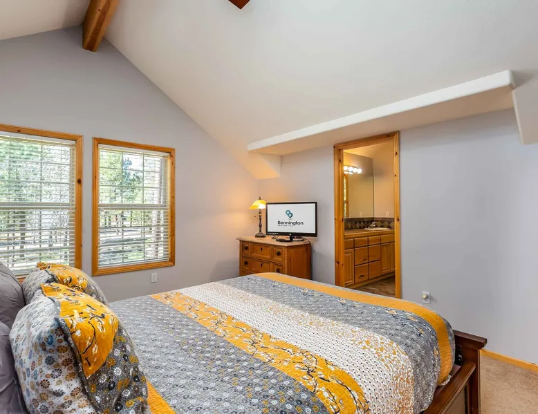 This open and very inviting, two story vacation rental is near all that Sunriver has to offer. With great creature comforts like AC, Hot Tub, and Bikes, you'll be set to just kick back, relax and enjoy Sunriver. The space This updated home sits on the quiet North end of Sunriver, close to the Woodlands Golf Course and will be your family's new favorite getaway. From the light-filled great room to fully stocked kitchen, this home has what you need for an awesome vacation. Upon entering the home you'll be in a large, open space with the living room attached to the kitchen and dining areas. The living area features comfy furnishings and a large river rock fireplace, perfect for relaxing after a long day. The adjacent dining room seats 6, plus 4 more at the breakfast bar. The gorgeous, well-stocked kitchen with granite countertops and stainless steel appliances will have you whipping up amazing culinary creations for your friends and family. On the main level are two ensuite bedrooms, both with queen beds. Both bedrooms have a private bath. Head upstairs to find the primary ensuite with king bed and private bathroom and the fourth ensuite bedroom with a queen bed and private bathroom. Outside on the deck is a private hot tub and gas BBQ grill. Take a seat on the outdoor furniture and watch the native wildlife or enjoy your morning cup of coffee. The garage holds 4 adult bikes when you are ready to take a cruise around the neighborhood. Looking to book a family reunion or friends gathering? Book this home along with Three Iron 6 and Three Iron 11 to have everyone close together. Other things to note AGE RESTRICTIONS: Guests must be 23 years or older to rent Bennington homes and the person reserving must occupy the home the whole reservation.
