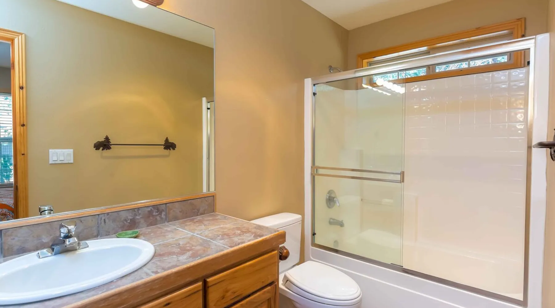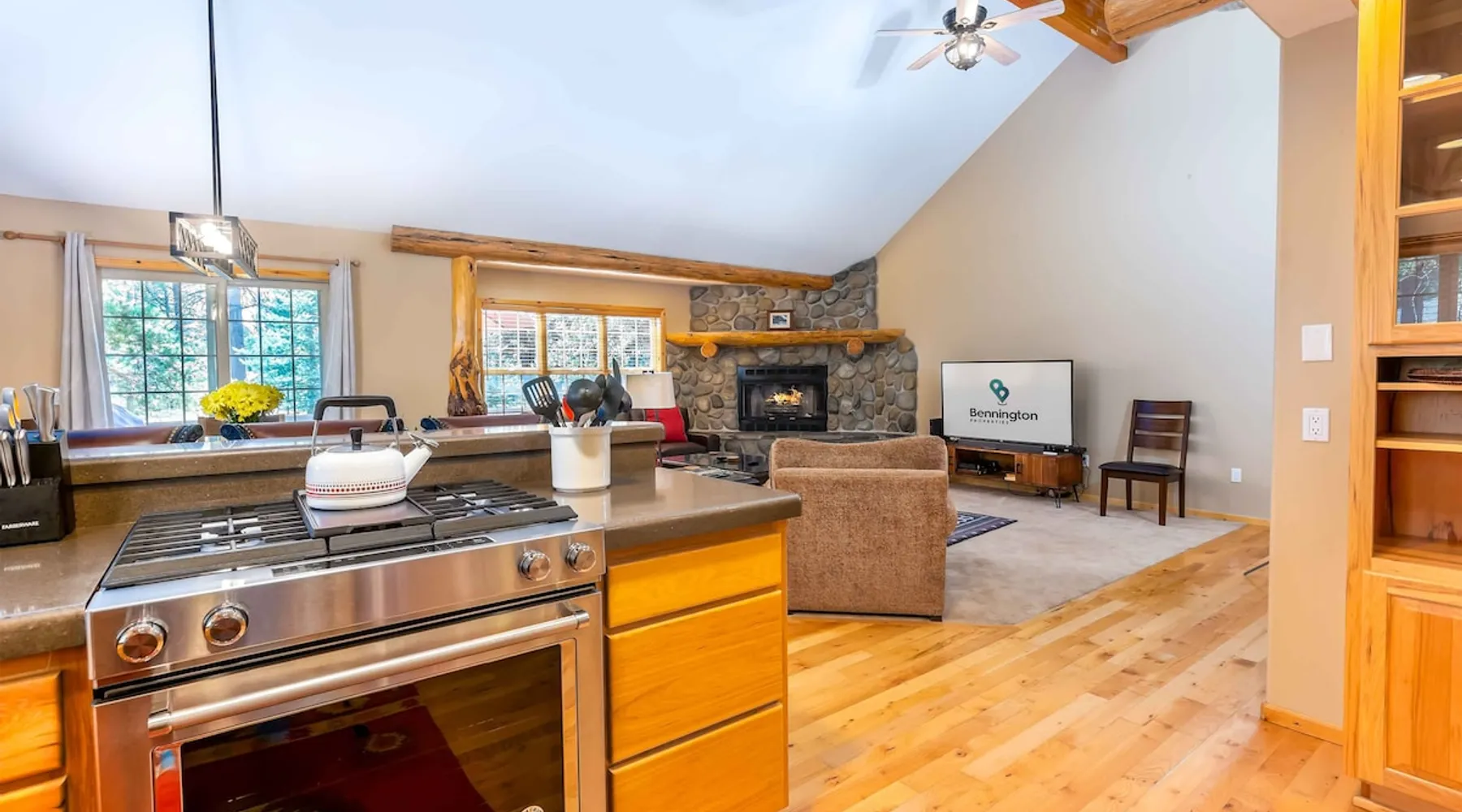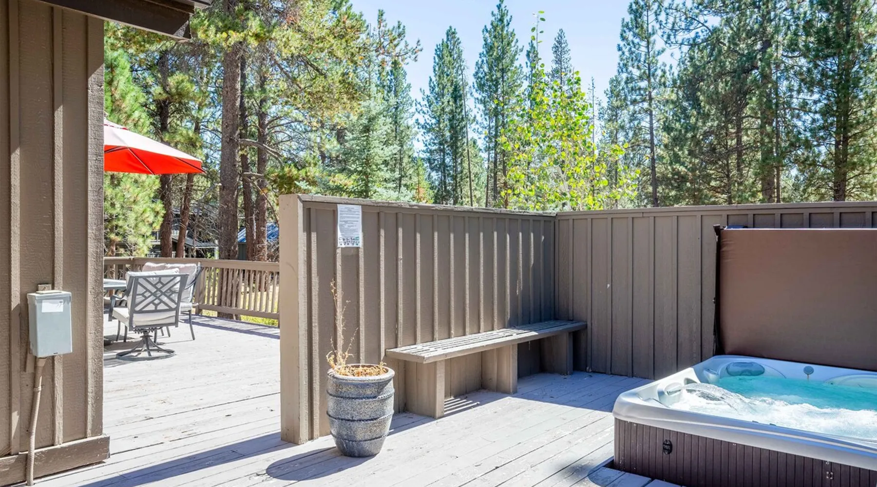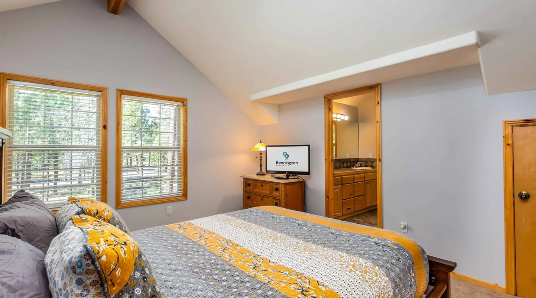 This open and very inviting, two story vacation rental is near all that Sunriver has to offer. With great creature comforts like AC, Hot Tub, and Bikes, you'll be set to just kick back, relax and enjoy Sunriver. The space This updated home sits on the quiet North end of Sunriver, close to the Woodlands Golf Course and will be your family's new favorite getaway. From the light-filled great room to fully stocked kitchen, this home has what you need for an awesome vacation. Upon entering the home you'll be in a large, open space with the living room attached to the kitchen and dining areas. The living area features comfy furnishings and a large river rock fireplace, perfect for relaxing after a long day. The adjacent dining room seats 6, plus 4 more at the breakfast bar. The gorgeous, well-stocked kitchen with granite countertops and stainless steel appliances will have you whipping up amazing culinary creations for your friends and family. On the main level are two ensuite bedrooms, both with queen beds. Both bedrooms have a private bath. Head upstairs to find the primary ensuite with king bed and private bathroom and the fourth ensuite bedroom with a queen bed and private bathroom. Outside on the deck is a private hot tub and gas BBQ grill. Take a seat on the outdoor furniture and watch the native wildlife or enjoy your morning cup of coffee. The garage holds 4 adult bikes when you are ready to take a cruise around the neighborhood. Looking to book a family reunion or friends gathering? Book this home along with Three Iron 6 and Three Iron 11 to have everyone close together. Other things to note AGE RESTRICTIONS: Guests must be 23 years or older to rent Bennington homes and the person reserving must occupy the home the whole reservation.