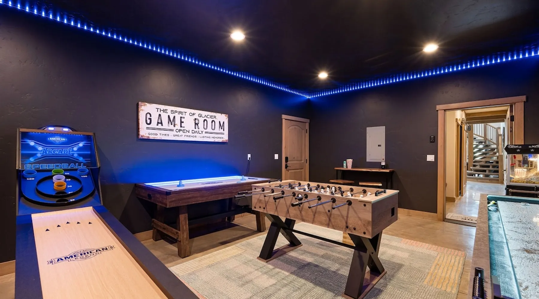 Escape to Spirit of Glacier, where you'll find the perfect blend of comfort, relaxation, and thrilling adventures for your family. Our custom condo offers a once-in-a-lifetime opportunity to immerse yourself in the heart of nature while enjoying high-end luxury like never before. We are the perfect location to experience it all! Just 6 minutes from the West entrance of GNP, only 17 miles from Glacier International Airport, 32 miles from Flathead Lake, and more! The space Welcome to "The Spirit of Glacier" – Your Luxurious Gateway to Adventure Nestled just a stone's throw away from the awe-inspiring Glacier National Park, "The Spirit of Glacier" invites you to embark on the adventure of a lifetime. If you're a nature enthusiast, an explorer at heart, or simply seeking a serene escape surrounded by breathtaking beauty, this is your sanctuary. Your Ideal Retreat: ✨ Seamless Nature Connection: Imagine waking up to the serene rustling of the trees and the crisp mountain air. "The Spirit of Glacier" is more than just a home; it's a gateway to the untouched grandeur of nature. With Lodgepole Pine, Douglas Fir, and Quaking Aspen trees as your backdrop, every moment is a reminder of the remarkable world just outside your door. 🌄 Proximity to Glacier National Park: Adventure seekers rejoice! You're only 6 miles away from the entrance to Glacier National Park, allowing you to beat the crowds and immerse yourself in the pristine beauty of this natural wonderland. Explore scenic trails, spot majestic wildlife, and witness cascading waterfalls as you embrace the freedom of the great outdoors. 🏡 Luxurious Comforts: Step inside your own haven of luxury. "The Spirit of Glacier" is a brand new custom condos designed for your utmost comfort. Two bedrooms, each with a 50" smart TV and a plush king-sized bed to ensure a restful night's sleep. The loft has a queen-sized sleeper sofa and an Infinity Game Table offers endless possibilities for relaxation and recreation. ✨ Game Room: We converted the garage to the ultimate family fun center including: foosball, air hockey, skeeball, shuffleboard and giant Jenga 🍳 Fully Loaded Kitchen: Create gourmet feasts in the fully loaded kitchen equipped with top-of-the-line appliances. Whether you're a culinary enthusiast or simply want to savor homemade meals, this kitchen has everything you need. 🔥 Outdoor Oasis: After a day of exploration, unwind in the 5-person hot tub or gather around the fire pit under a starlit sky, for fireside chats and marshmallow roasting. Nature's wonders are not just observed here; they become an integral part of your experience! Your Adventure Awaits: "The Spirit of Glacier" is not just a place to stay; it's a lifestyle of adventure, connection, and awe. Whether you're chasing waterfalls, hiking through evergreen forests, or simply basking in the grandeur of Glacier National Park, this property is your basecamp for it all. If you're ready to immerse yourself in the spirit of freedom, adventure, and natural beauty, "The Spirit of Glacier" is waiting to welcome you. Book your stay now and experience the magic of this luxurious retreat in the heart of Montana's wilderness. Your adventure begins here. Book now and let "The Spirit of Glacier" guide you to a world of wonder and exploration! Guest access Guests will have full access to the condo, private patio and shared firepit. Guests will be provided a code for access. Other things to note Private Hot Tub Heated Flooring Game Room with foosball, air hockey, skeeball, shuffleboard, popcorn maker Infinity Game table Fully stocked kitchen, including coffee bar Quality custom built condo