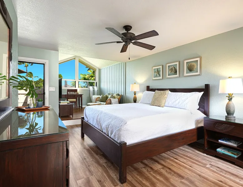 This recently remodeled (2024) multi-level 2bd-2ba condo with AC in the living room and both bedrooms is just steps from Poipu Beach. Ground level has fully equipped kitchen, dining, full bath, indoor laundry, guest bedroom with two twin beds. Access to two shared pools, hot tub, and tennis courts. The primary bedroom with king bed is upstairs, opens up to two lanais. Please be aware that tax is already included in the nightly rate, even if the checkout says "Total before tax.” The space This resort is replacing the roofing on all buildings beginning 2025. The building in which this unit is located is already finished. Estimated finish for the whole resort is end of March. On some occasions it is possible that the pool is not accessible for safety reasons. This multi-level 2bd-2ba condo is just steps from Poipu Beach. The ground level has a fully equipped kitchen, dining area, full bathroom, indoor laundry W/D, and guest bedroom with two twin beds and a TV. The spacious living area leads out to an open air lanai and grassy lawn, perfect for a game of cornhole (provided). Access to two shared pools, hot tub, and tennis courts. The primary bedroom with king bed is upstairs, opens up to two lanais, with an office space boasting incredible views. The ensuite bathroom has a walk-in closet, walk-in shower, and a separate bathtub. Both bedrooms have a portable AC for your comfort. Cable TV in the living room and both bedrooms is included. A trundle sofa in the living room offers an additional sleeping place (a $50/night additional guest fee is applied for 5th guest). Guest access We offer a contactless check-in with lock-box entry. CHECK-IN: 4:00pm / CHECK-OUT: 10:00am PLAN ACCORDINGLY: We are not able to grant early check-ins and/or later check-outs in advance. Should you need to guarantee additional time in the unit, we do suggest booking the additional night to accommodate this. Other things to note We recommend soaking in the sun and enjoying the beautiful outdoors that Kaua'i has to offer. But if you need to stay connected, free wireless internet is provided. For your convenience, we do provide some beach gear for your use: beach chairs, umbrella, small cooler, and beach towels. We also provide a starter supply of amenities and toiletries (soaps, toilet paper, paper towels, detergents). Additional guests and gatherings are not allowed. Registration Details 280270170043, TA-055-749-1712-01