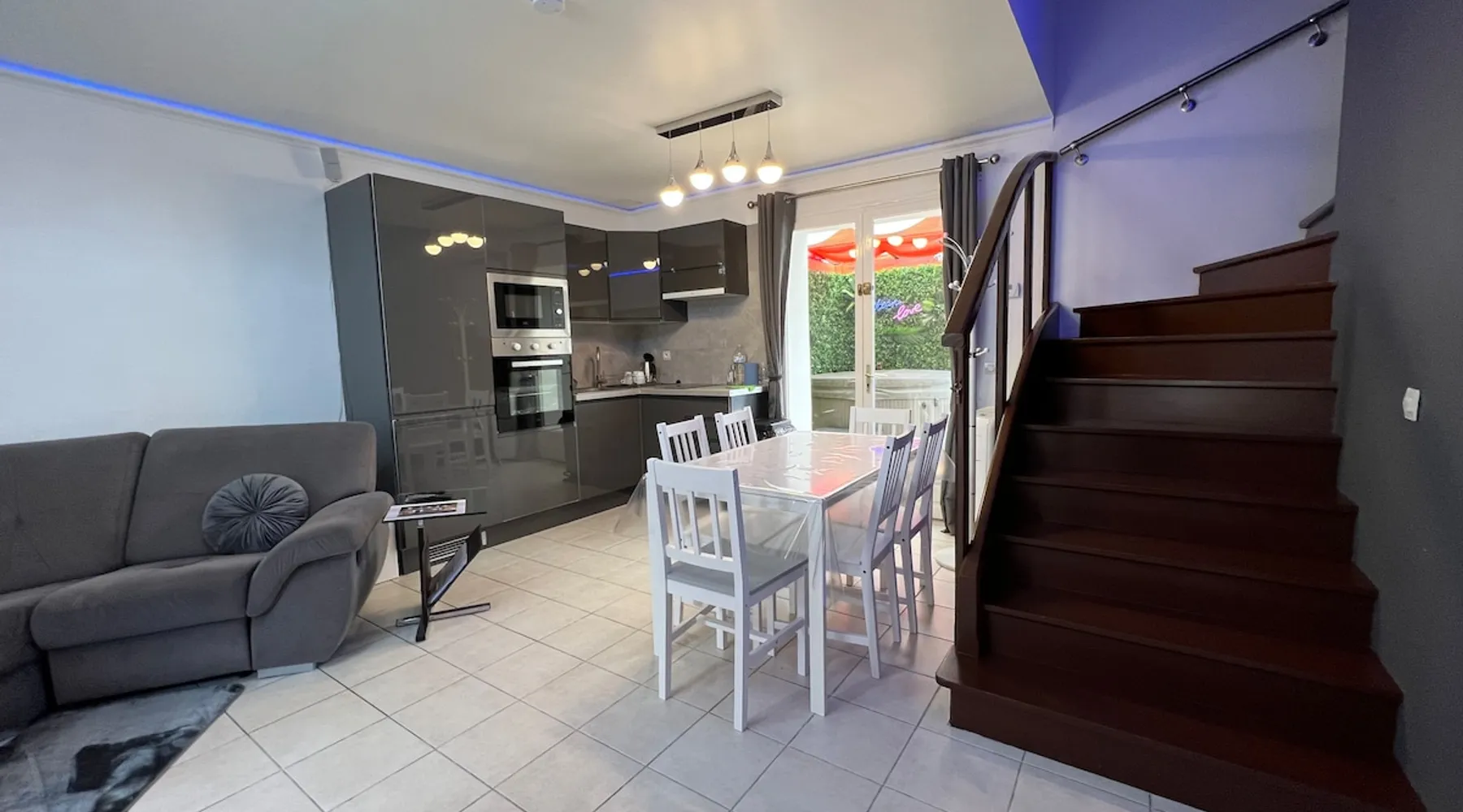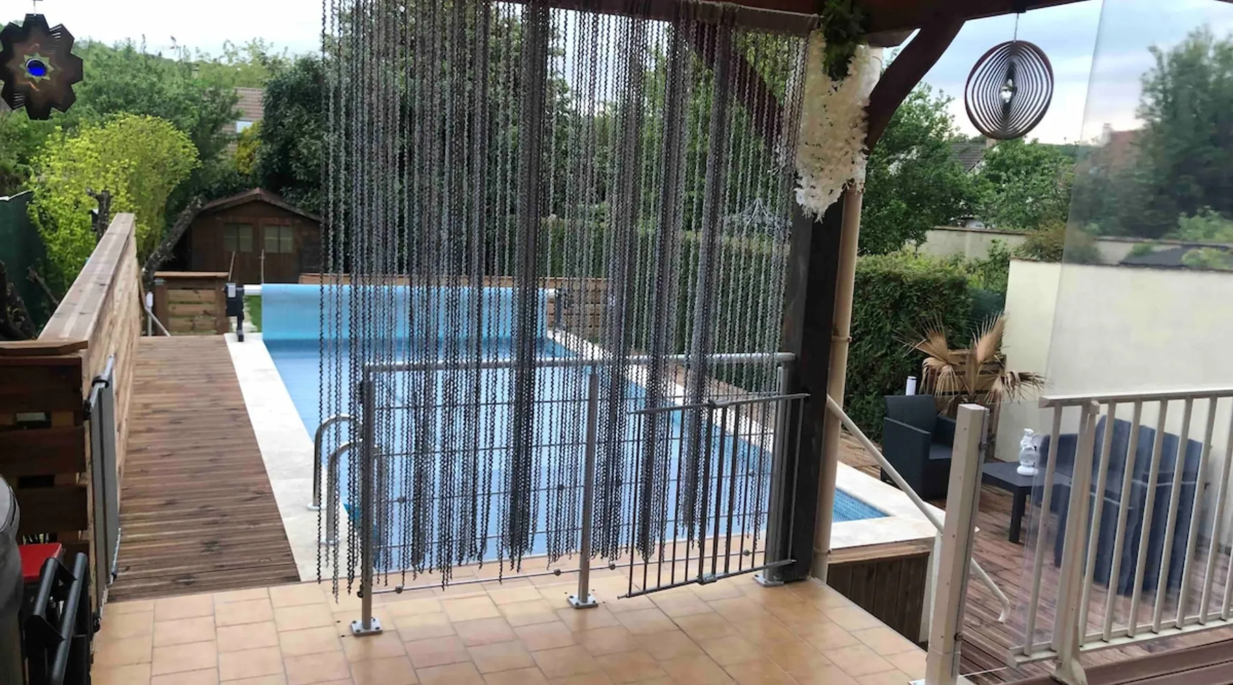 Residential area. No noise between 9 pm to 9 am to respect the neighborhood, no parties, no more than 6 guests. Kings Villa is classified 3 stars in Marne La Vallée, welcomes you in a privileged environment 43km from Paris in a quiet property surrounded by nature and with quick and direct access (10 min by car and 15 by bus) to Disney. will have access to a private garden, a jacuzzi and a heated swimming pool from mid April - end October The space On the check out day, the cleaning team will access the villa at 8 am from the studio entrance to start cleaning only the backyard (pool and jacuzzi) for next customer. The villa can host up comfortably 6 guests. The decor is contemporary and refined , with on the ground floor a pleasant living space with fully equipped kitchen. Kings has its own private swimming pool surrounded by a spacious deck and an indoor hot tub where you can relax and enjoy the inspiring view of the surrounding. The upper floor of Kings Villa blends three different style bedrooms with personalised decoration. Painstakingly efforts have been made to impress younger and older one. You can find 2 "double" bedrooms with hotel quality mattresses in 160x200 cm, and 28 cm thick for particularly restful night. The 3rd bedroom offers two bunk beds. And finally a bathroom with shower. This spacious villa is ideal for those who enjoy to holiday in comfort and style, as well as to those who will appreciate its proximity to town. Guest access The guest will have access to the full house, private garden, jacuzzi and poll! Other things to note The jacuzzi water is changed between each reservation. On your arrival the water could be around 20° but the temperature will keep on rising during the night. On the check out day, the cleaning team will access the backyard from the studio to start cleaning at 8.00 am. For UK travellers please note that for travelling in France your passport must have more than 3 months validity. Registration Details 7741300001050