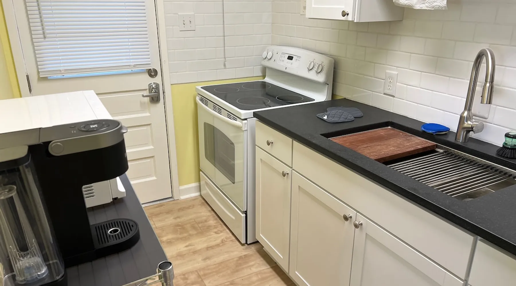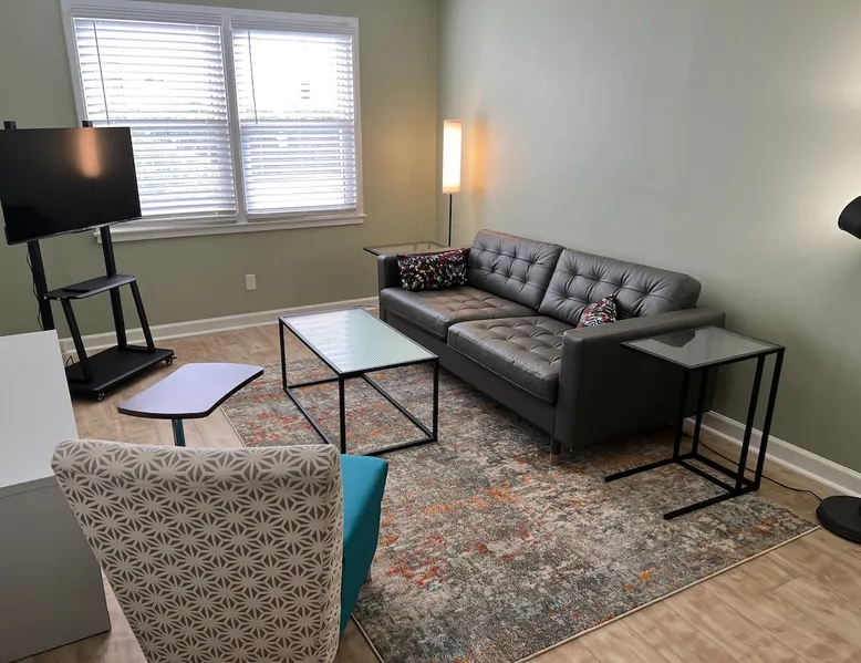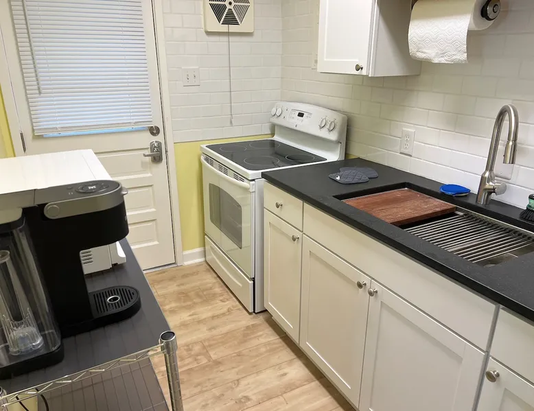 Located in the Village District of Raleigh, this one bedroom apartment has been fully remodeled. The look is comfortable and simple - no clutter. Roku TV and high speed wireless internet. New King Sized bed with Casper mattress. Apartment sits far back from the road, so no traffic noise. Reserve Parking in back. Walkable, quiet neighborhood. 4 blocks to numerous retail, restaurants, grocery stores and a library. 15 minutes walk to NC State University Campus. Easy access to downtown and I-40. The space 1 bedroom condo has been recently remodeled. Full kitchen with all necessary utensils. 550 Square feet living space. Keurig coffee maker (I even furnish coffee pods). First floor unit for easy access. Reserved parking space is right behind unit. Condo sits far back from road, in a lovely tree-lined setting. The condo has a bedroom, living room, kitchen and bathroom. Washer and dryer in the unit (with furnished laundry pods). Guest access The entire condo is yours to enjoy! Other things to note I designed the space to have a contemporary feel without being cold and austere. It's restful and comfortable without being over-filled with furniture and clutter. Television has a sound bar, which makes dialogue easier to understand.