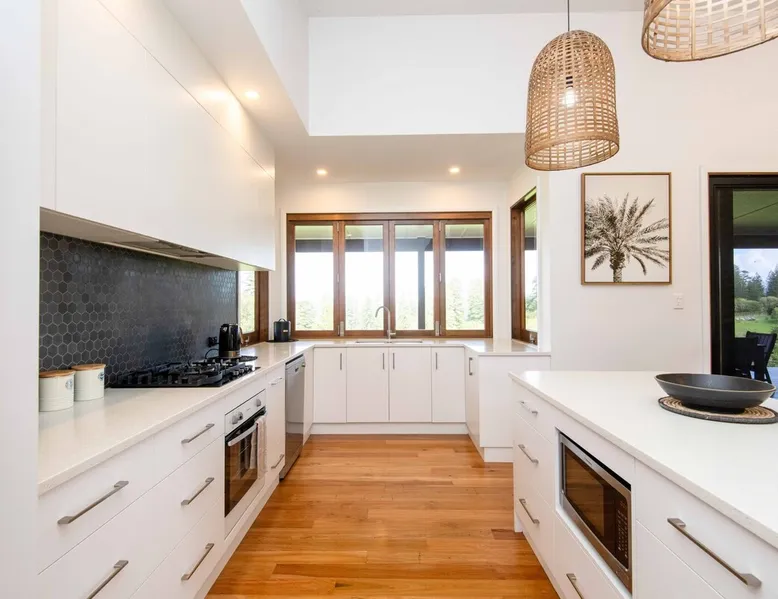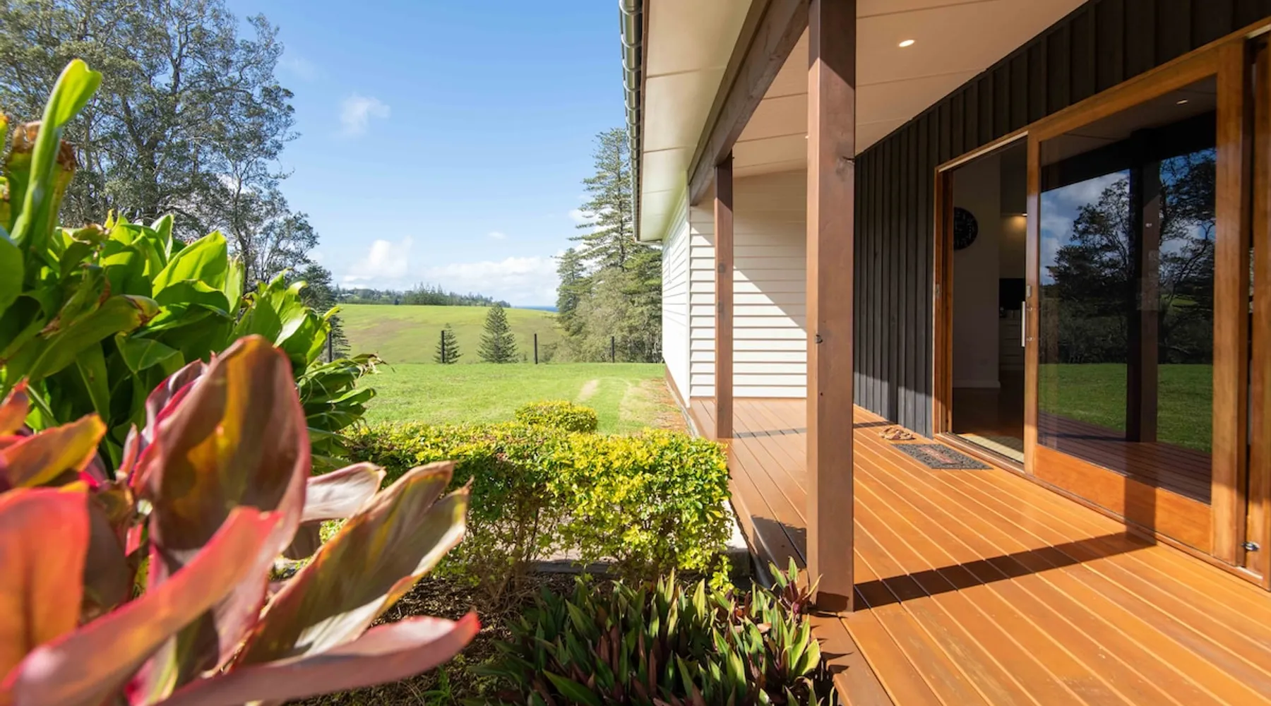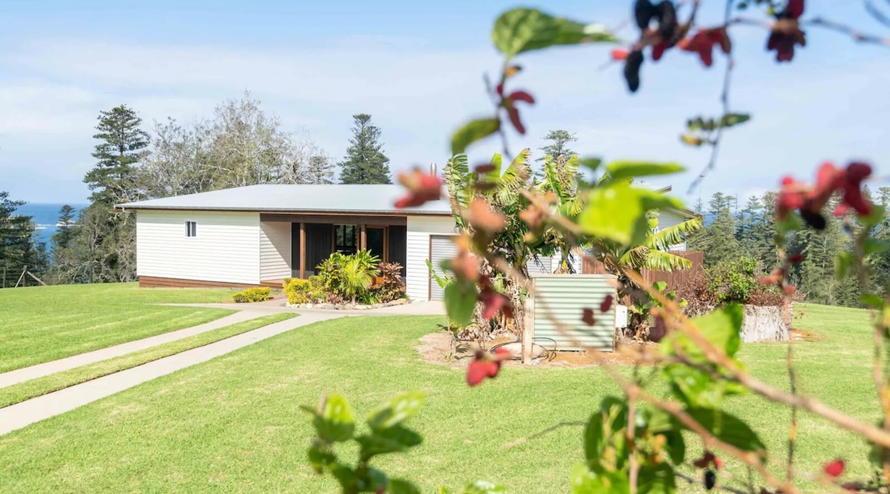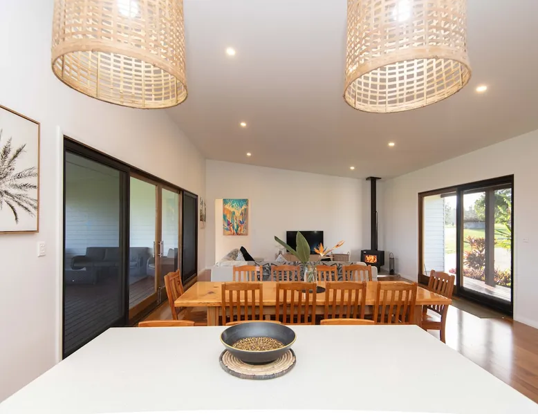 Discover serenity on Norfolk Island in this modern haven set on 50 acres of lush greenery. This 3-bedroom, 2-bathroom retreat offers privacy and breathtaking views. The home features large windows, an open-plan living area with a cozy fireplace, and a fully equipped kitchen with modern appliances. Enjoy sunsets from the deck, BBQs, and an outdoor fire pit. Includes a luxurious bathtub and a garage. Guests are met at the airport. A hire car can also be booked direct with your host. The space Welcome to your Norfolk Island retreat! This stunning 3-bedroom, 2-bathroom home offers luxurious amenities and serene surroundings. Bedrooms include a King, Queen, and 2 King Singles, perfect for couples or small groups. Enjoy a cosy fireplace in the open-plan living area, a fully equipped kitchen with modern appliances, and large windows with breathtaking views. Relax on the spacious deck with BBQ facilities and an outdoor fire pit. Additional features include a luxurious soak bathtub and a fully enclosed garage. Guest access Guests have access to this entire property. Other things to note Please note that this property does not accommodate children under 12 years old. Additional guests incur a fee of $50 per person, per day. To secure a hire car with your stay, please ask your host at time of booking for additional fees and availability.