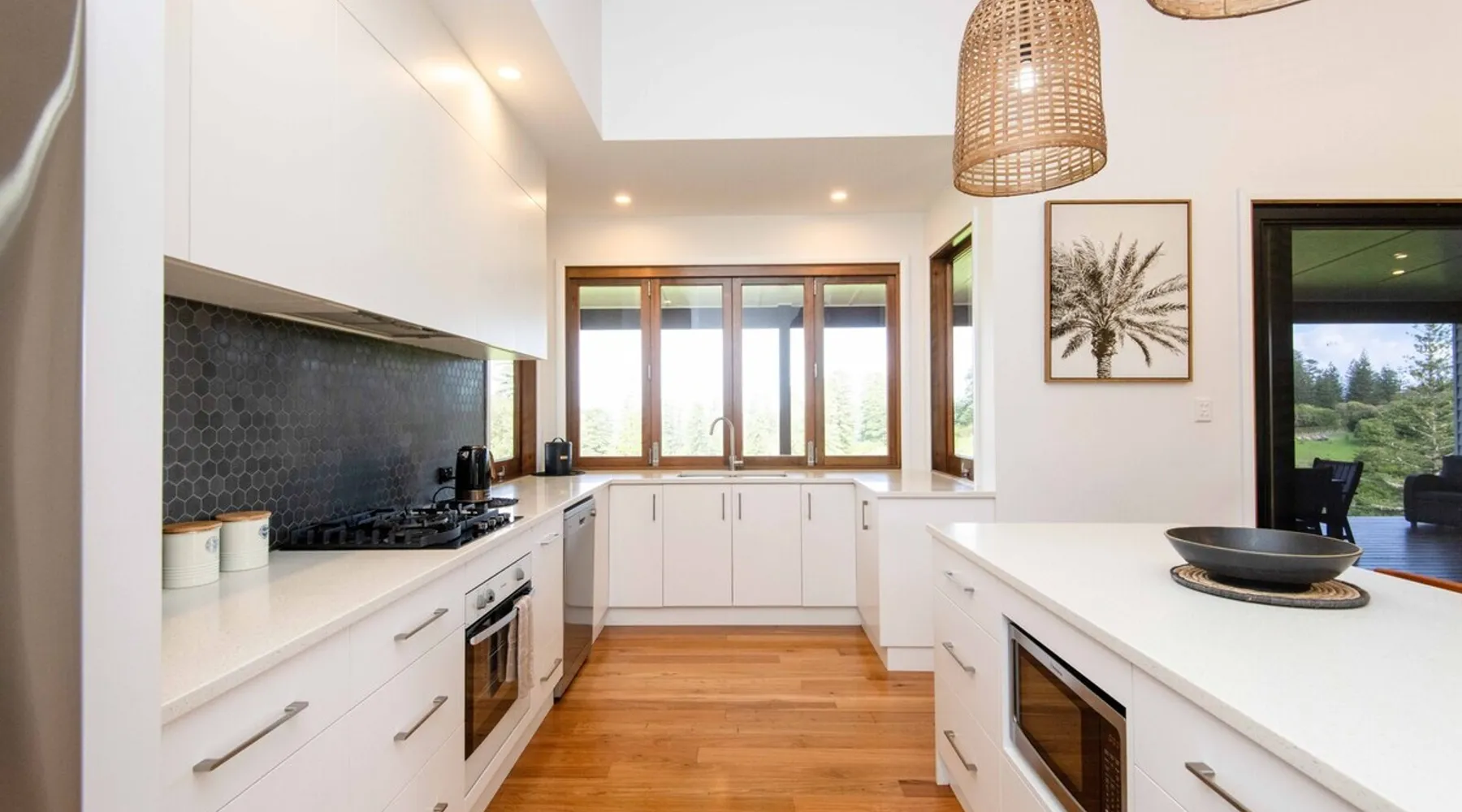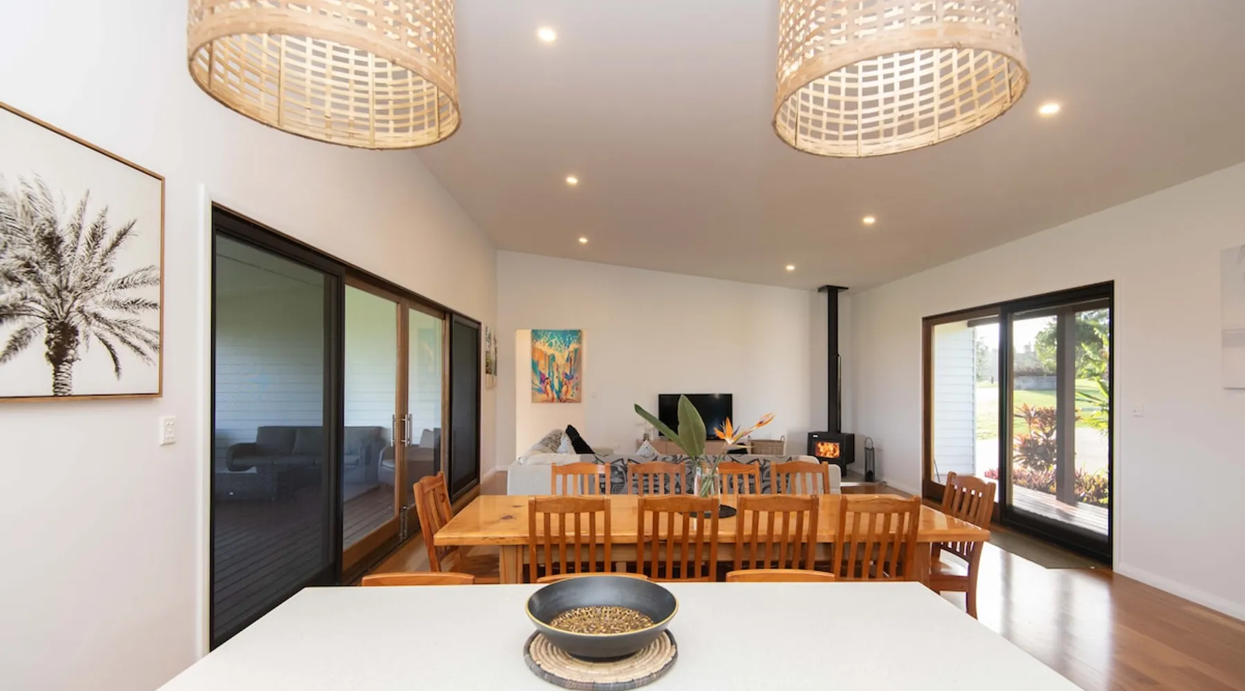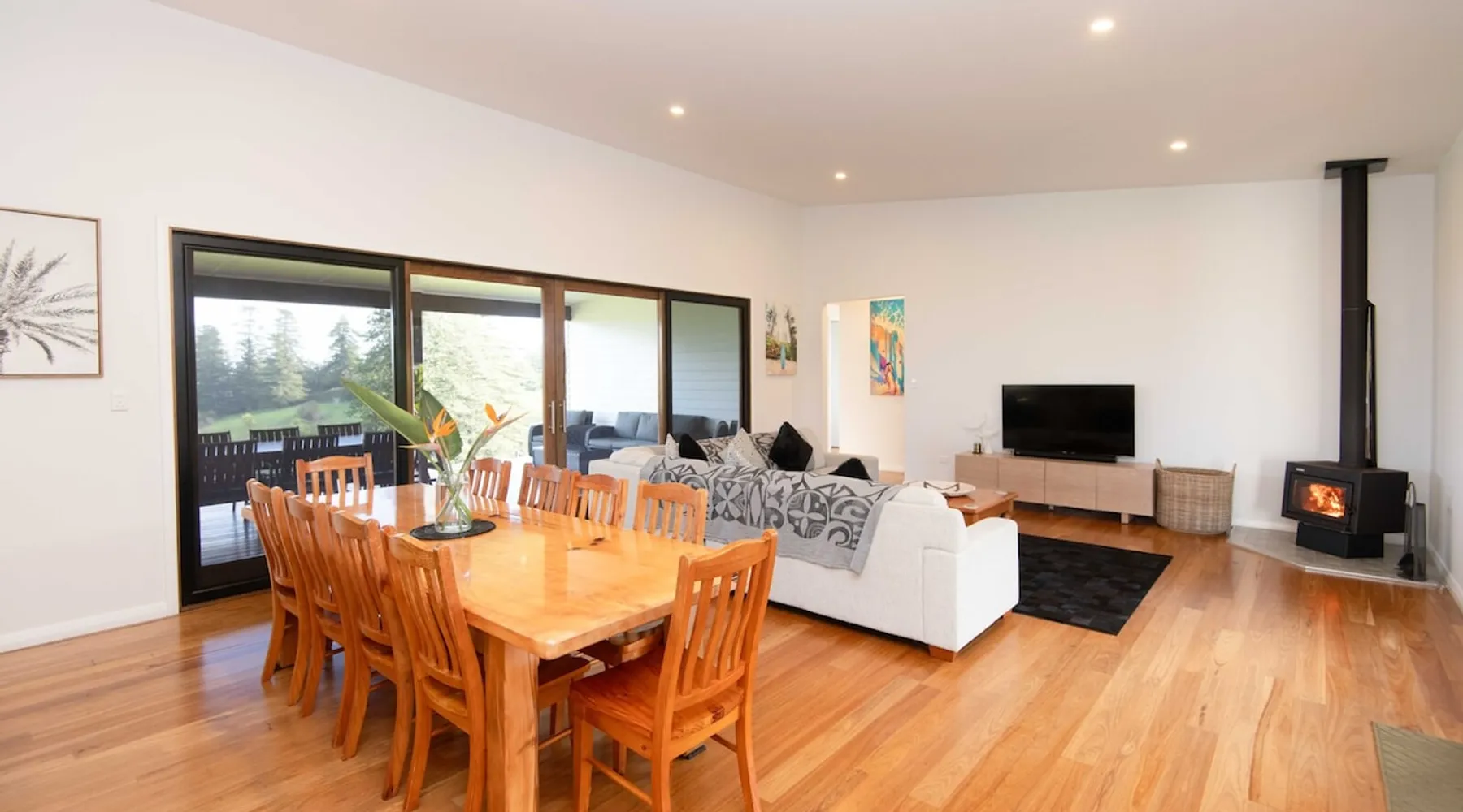 Discover serenity on Norfolk Island in this modern haven set on 50 acres of lush greenery. This 3-bedroom, 2-bathroom retreat offers privacy and breathtaking views. The home features large windows, an open-plan living area with a cozy fireplace, and a fully equipped kitchen with modern appliances. Enjoy sunsets from the deck, BBQs, and an outdoor fire pit. Includes a luxurious bathtub and a garage. Guests are met at the airport. A hire car can also be booked direct with your host. The space Welcome to your Norfolk Island retreat! This stunning 3-bedroom, 2-bathroom home offers luxurious amenities and serene surroundings. Bedrooms include a King, Queen, and 2 King Singles, perfect for couples or small groups. Enjoy a cosy fireplace in the open-plan living area, a fully equipped kitchen with modern appliances, and large windows with breathtaking views. Relax on the spacious deck with BBQ facilities and an outdoor fire pit. Additional features include a luxurious soak bathtub and a fully enclosed garage. Guest access Guests have access to this entire property. Other things to note Please note that this property does not accommodate children under 12 years old. Additional guests incur a fee of $50 per person, per day. To secure a hire car with your stay, please ask your host at time of booking for additional fees and availability.