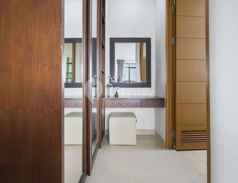 Welcome to Kyo by Kozystay, where modern elegance meets timeless charm! Step into a space adorned with earth-toned furnishings that exude warmth & style. This 3BR urban oasis is a fusion of contemporary design and vintage allure, offering you a unique experience. it's a haven of comfort and an invitation to make lasting memories. AVAILABLE TO GUESTS: + Digital Check-in + Professionally Cleaned + Hotel Grade Amenities & Fresh Linens + Free High-Speed Wi-Fi & Cable TV + Free Access to Netflix The space BEST FOR: Business Travelers, Family, Staycation NON-SMOKING General + 3 bedrooms (130m2) or 4 guests + 2 bathrooms (1 bathtub) + Amenities & linens; towels & toiletries + High-speed Wi-Fi & Cable TV + Free access to streaming services: Netflix + Dining table for 4 persons + High-zone (above 25th floor) + In-suite laundry (washer only) Master Bedroom + King size bed + 43" Smart TV + En suite bathroom (bathtub) + Vanity mirror + Hair dryer + Iron & ironing board Guest Bedroom + Single size bed + Closet space Guest Bedroom + Single size bed + Closet space Living Space +50'' Smart TV + Cable TV + Access to Netflix Kitchen + Fully equipped kitchen + Microwave + Gas stove: 4 burners + Oven + Rice cooker + Refrigerator & freezer + Water dispenser + No condiments available (salt, pepper,oil,etc) Guest access BUILDING FACILITIES: + Outdoor swimming pool + Fitness center + Sauna + Outdoor Kids Playroom + Outdoor tennis court + Outdoor basketball court Other things to note *** IMPORTANT INFORMATION *** + Kozystay is not a hotel but individually managed apartments. We do not provide a front desk for check-in or reservations. The building management is separate from Kozystay management and therefore all communication during guest stay and check-in & check-out process must be via Kozystay personnel + Guests must ensure contact details listed on Airbnb is valid and reachable SECURITY & COMMUNICATION + Each guests are strictly required to provide a form of identification (ID/passport) prior to check-in. + Communication throughout stay will be via web-based app or WA BUILDING + Hourly parking is available IDR 5.000/hours (Free Parking available for long-term) SERVICE + We are always on hand to make your visit as enjoyable as possible and we pride ourselves on going the extra mile so please don't hesitate to contact us. Whether you need help with the apartment, a recommendation or somewhere to leave your suitcase, we are here to assist + Extra cleaning is available with extra charge (500k/cleaning), this includes change of linens, amenities, and 2-3 hour cleaning LONG TERM STAYS Stay longer and save up to 45% on your stay + Weekly : 5% + >1 month : Contact us directly