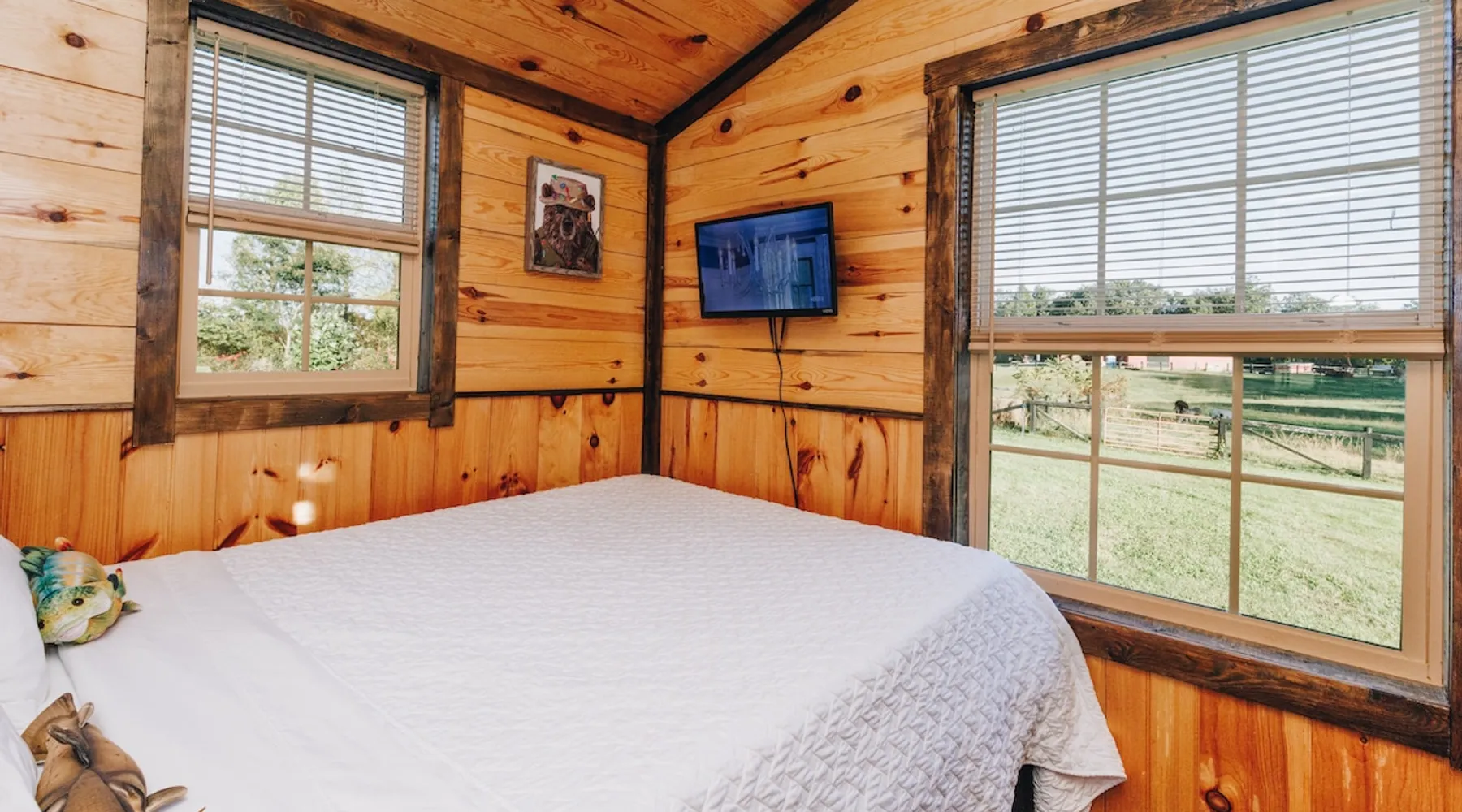 Welcome to peace and quiet! If seclusion is what you're searching for, then you have found the place! Located on a hobby farm beside of a stocked fishing pond, it's as much of a destination as it is an accommodation. The closest neighbors are 3 friendly donkeys that love to greet guests at the fence for attention and ear rubs. Fishing poles and donkey treats are provided to round out your stay. We're 20 scenic minutes to Slade or Stanton and 25 to Mount Sterling. The space It's a small space with plenty of room outside to stretch your legs. A large deck spans between the cabin and edge of the water, with a fire pit, picnic table, and charcoal grill close by. The bedroom features a full-size bed, and there is a comfy full-size futon in the living room. The bathroom has an oversized shower and toilet; the only sink in the space is in the kitchen, just outside the bathroom door. There's an all-in-one washer/dryer in the cabin as well. Guest access Guests have access to the entire place. There's lots of parking available, and you're welcome to walk the donkey pasture if you want to wander and explore a little. Other things to note When I say secluded, I mean it. Why leave the city and drive hours to sleep in a cabin that sits right beside others? There is no shared space. No shared fire pit. No shared anything. You can see neighbors in the distance, but they're not close enough to be significant.