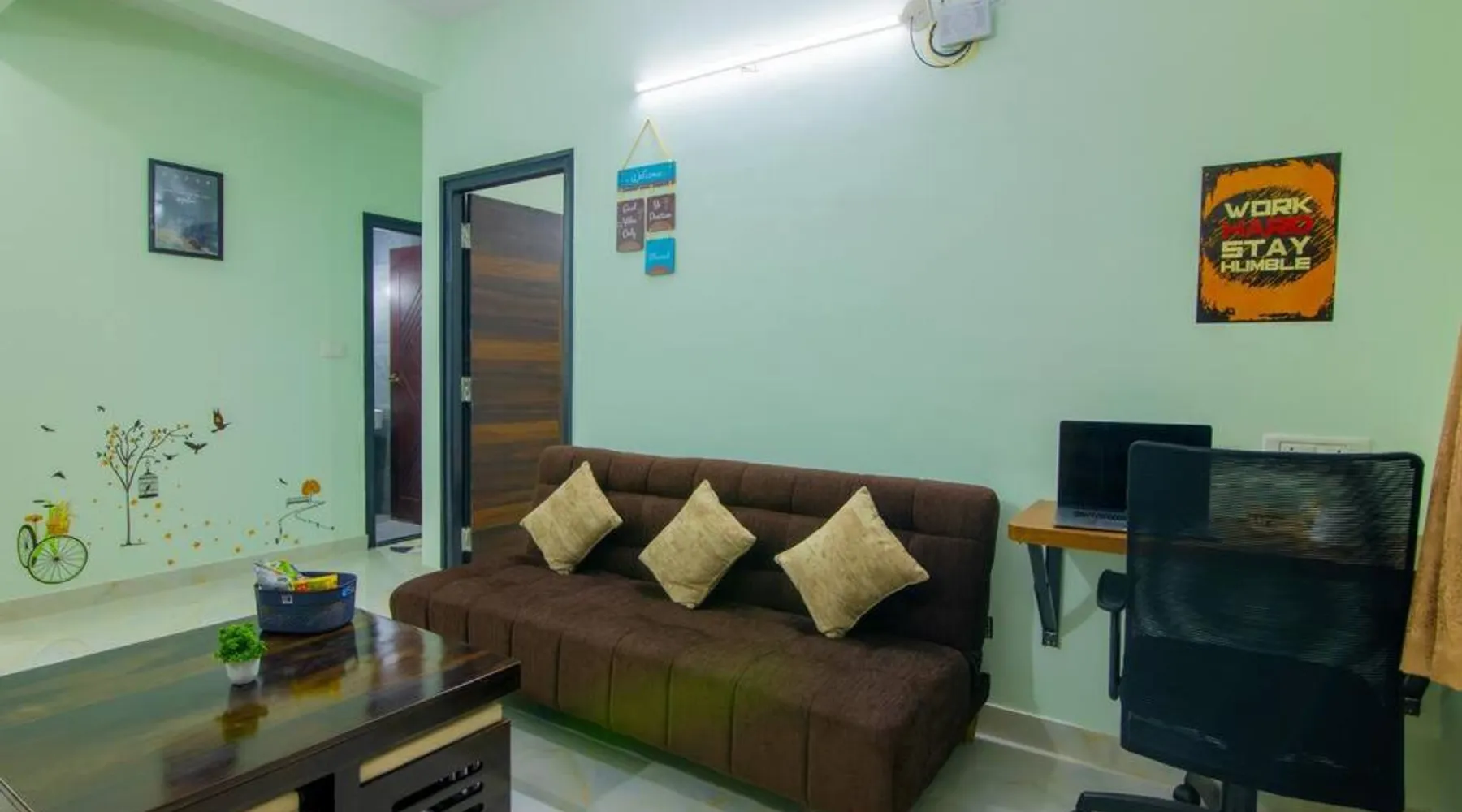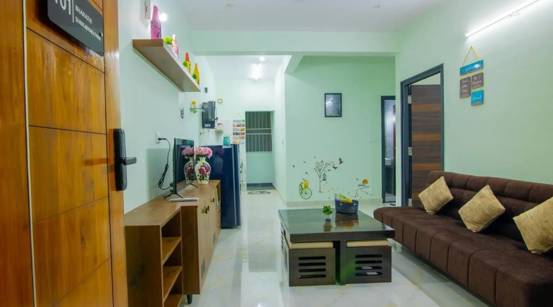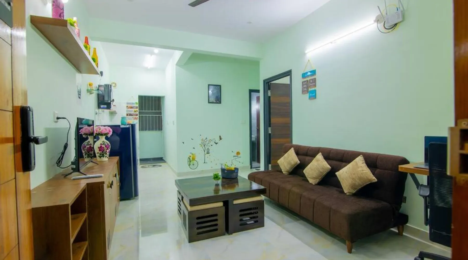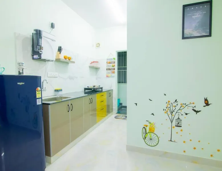 Awesome 2bhk flat on first floor is located in Bangalore, just 5.8 miles from The Forum, Koramangala and 7.6 miles from ISKCON Hare Krishna Temple. This property offers access to a terrace and free private parking. Bull Temple is 8.5 miles away and Brigade Road is 8.6 miles from the vacation home. With free Wifi, this 2-bedroom vacation home offers a flat-screen TV, a washing machine, and a fully equipped kitchen with a fridge and kitchenware. The accommodation is non-smoking. Chinnaswamy Stadium is 9.3 miles from the vacation home, while Kanteerava Indoor Stadium is 10 miles away. The nearest airport is Kempegowda International Airport, 29 miles from Awesome 2bhk flat on first floor. The holiday home's kitchen, which features a refrigerator and kitchenware, is available for cooking and storing food. This holiday home has a washing machine, heating, a flat-screen TV and a terrace. The unit has 3 beds.
