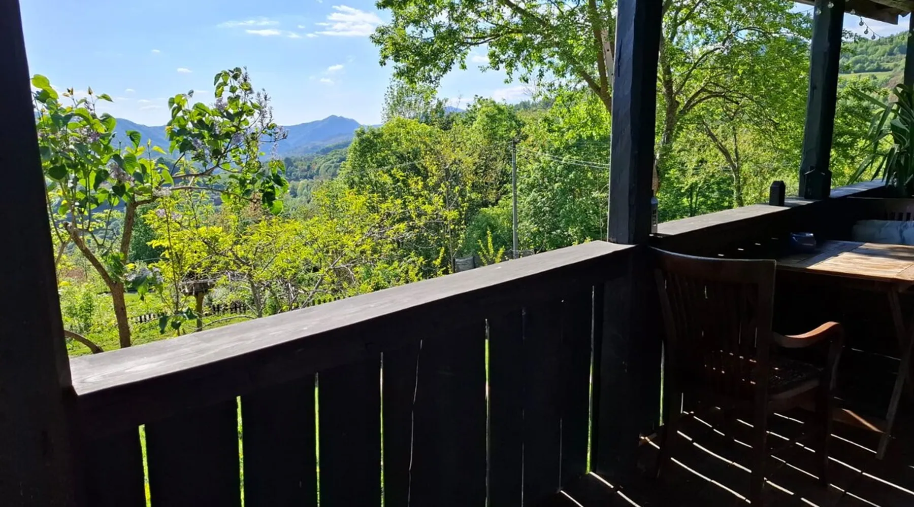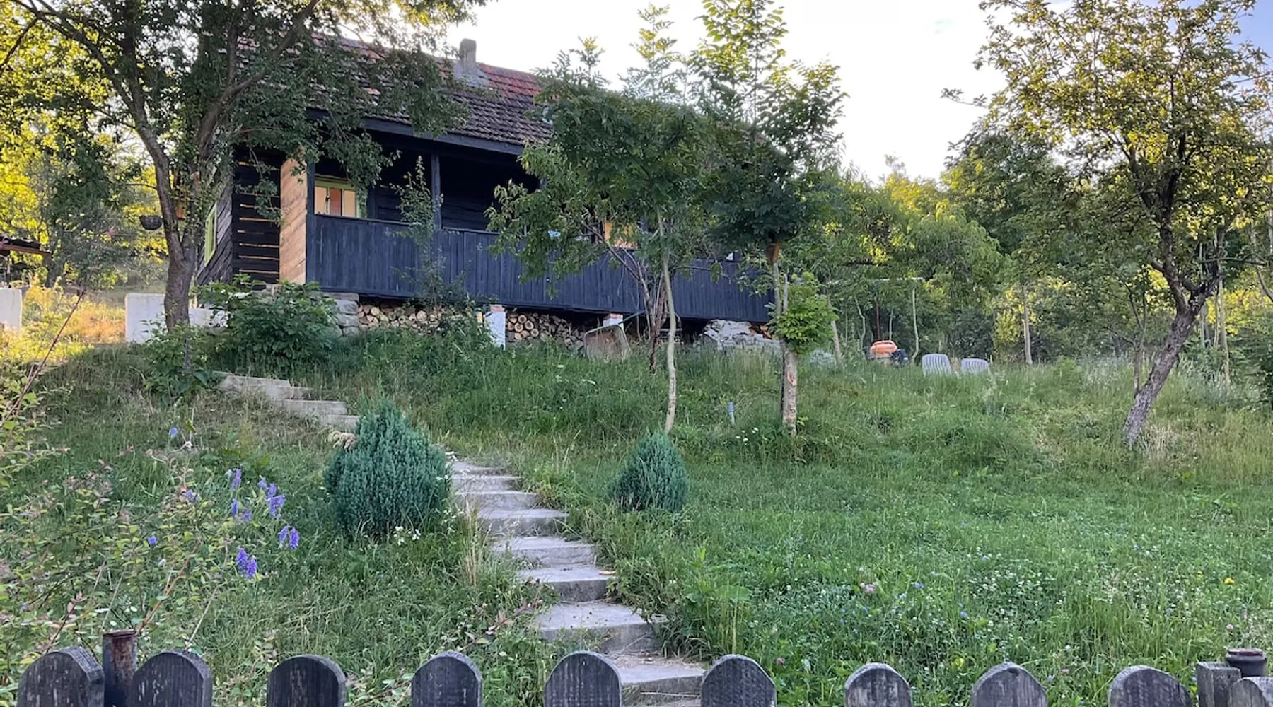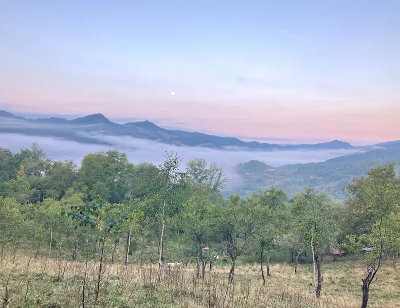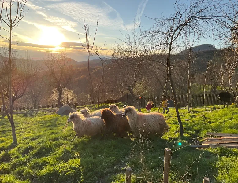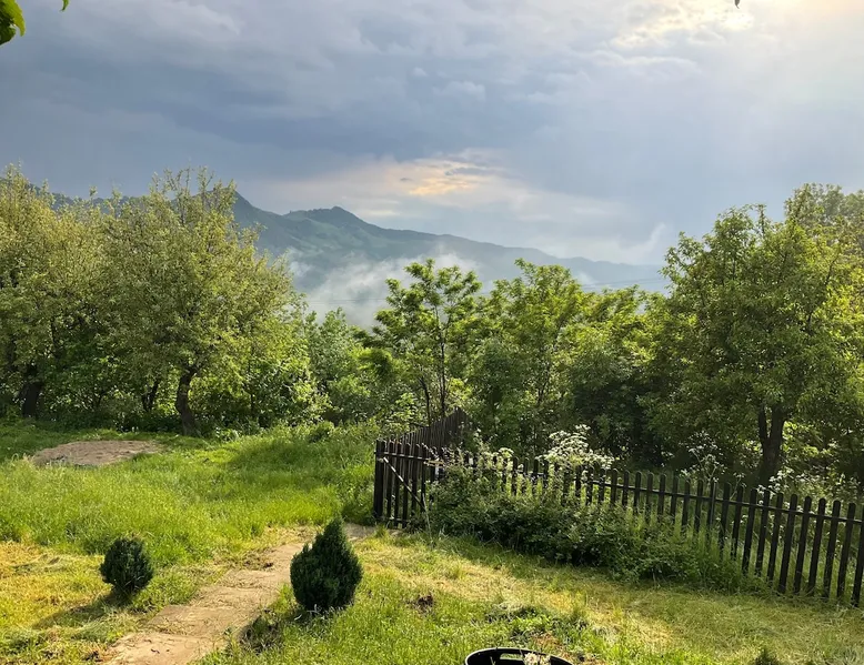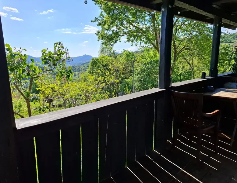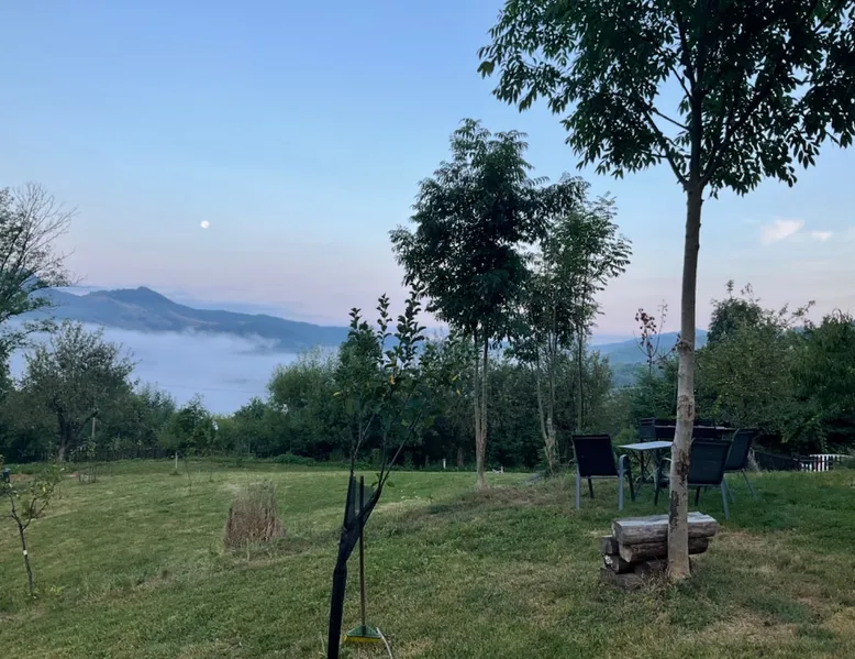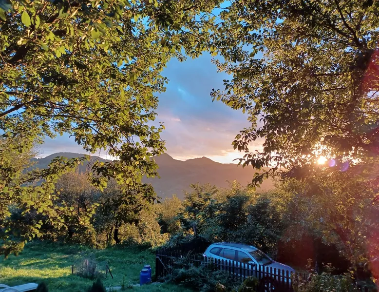 We are waiting for you in the wooden cottage, where the tranquility of nature becomes a sweet song for your soul. Take your time here by reading a favorite book, sipping a cup of tea, or simply losing your gaze in the waking colors of the sky. Rediscover the joy of simple things - the sounds of birds in the morning, the smell of freshly mowed grass, and the good will of our country house that offers a perfect escape from the city clutter. The space The guest house in our household offers everything you need for a relaxing and memorable stay. You will find a cozy bedroom, a fully equipped kitchen, private bathroom and a terrace with a spectacular view to the sunset. You can venture into exploring the mountain trails in the vicinity of the village, or you can simply relax on the terrace and enjoy the panoramic view of the mountains. And in the evening you can light a fire in the stove with a glass door and enjoy the warmth and intimate atmosphere it provides to the bedroom. For the most adventurous, there is also the possibility to climb the cliffs in the nearby mountains. Sunsetting is the ideal place for a romantic weekend, a family getaway, or a relaxing holiday with friends. Guest access There is a separate house waiting for you in our household, to give you the privacy and comfort you need during your stay here. The kitchen is a corner of joy for those passionate about cooking. Fully equipped, it offers you the possibility of preparing delicious food and enjoying every moment of your culinary experience. The bathroom welcomes you with freshness and modernity. When it comes to relaxing, the bedroom is waiting for you to indulge in a restful and peaceful sleep. And the wooden terrace is a personal sanctuary. But not only the interior belongs to you, but also the generous exterior. The spacious yard offers you the freedom to walk, relax or spend moments at will with your loved ones, and for children there is a playhouse specially designed under one of the nuts. This separate house in the household is not just a place to stay, but a refuge where you will create precious memories and feel at home. Other things to note We have 3 large and friendly dogs, two playful cats, chickens, ducks and sheep that deal with “mowing” the grass in the orchard. We don't welcome guests with pets so there's no inconvenience.