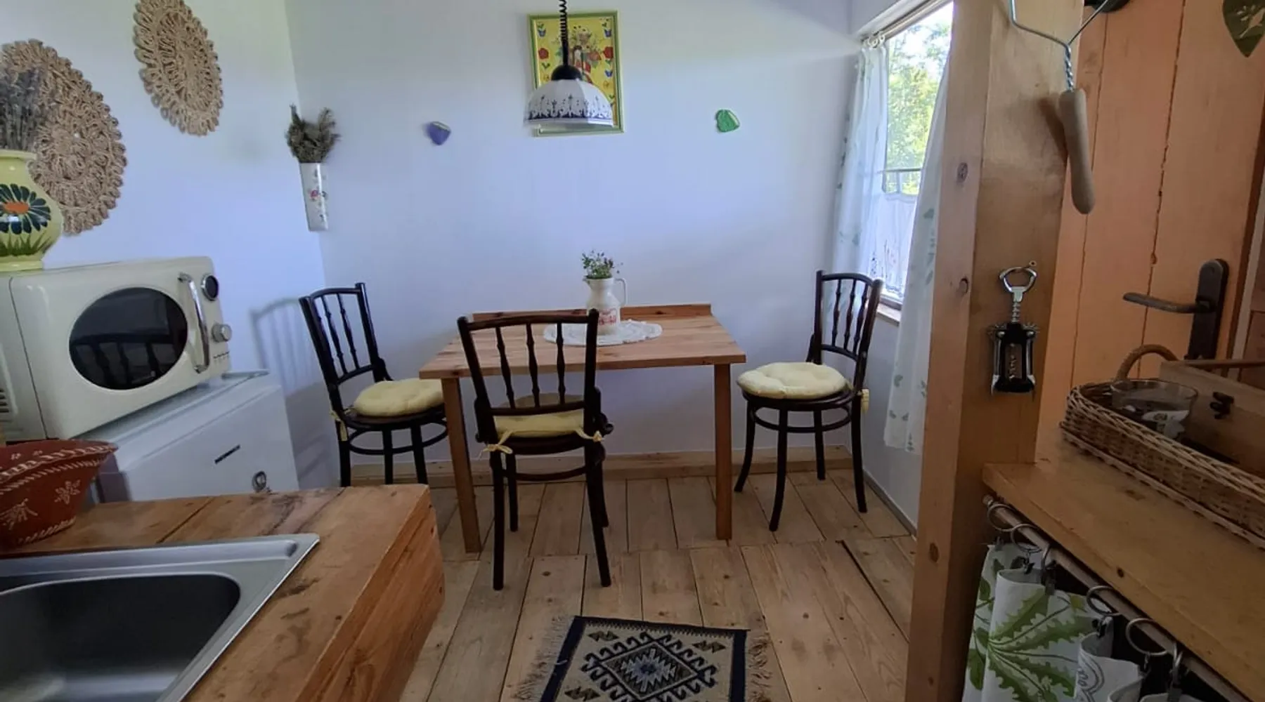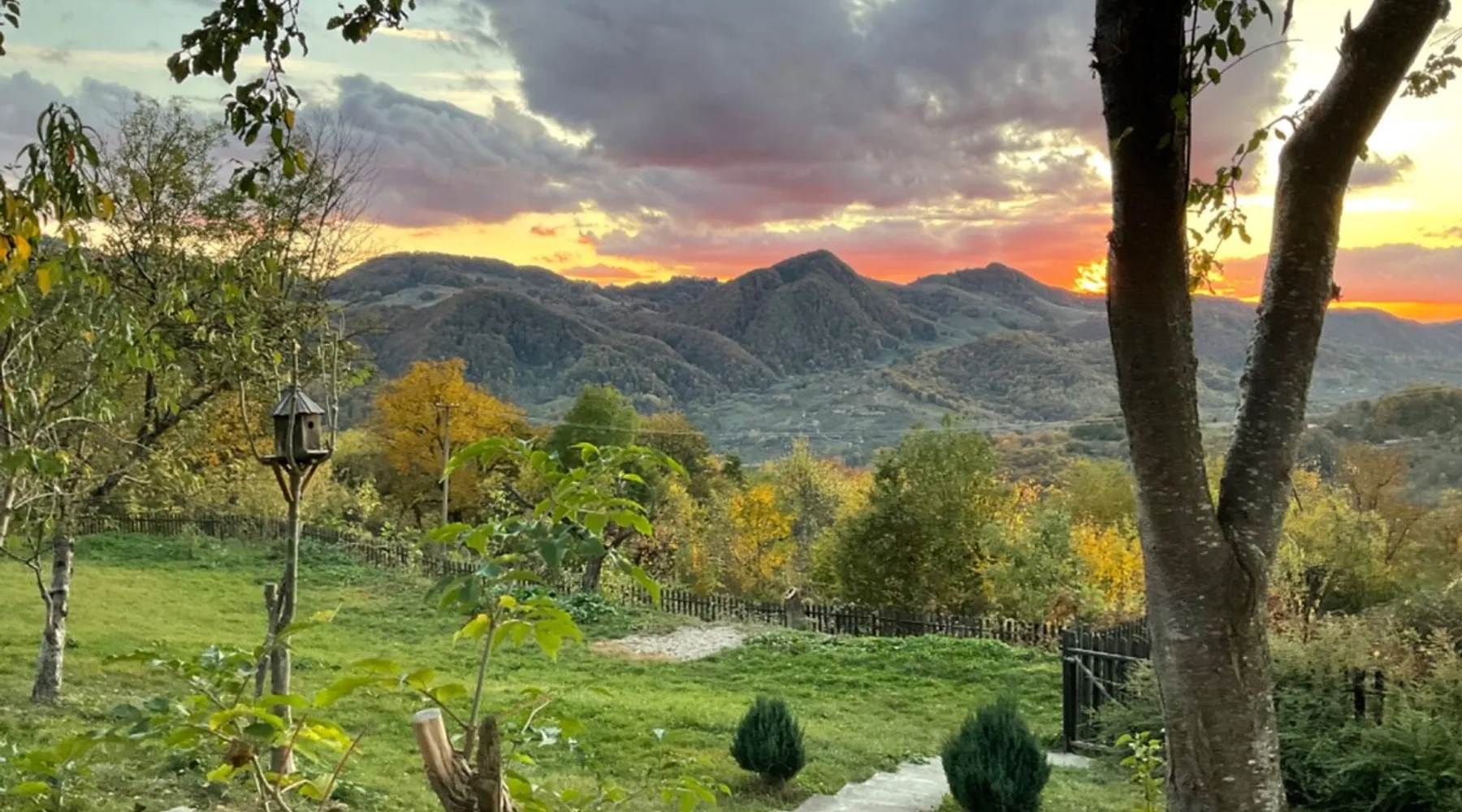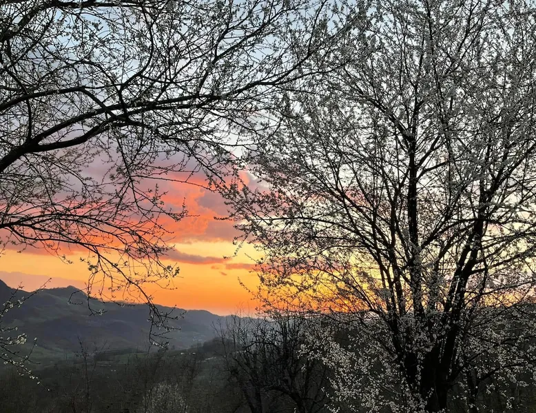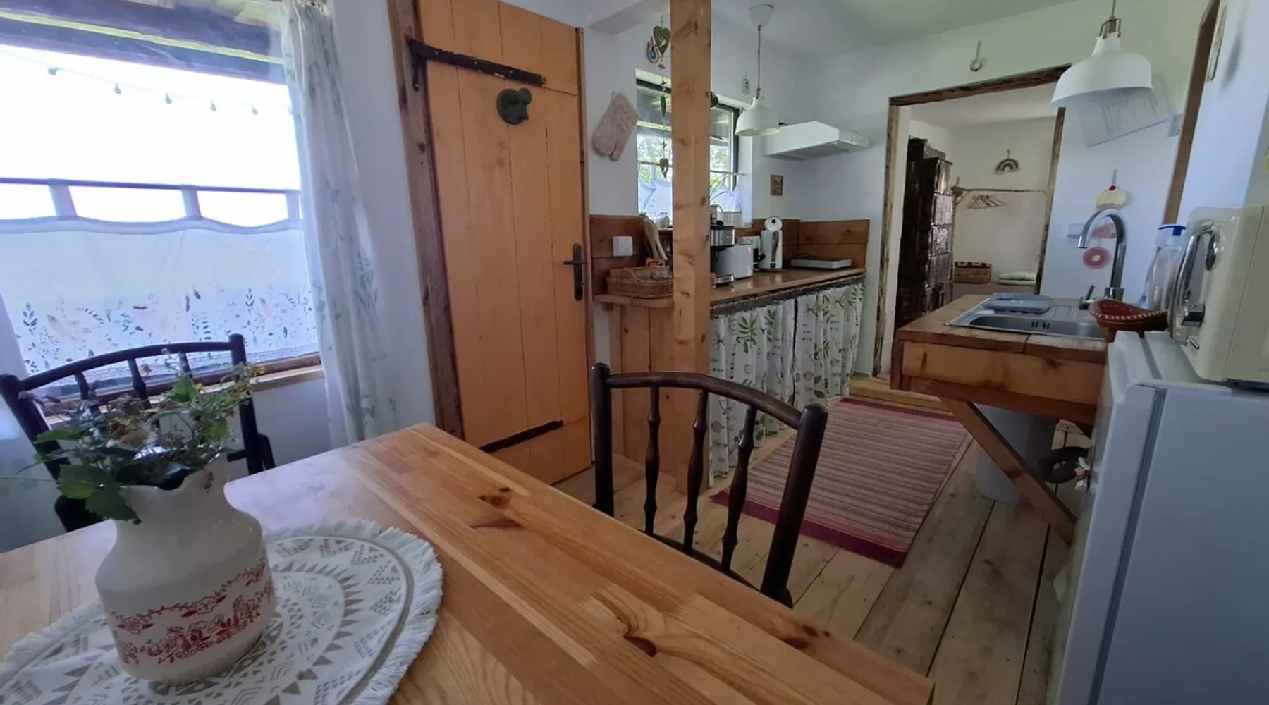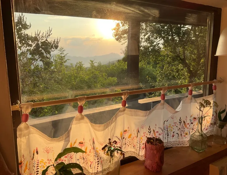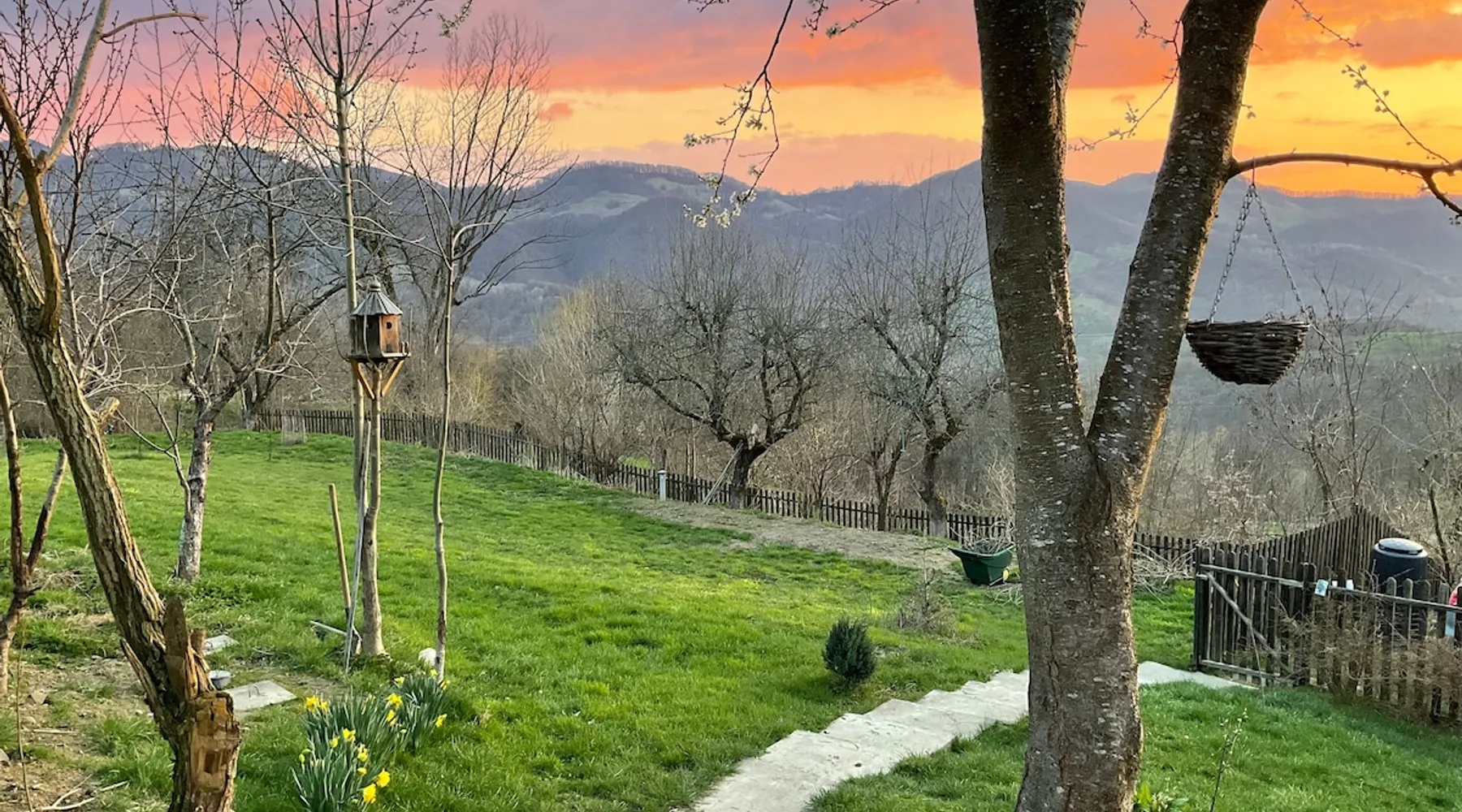 We are waiting for you in the wooden cottage, where the tranquility of nature becomes a sweet song for your soul. Take your time here by reading a favorite book, sipping a cup of tea, or simply losing your gaze in the waking colors of the sky. Rediscover the joy of simple things - the sounds of birds in the morning, the smell of freshly mowed grass, and the good will of our country house that offers a perfect escape from the city clutter. The space The guest house in our household offers everything you need for a relaxing and memorable stay. You will find a cozy bedroom, a fully equipped kitchen, private bathroom and a terrace with a spectacular view to the sunset. You can venture into exploring the mountain trails in the vicinity of the village, or you can simply relax on the terrace and enjoy the panoramic view of the mountains. And in the evening you can light a fire in the stove with a glass door and enjoy the warmth and intimate atmosphere it provides to the bedroom. For the most adventurous, there is also the possibility to climb the cliffs in the nearby mountains. Sunsetting is the ideal place for a romantic weekend, a family getaway, or a relaxing holiday with friends. Guest access There is a separate house waiting for you in our household, to give you the privacy and comfort you need during your stay here. The kitchen is a corner of joy for those passionate about cooking. Fully equipped, it offers you the possibility of preparing delicious food and enjoying every moment of your culinary experience. The bathroom welcomes you with freshness and modernity. When it comes to relaxing, the bedroom is waiting for you to indulge in a restful and peaceful sleep. And the wooden terrace is a personal sanctuary. But not only the interior belongs to you, but also the generous exterior. The spacious yard offers you the freedom to walk, relax or spend moments at will with your loved ones, and for children there is a playhouse specially designed under one of the nuts. This separate house in the household is not just a place to stay, but a refuge where you will create precious memories and feel at home. Other things to note We have 3 large and friendly dogs, two playful cats, chickens, ducks and sheep that deal with “mowing” the grass in the orchard. We don't welcome guests with pets so there's no inconvenience.