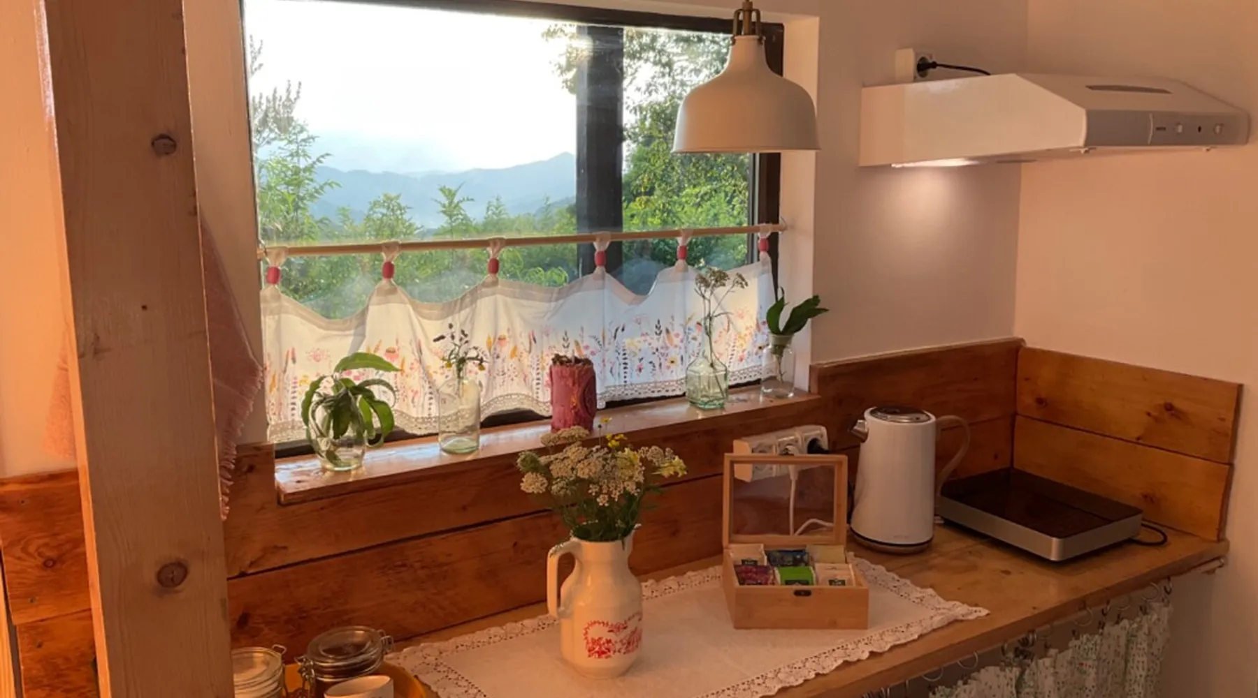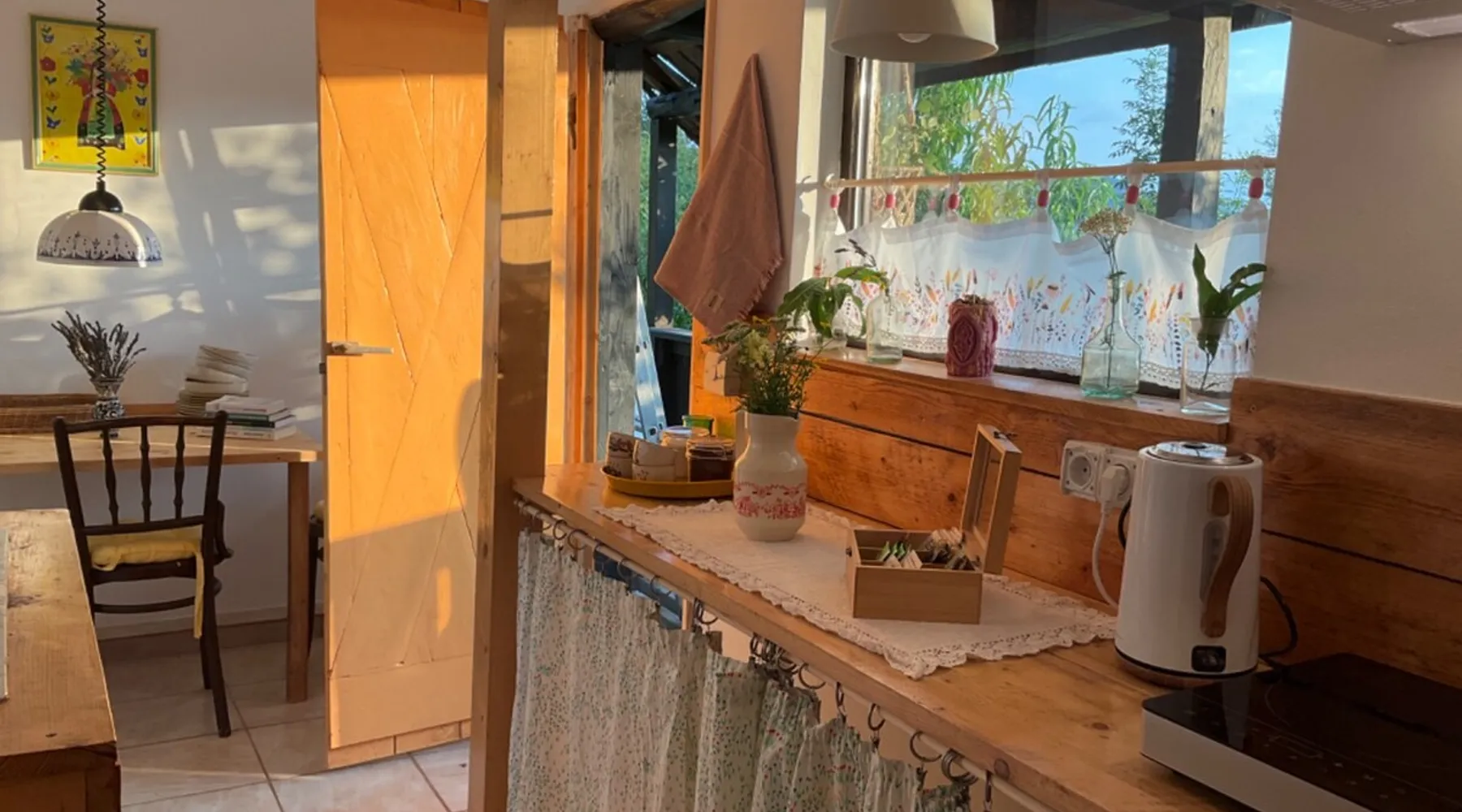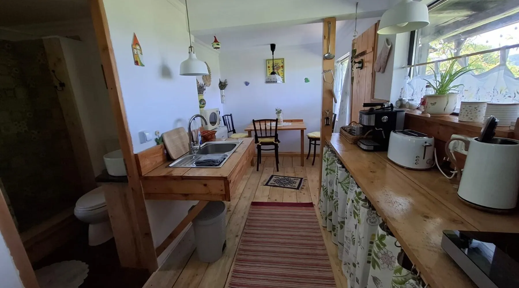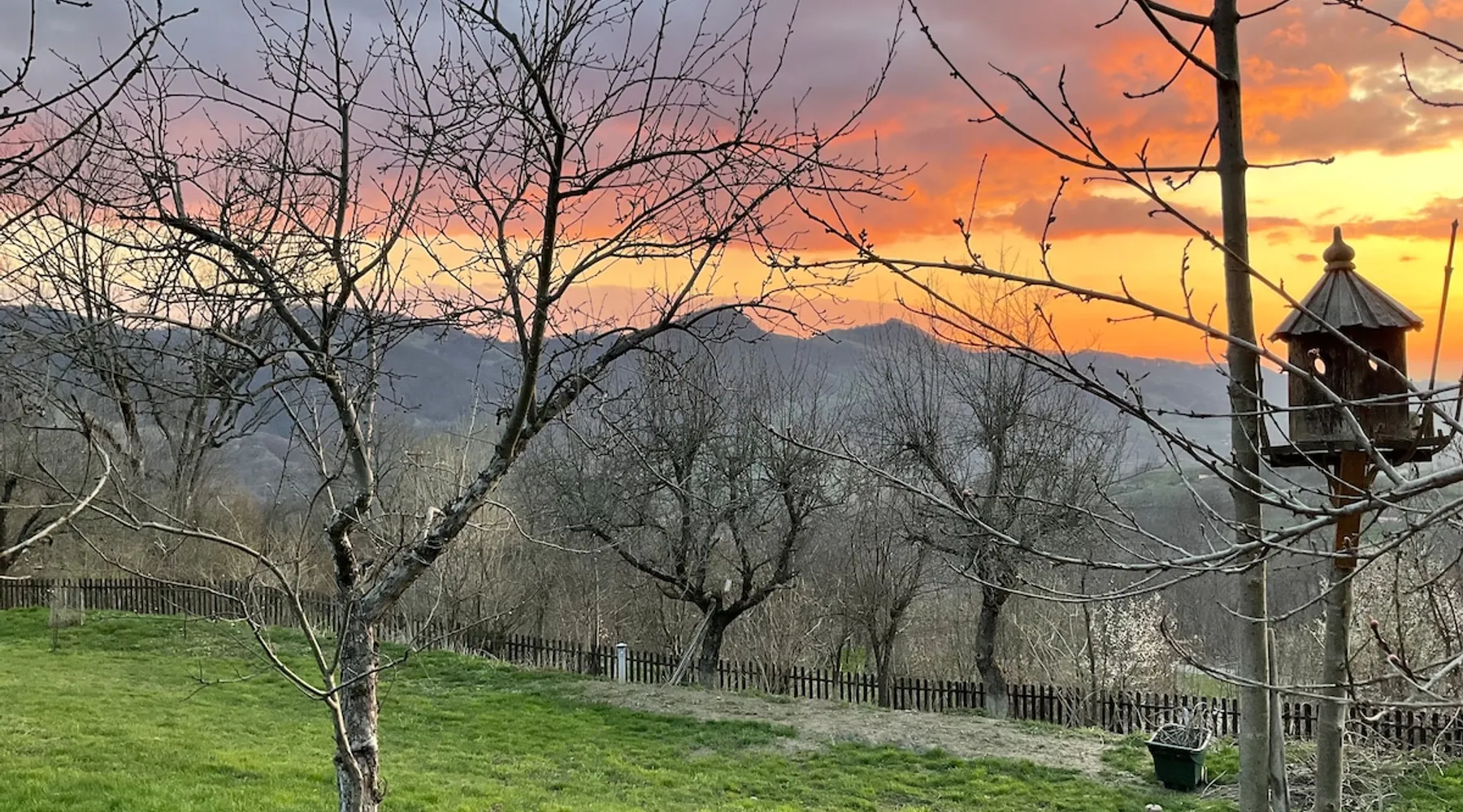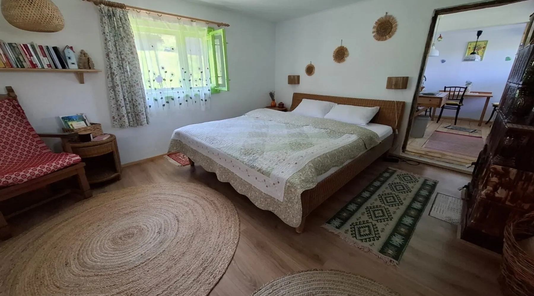 We are waiting for you in the wooden cottage, where the tranquility of nature becomes a sweet song for your soul. Take your time here by reading a favorite book, sipping a cup of tea, or simply losing your gaze in the waking colors of the sky. Rediscover the joy of simple things - the sounds of birds in the morning, the smell of freshly mowed grass, and the good will of our country house that offers a perfect escape from the city clutter. The space The guest house in our household offers everything you need for a relaxing and memorable stay. You will find a cozy bedroom, a fully equipped kitchen, private bathroom and a terrace with a spectacular view to the sunset. You can venture into exploring the mountain trails in the vicinity of the village, or you can simply relax on the terrace and enjoy the panoramic view of the mountains. And in the evening you can light a fire in the stove with a glass door and enjoy the warmth and intimate atmosphere it provides to the bedroom. For the most adventurous, there is also the possibility to climb the cliffs in the nearby mountains. Sunsetting is the ideal place for a romantic weekend, a family getaway, or a relaxing holiday with friends. Guest access There is a separate house waiting for you in our household, to give you the privacy and comfort you need during your stay here. The kitchen is a corner of joy for those passionate about cooking. Fully equipped, it offers you the possibility of preparing delicious food and enjoying every moment of your culinary experience. The bathroom welcomes you with freshness and modernity. When it comes to relaxing, the bedroom is waiting for you to indulge in a restful and peaceful sleep. And the wooden terrace is a personal sanctuary. But not only the interior belongs to you, but also the generous exterior. The spacious yard offers you the freedom to walk, relax or spend moments at will with your loved ones, and for children there is a playhouse specially designed under one of the nuts. This separate house in the household is not just a place to stay, but a refuge where you will create precious memories and feel at home. Other things to note We have 3 large and friendly dogs, two playful cats, chickens, ducks and sheep that deal with “mowing” the grass in the orchard. We don't welcome guests with pets so there's no inconvenience.