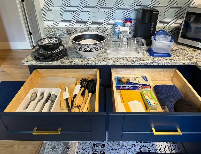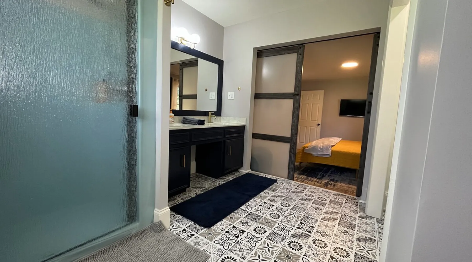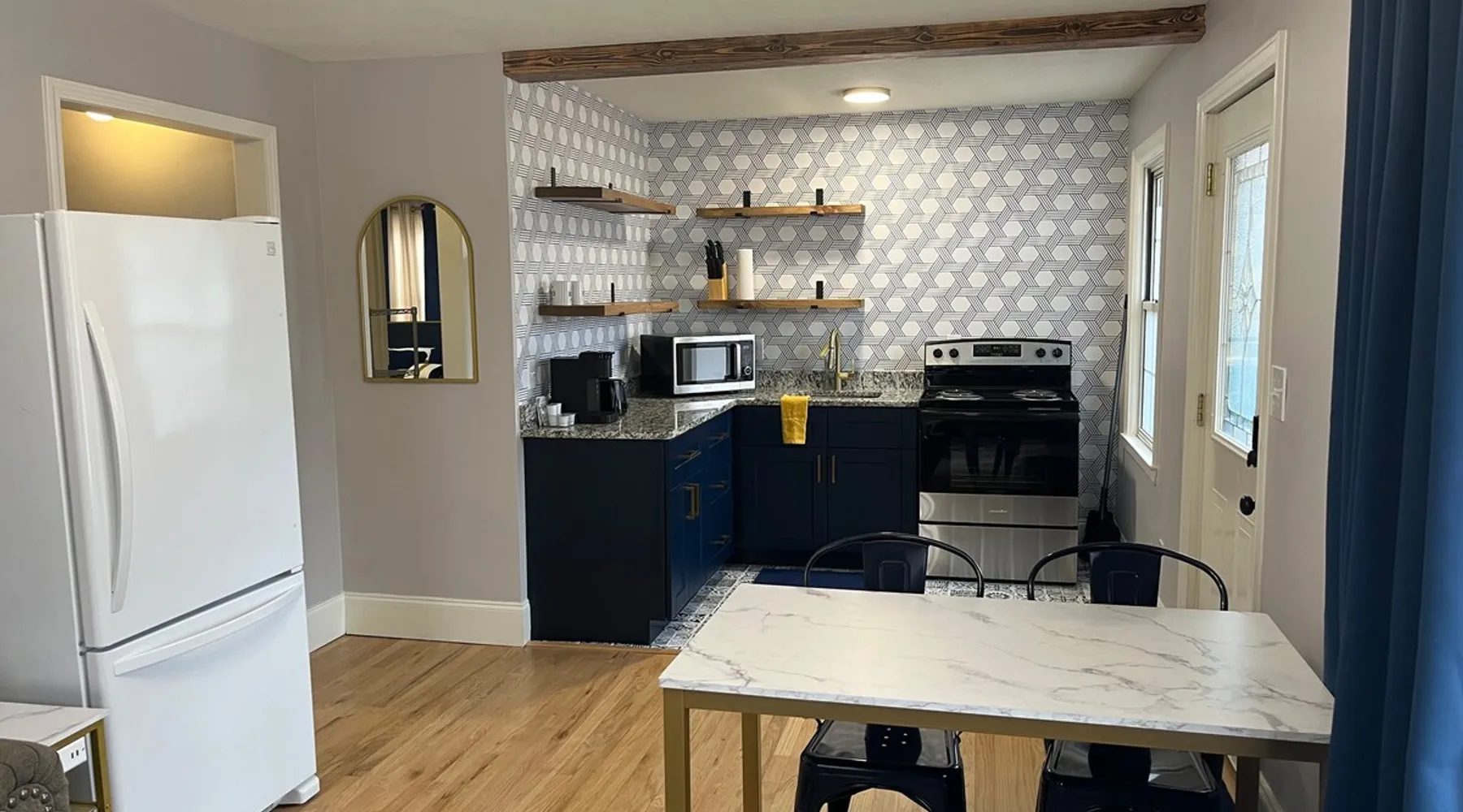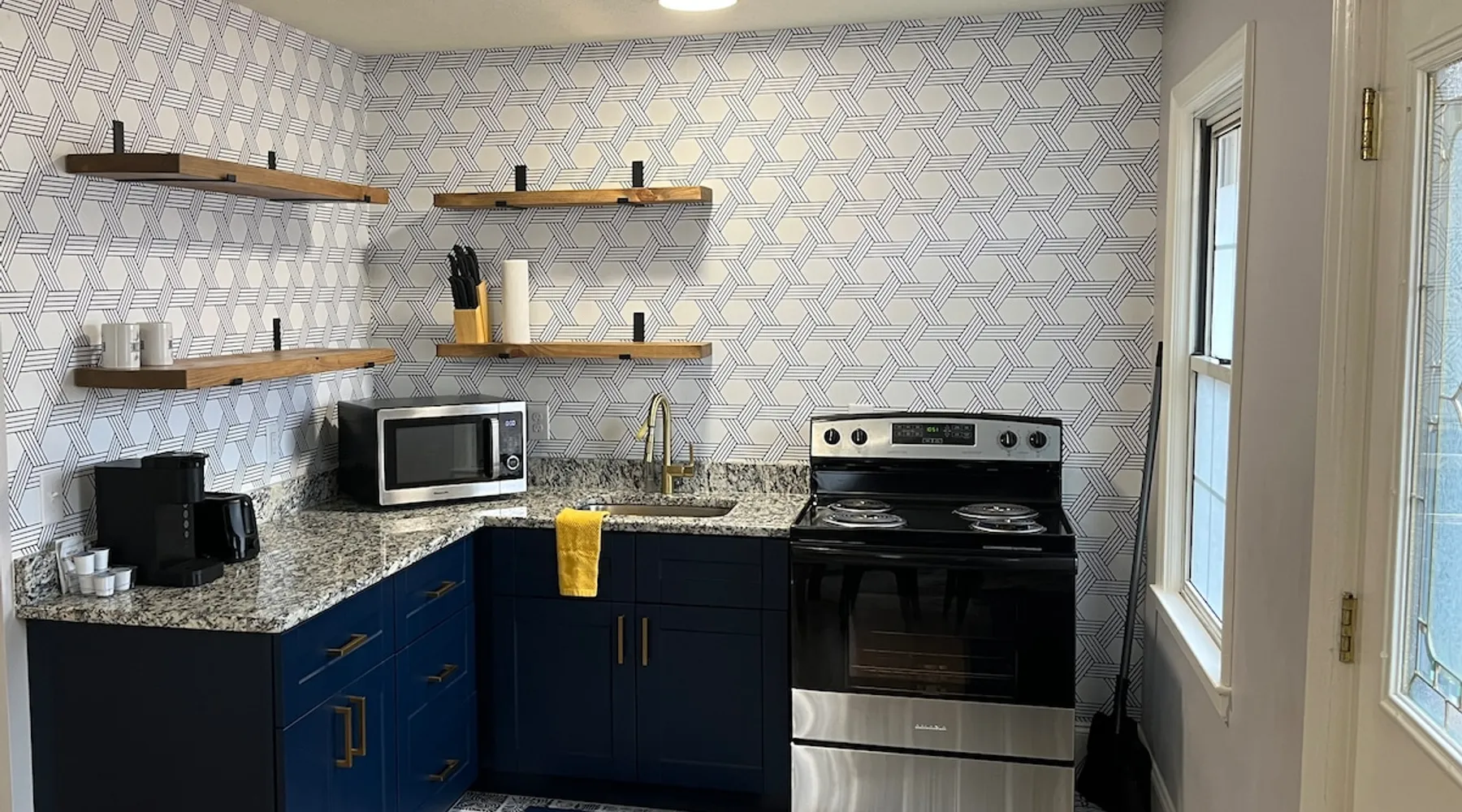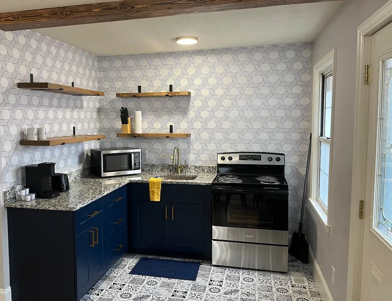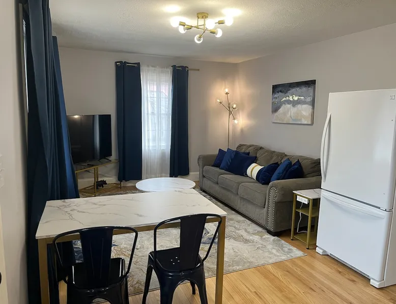 We invite you to come enjoy this exquisite one-bedroom private home, a harmonious blend of style, comfort, and convenience. Nestled in an enviable location, this newly remodeled twin home offers a sanctuary of mid-century modern elegance. Only 1 mile to Forsyth Hospital and 2.5 miles to Baptist Hospital. The space As you step inside, you are greeted by an atmosphere of sophistication and comfort. The spacious living area is tastefully adorned with contemporary furnishings, carefully selected to create a chic and inviting ambiance. Sink into the plush sofa, unwind after a long day, relish in the abundance of natural light that floods the room, and relax watching the 58” smart TV. The kitchenette seamlessly integrates into the living space, boasting sleek countertops, a full-size refrigerator, an air fryer/microwave, a toaster, and a Keurig coffee maker. The bedroom, an oasis of tranquility, beckons you to unwind and rejuvenate. A luxurious king-sized bed, adorned with premium linens, promises a restful night's sleep. Adjoining the bedroom is a well-appointed en-suite bathroom, featuring beautiful fixtures, and elegant finishes. Privacy is paramount in this stylish rental. The duplex is thoughtfully designed to ensure a quiet and intimate living experience. Soundproofing materials were used on the shared walls to create a serene environment. Situated in a highly sought-after location, this home offers unparalleled convenience. Within a short drive, you'll find yourself amidst a vibrant array of shops, restaurants, and entertainment venues. To enhance your stay, the home is equipped with modern amenities, including high-speed fiber internet, two smart TVs, and central air conditioning. The washer and dryer are free to use and are shared with the one adjoining unit. Whether you're a busy professional, a couple on a romantic getaway, or a solo traveler exploring the city, this one-bedroom furnished rental is a haven of style and convenience. Immerse yourself in the allure of its newly remodeled interior, revel in the privacy it offers, and relish in its prime location close to everything. Come stay awhile. Please note there is one other separate unit in the same building.