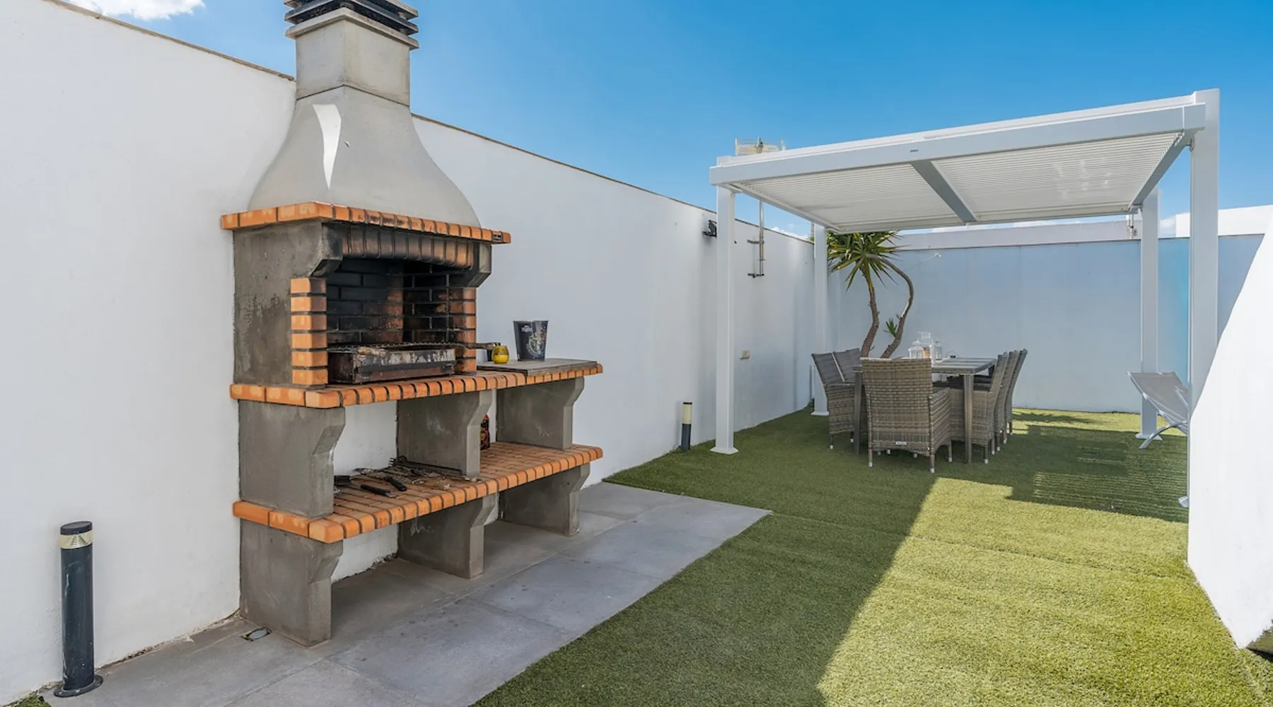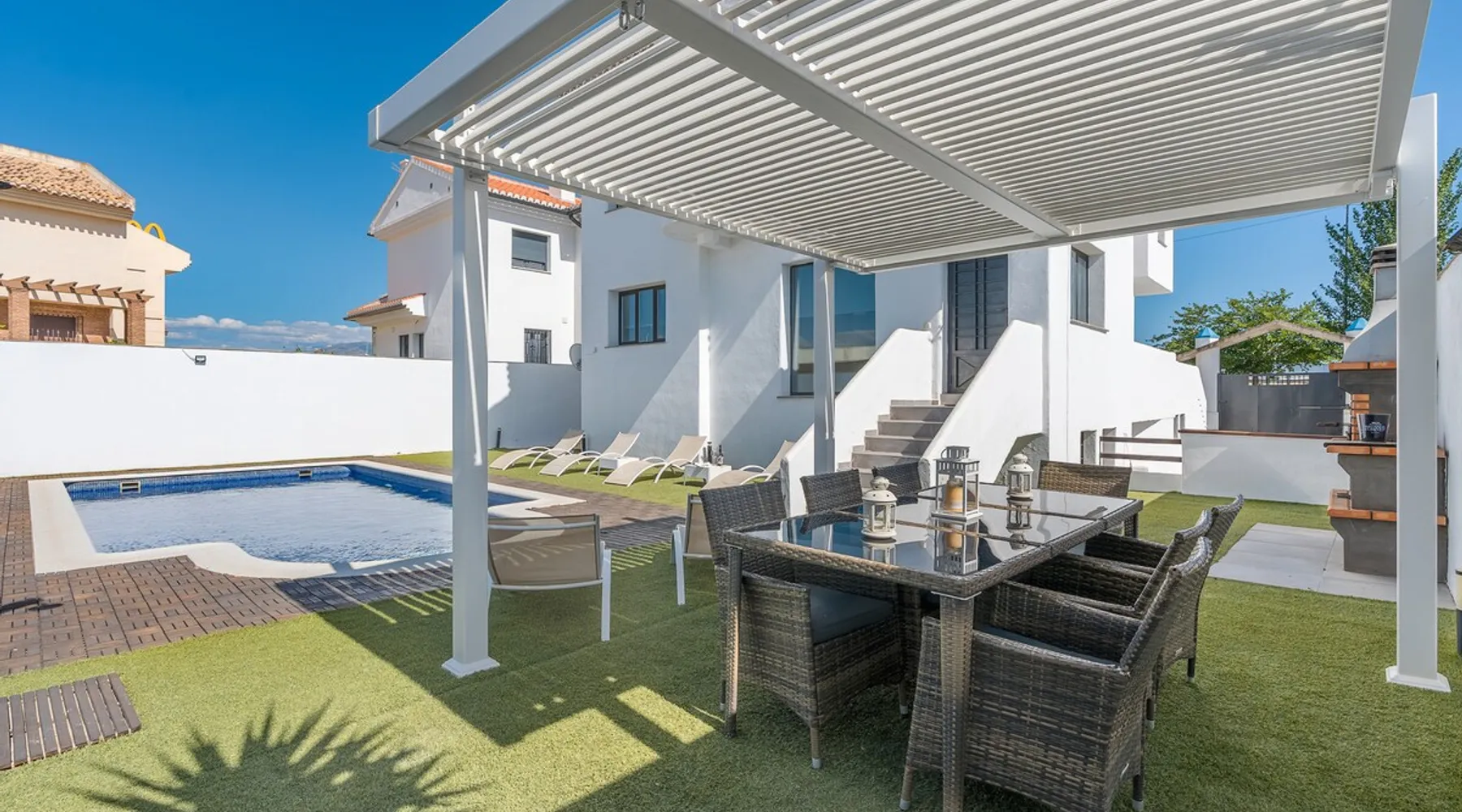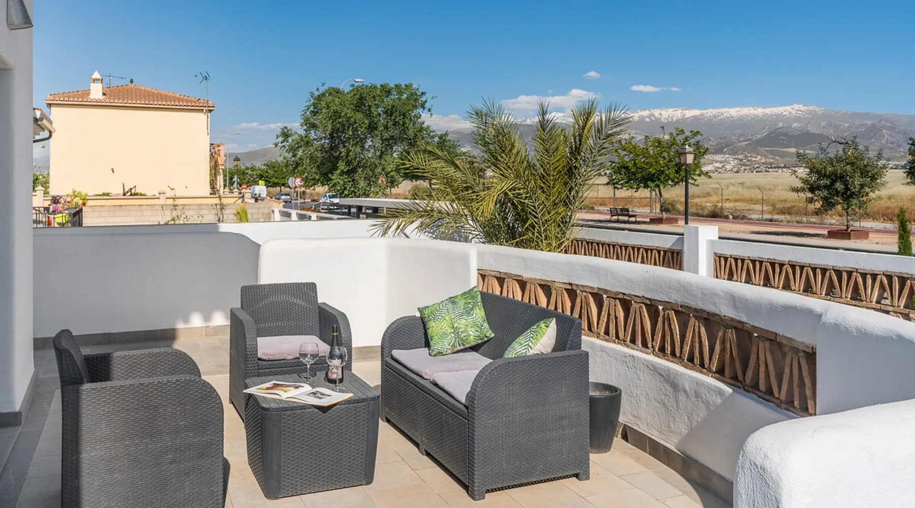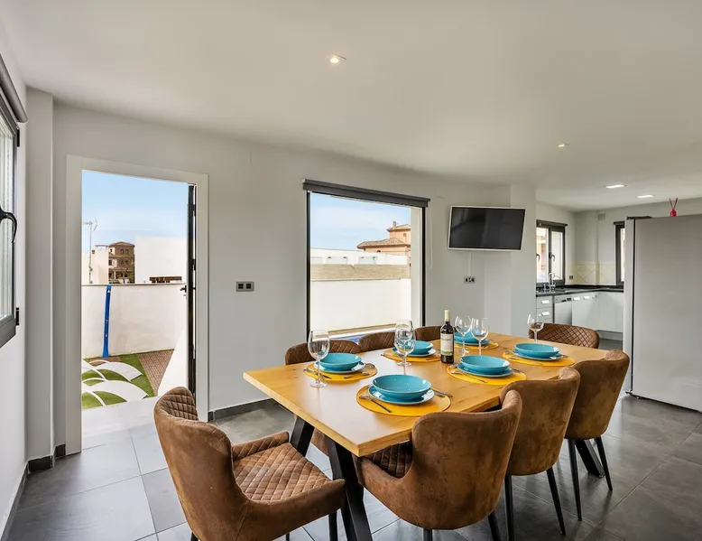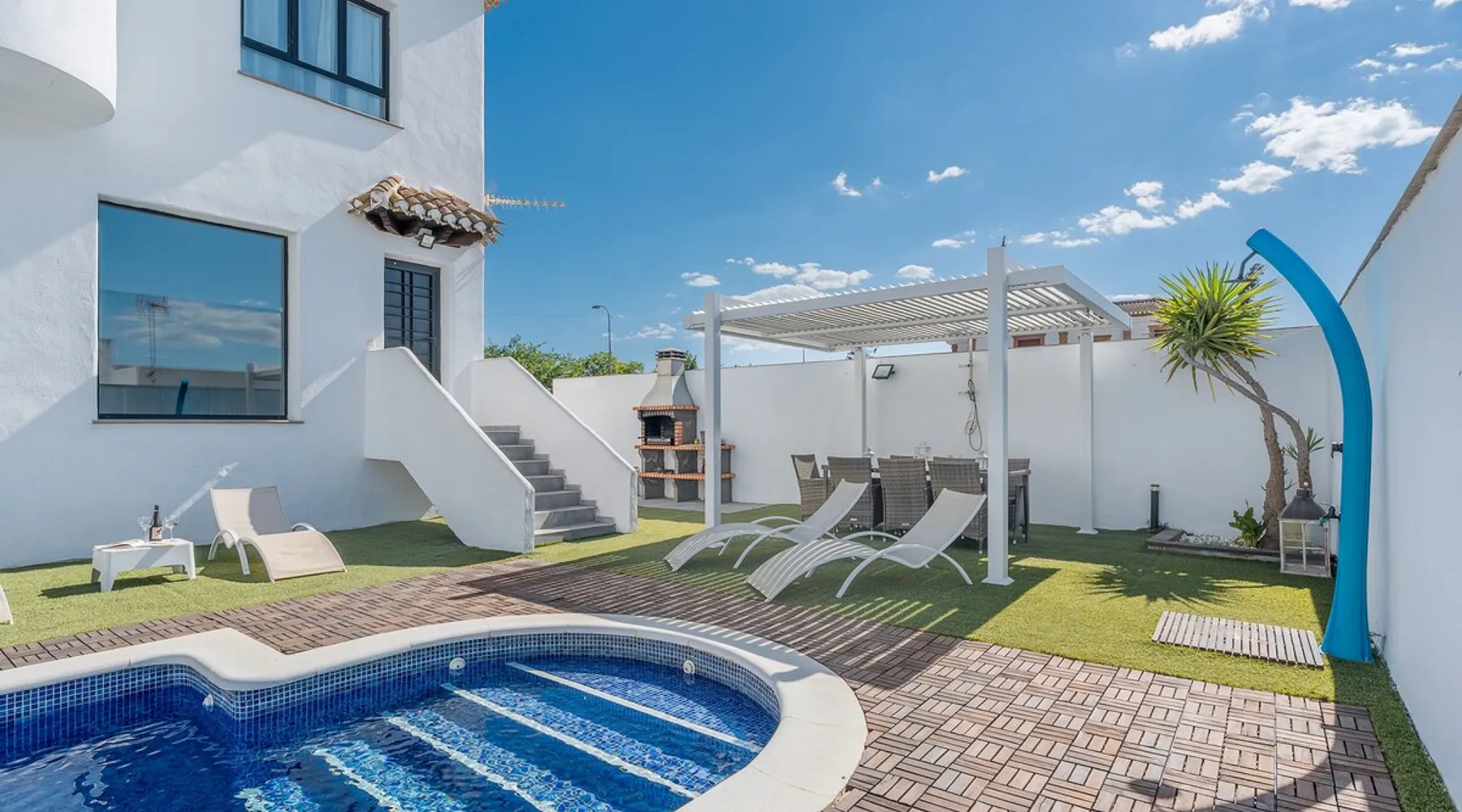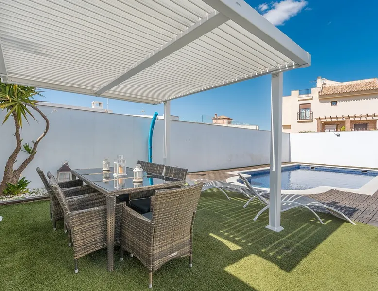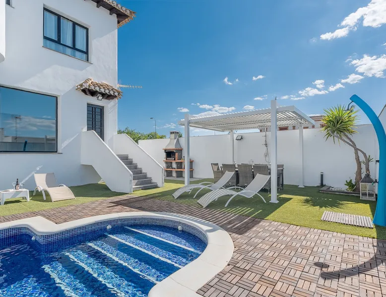 The villa "Valeria" is located in Las Gabias and overlooks the mountain. The 3-storey property consists of a living room, a fully-equipped kitchen, 3 bedrooms, 2 bathrooms and an additional toilet and can accommodate 6 people. On-site amenities include high-speed Wi-Fi (suitable for video calls), a TV, air conditioning, a washing machine, a dryer, a dishwasher and a capsule coffee machine. Other things to note This beautiful property has underfloor heating/cooling through an aerothermal system (ecological), which allows to keep the house at an ideal temperature all over the time, as it can radiate heat in winter and coolness in summer. A baby cot and a high chair are also available. The highlight of the villa is its well-equipped private outdoor area with a pool, an open terrace and a barbecue. The property is conveniently located 50 m from a McDonald's and approx. 100 m from a Lidl supermarket. The nearby area boasts views of Sierra Nevada. Public transport links are located within walking distance. 2 parking spaces are available on the property and 3 parking spaces are available in a garage. Families with children are welcome. Pets are not allowed. There are recording CCTV cameras at the entrance (inside and outside), in the kitchen and in the living room that are activated together with the house alarm. This property features energy-saving lighting. Please note that there may be governmental water regulations in place at the time of your visit, which may impact the use of the pool, garden watering or limit tap water usage. Regional license number:VFT/GR/06886 Registration Details Spain - National registration number ESFCTU0000180120006738240000000000000000VFT/GR/068867 Andalucia - Regional registration number VFT/GR/06886