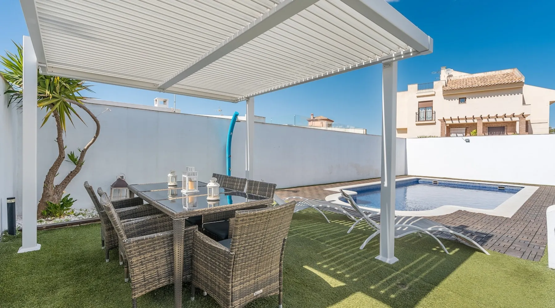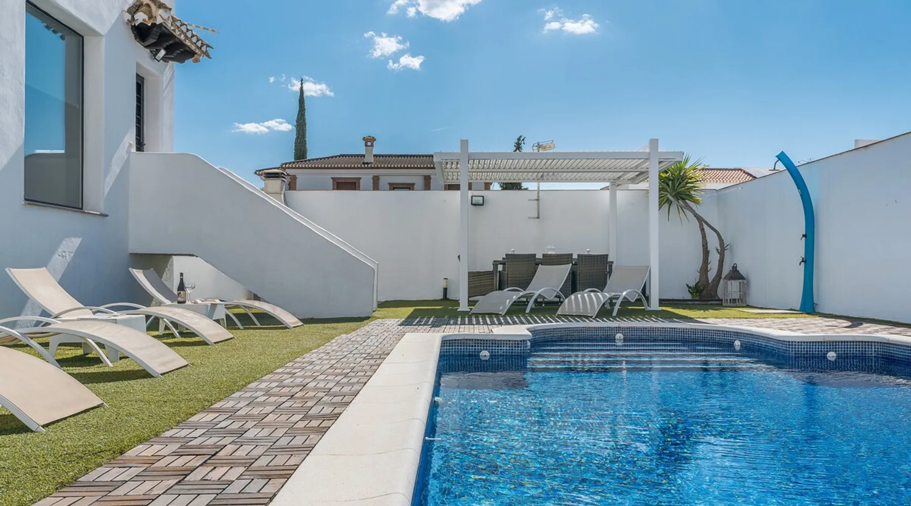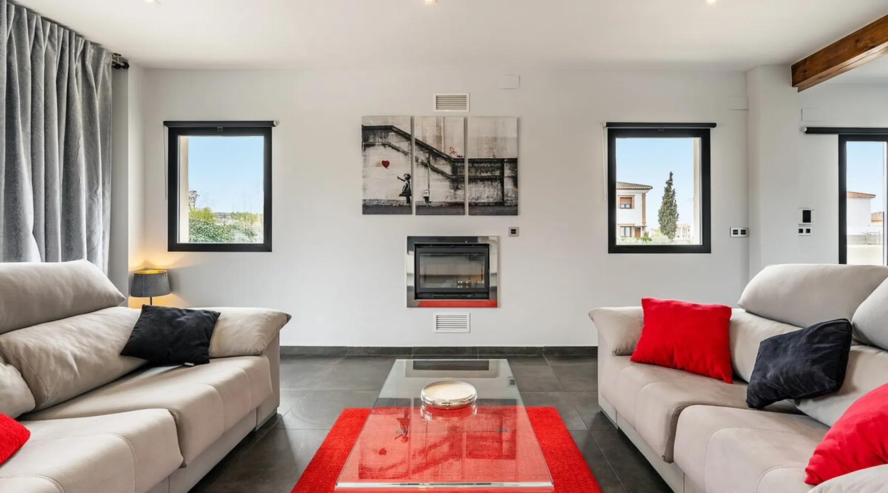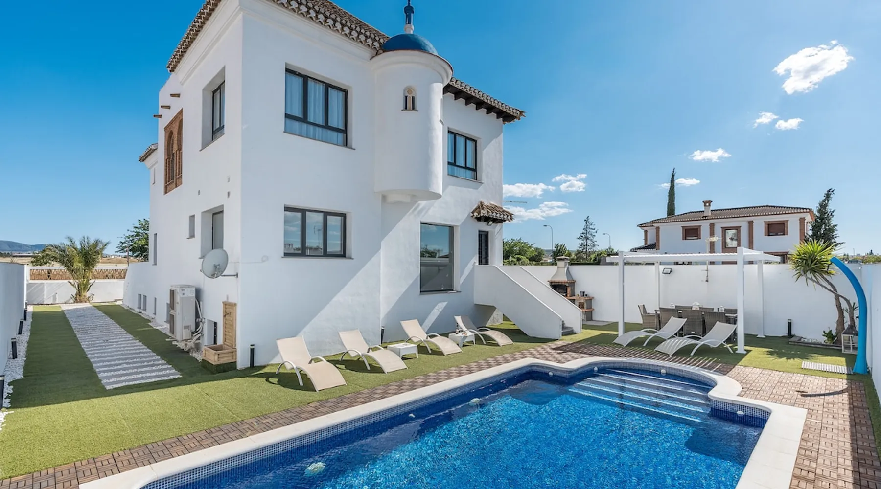 The villa "Valeria" is located in Las Gabias and overlooks the mountain. The 3-storey property consists of a living room, a fully-equipped kitchen, 3 bedrooms, 2 bathrooms and an additional toilet and can accommodate 6 people. On-site amenities include high-speed Wi-Fi (suitable for video calls), a TV, air conditioning, a washing machine, a dryer, a dishwasher and a capsule coffee machine. Other things to note This beautiful property has underfloor heating/cooling through an aerothermal system (ecological), which allows to keep the house at an ideal temperature all over the time, as it can radiate heat in winter and coolness in summer. A baby cot and a high chair are also available. The highlight of the villa is its well-equipped private outdoor area with a pool, an open terrace and a barbecue. The property is conveniently located 50 m from a McDonald's and approx. 100 m from a Lidl supermarket. The nearby area boasts views of Sierra Nevada. Public transport links are located within walking distance. 2 parking spaces are available on the property and 3 parking spaces are available in a garage. Families with children are welcome. Pets are not allowed. There are recording CCTV cameras at the entrance (inside and outside), in the kitchen and in the living room that are activated together with the house alarm. This property features energy-saving lighting. Please note that there may be governmental water regulations in place at the time of your visit, which may impact the use of the pool, garden watering or limit tap water usage. Regional license number:VFT/GR/06886 Registration Details Spain - National registration number ESFCTU0000180120006738240000000000000000VFT/GR/068867 Andalucia - Regional registration number VFT/GR/06886