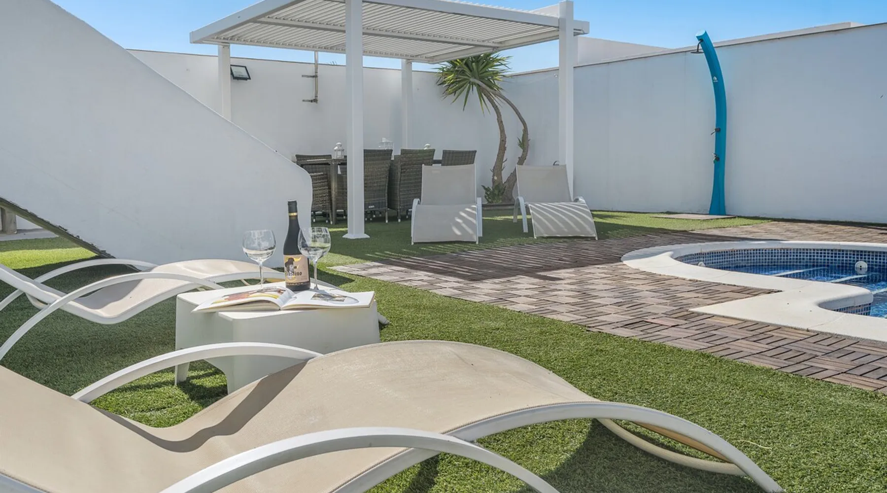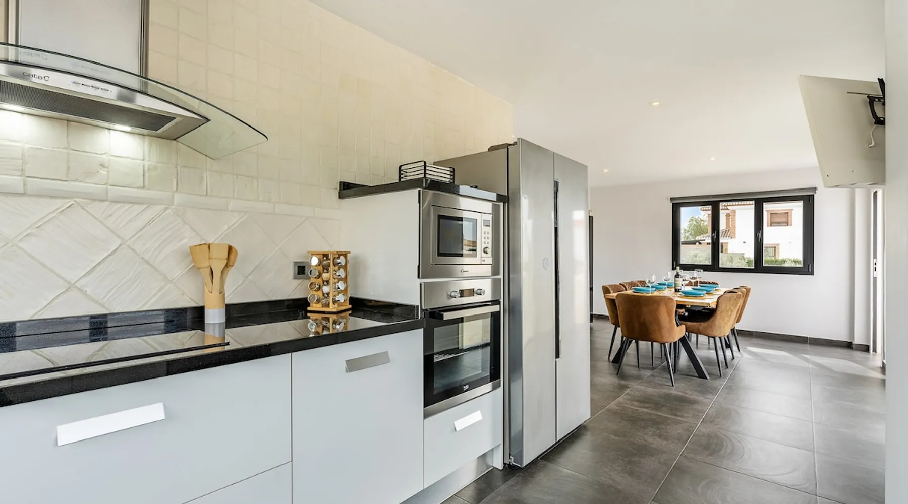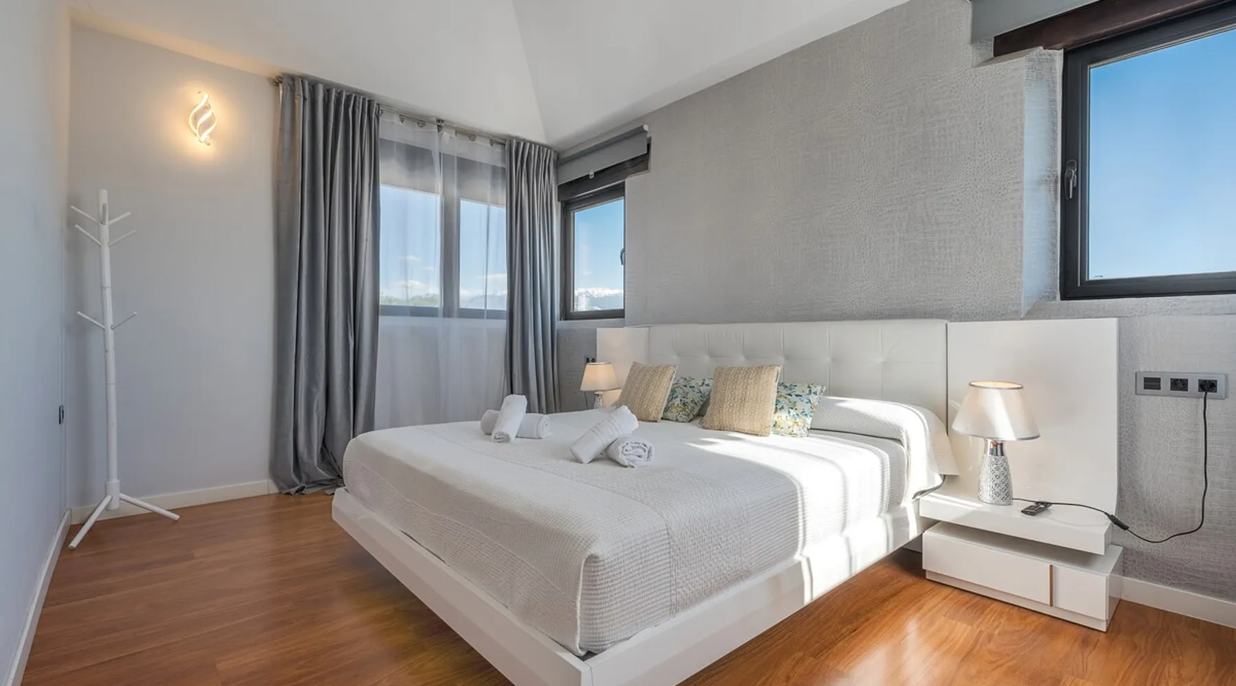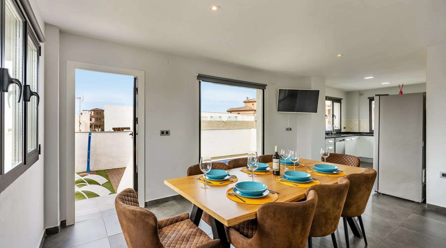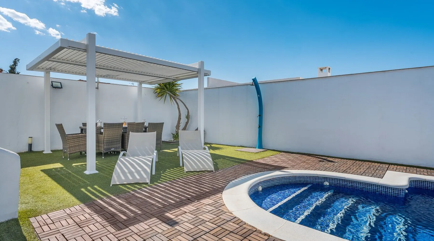 The villa "Valeria" is located in Las Gabias and overlooks the mountain. The 3-storey property consists of a living room, a fully-equipped kitchen, 3 bedrooms, 2 bathrooms and an additional toilet and can accommodate 6 people. On-site amenities include high-speed Wi-Fi (suitable for video calls), a TV, air conditioning, a washing machine, a dryer, a dishwasher and a capsule coffee machine. Other things to note This beautiful property has underfloor heating/cooling through an aerothermal system (ecological), which allows to keep the house at an ideal temperature all over the time, as it can radiate heat in winter and coolness in summer. A baby cot and a high chair are also available. The highlight of the villa is its well-equipped private outdoor area with a pool, an open terrace and a barbecue. The property is conveniently located 50 m from a McDonald's and approx. 100 m from a Lidl supermarket. The nearby area boasts views of Sierra Nevada. Public transport links are located within walking distance. 2 parking spaces are available on the property and 3 parking spaces are available in a garage. Families with children are welcome. Pets are not allowed. There are recording CCTV cameras at the entrance (inside and outside), in the kitchen and in the living room that are activated together with the house alarm. This property features energy-saving lighting. Please note that there may be governmental water regulations in place at the time of your visit, which may impact the use of the pool, garden watering or limit tap water usage. Regional license number:VFT/GR/06886 Registration Details Spain - National registration number ESFCTU0000180120006738240000000000000000VFT/GR/068867 Andalucia - Regional registration number VFT/GR/06886