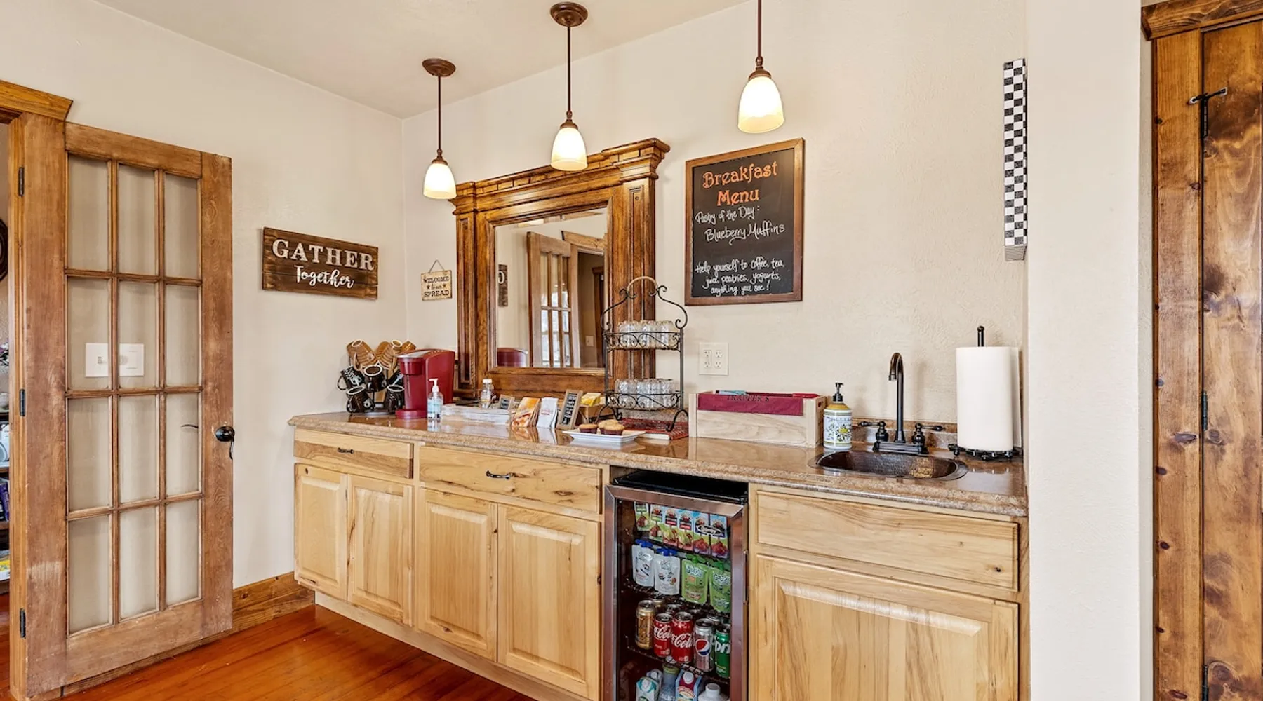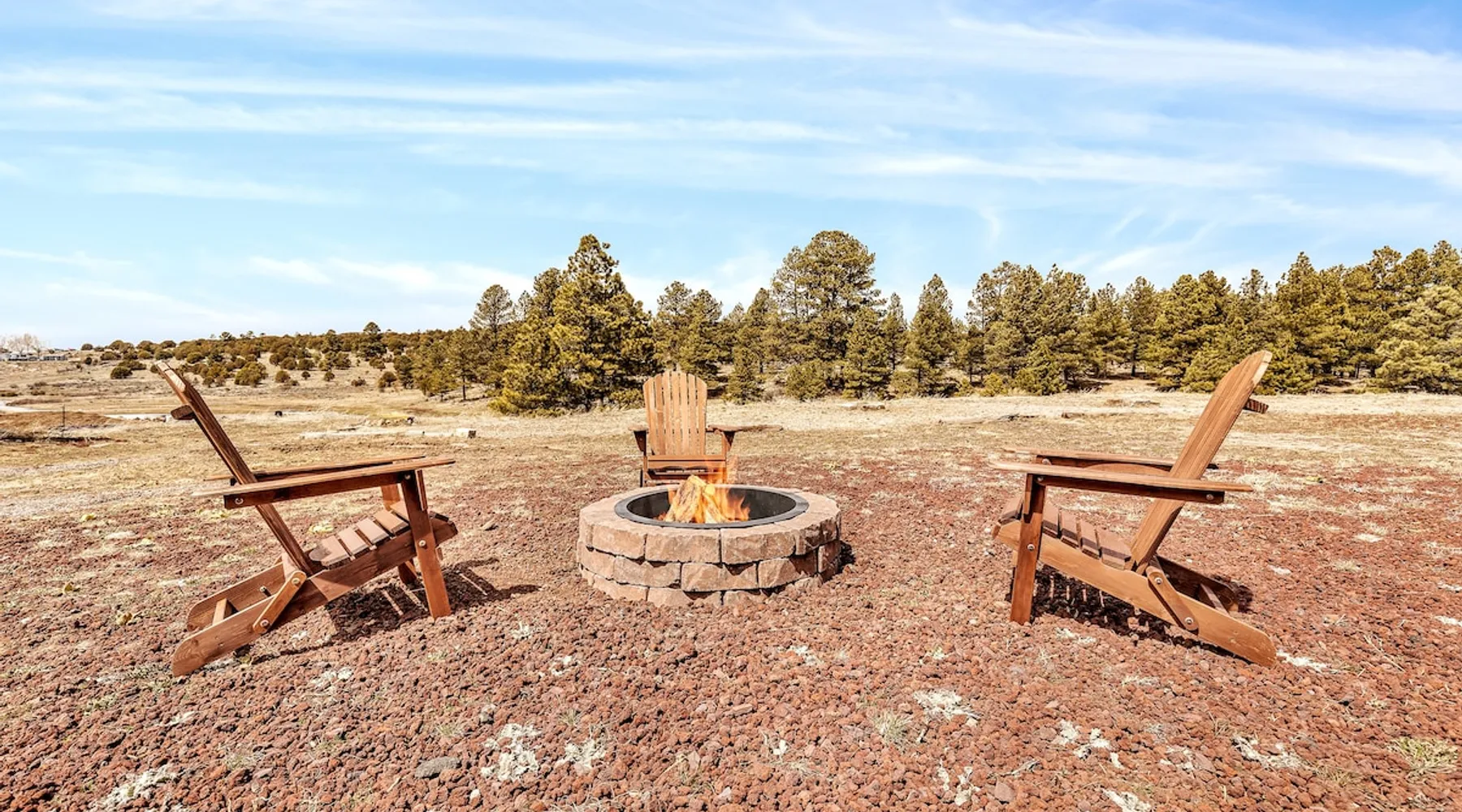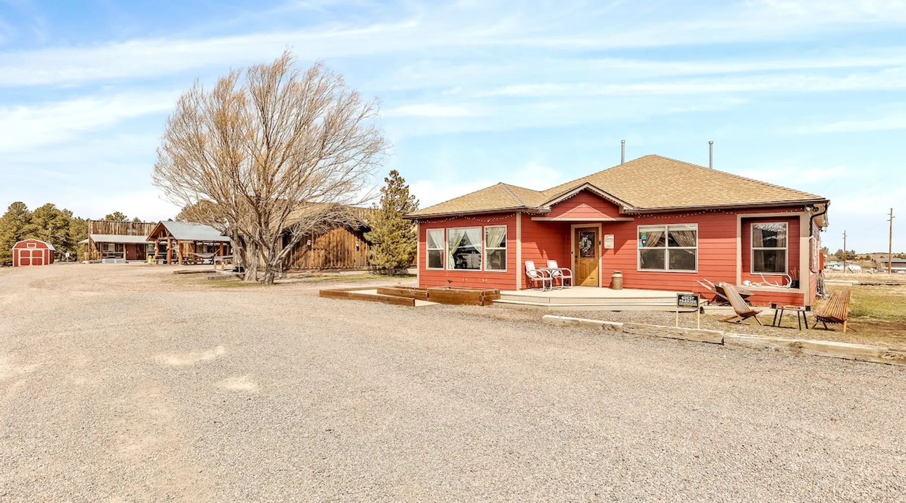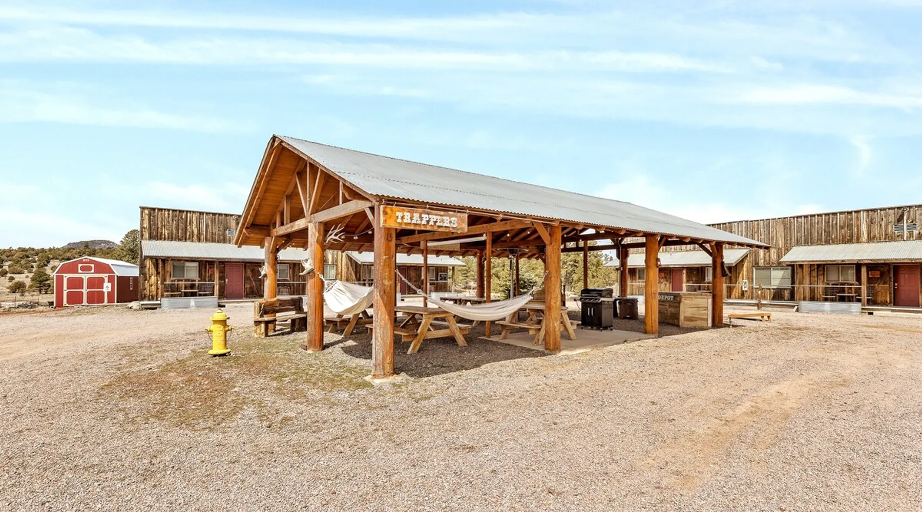 Welcome to our cozy Trapper's themed cabin in Williams, AZ! Perfectly located just a short distance from the historic Route 66 & DT Williams, this charming cabin is the perfect getaway for those looking to experience the beauty and culture of the American Southwest. With rustic décor and modern amenities, it's the perfect getaway. Relax in the cozy living room, enjoy the deck with mountain views, and explore the town's shops, restaurants, and attractions. Grab a smores kit and enjoy the fire pit The space The cabin features two queen comfortable beds in two separate rooms, soft linens, and ample storage space. The bathroom has a shower and tub combo, plenty of fresh towels, and we provide shampoo, conditioner, and soap bar. Smart TV and speediest wifi available in Williams available for guests to enjoy catching up on the latest shows. Pack and plays are available, but please let us know prior to checking in if you need a pack and play. There's also a mini fridge and coffee machine! We do offer breakfast baskets (locally made pastry, juice, fruit, and yogurt) and homemade hot breakfast (breakfast burrito with farm fresh eggs/ sweet berry Belgium waffles/ trapper's omelettes - guests LOVE the omelettes), please reach out before checking in for more info if you are interested! We require all breakfast orders to be placed by 8pm (evening prior)! Outside, you'll find a spacious deck with breathtaking views of the surrounding mountains and forests. It's the perfect private spot to enjoy your morning coffee or watch the sunset with a glass of wine. There's a beautiful pavilion with all guests to use a grill for cookouts, fire pits for roasting marshmallows and sharing stories under the stars. We also have hammocks and outdoor games available (cornhole, outdoor jenga, and more board games inside). Guest access Guests have full access to the Trapper's Cabin, the outdoor common space as well as the indoor common space featuring a dining room with various refreshments for all. Other things to note No smoking or vaping inside No loud music, loud parties or events are allowed Please clean up after use the common areas Please note that this unit is behind the front office of Trapper's Rendezvous - you usually will not hear any sounds but may hear some sounds from the front unit