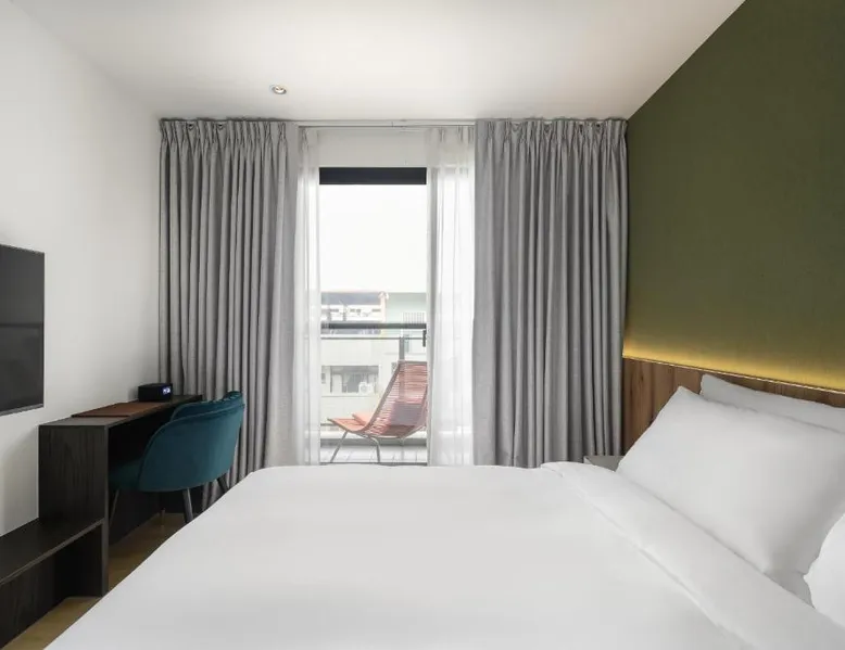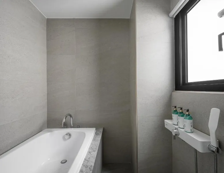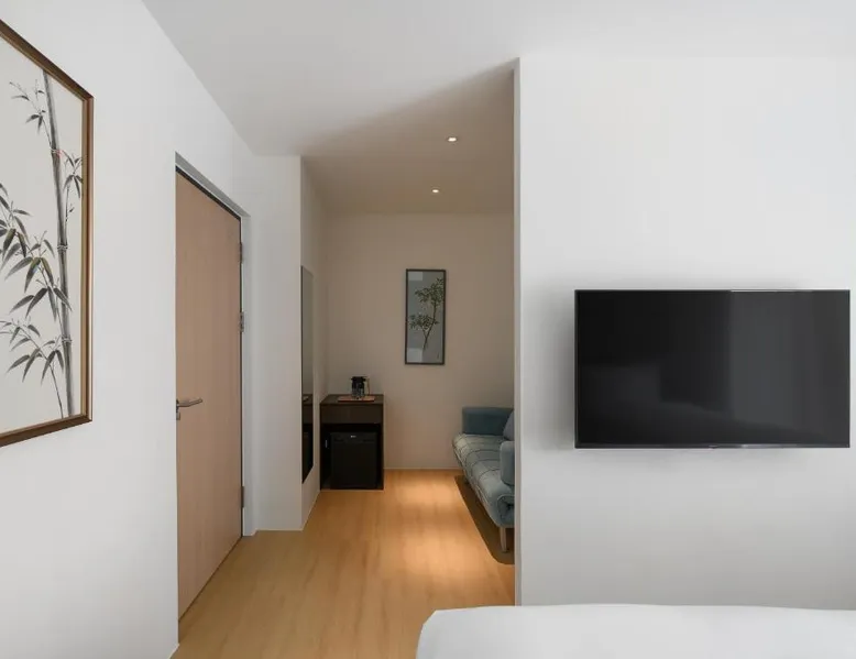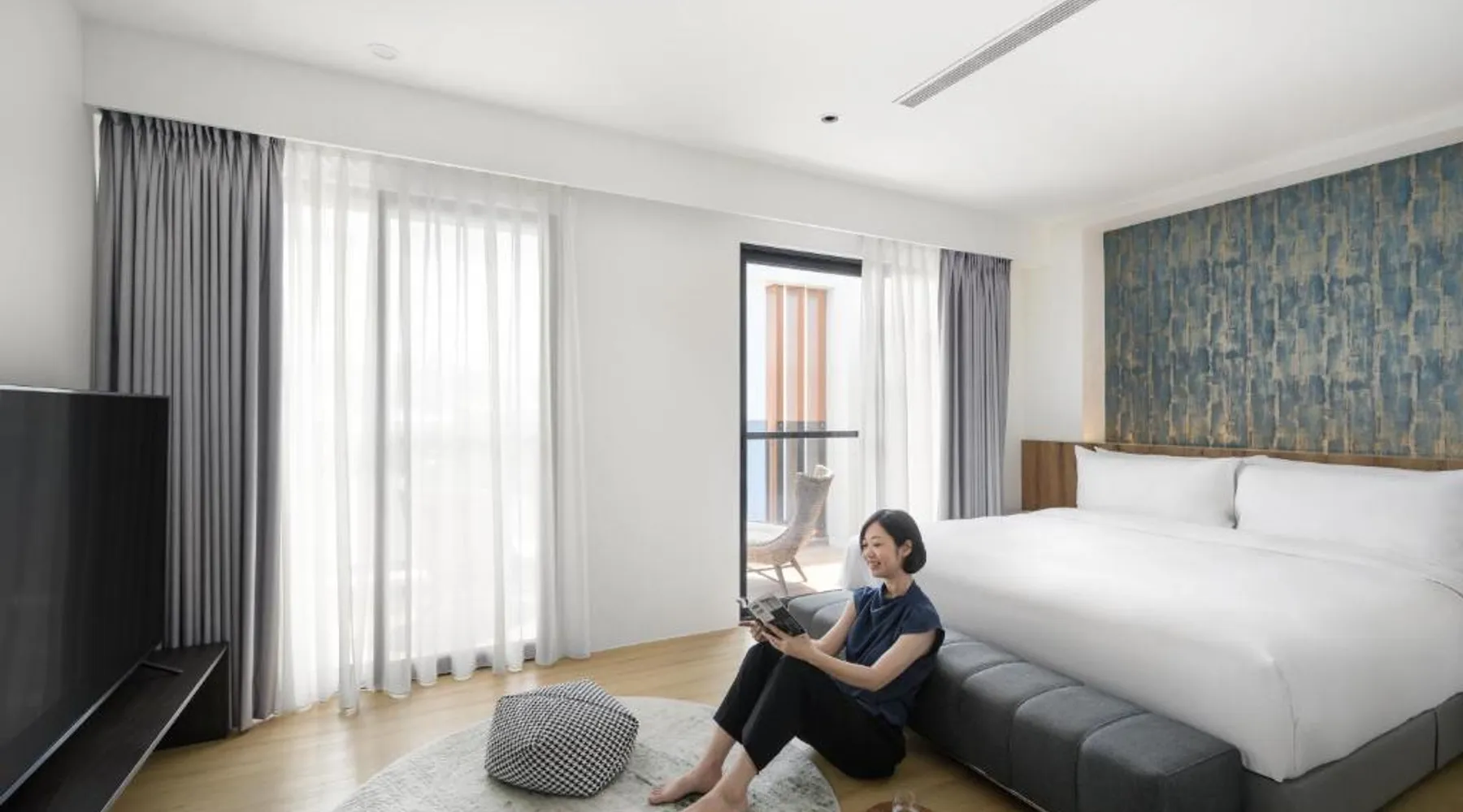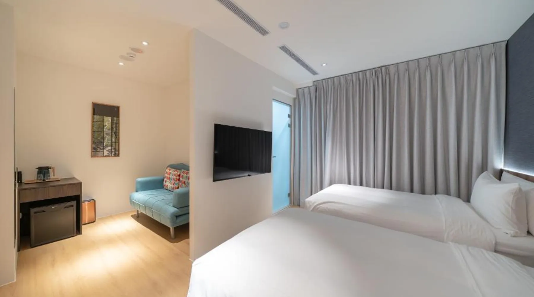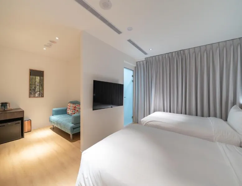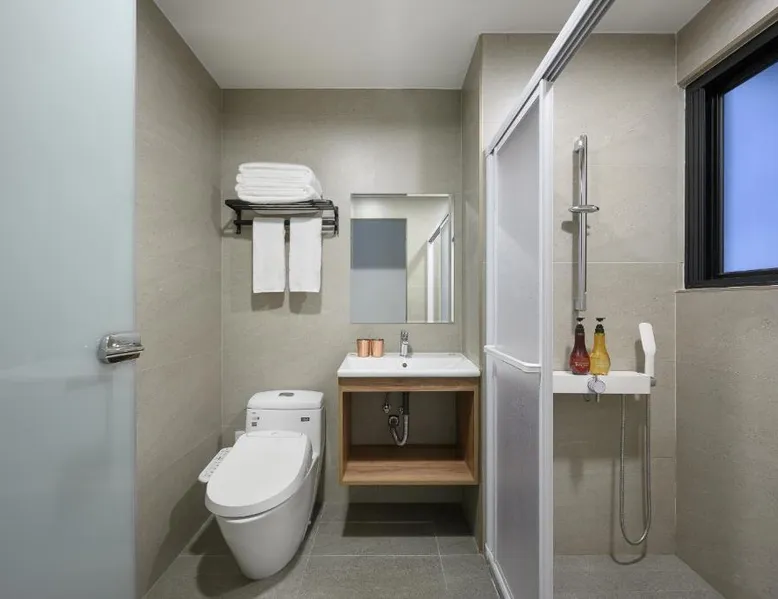 Comfortable Accommodations: 禾淞津別邸 Kashotsu Bettei in Taichung offers a homestay with free WiFi, air-conditioning, and private bathrooms. Each room includes a bidet, shower, hairdryer, TV, soundproofing, and a work desk. Convenient Facilities: Guests benefit from a elevator, luggage storage, and a buffet breakfast with fruits. Additional amenities include a terrace, balcony, sofa bed, refrigerator, and soundproofing. Prime Location: Located 8.1 mi from Taichung International Airport, the homestay is near Kuangsan SOGO Dept. Store (15-minute walk), National Museum of Natural Science (1.2 mi), and National Taichung Theater (18-minute walk). Hiking trails are available in the surroundings. Guest Satisfaction: Highly rated for room comfort, staff support, and bed comfort. The double room provides air conditioning, soundproof walls, as well as a private bathroom featuring a bath and a shower. This double room features heating, a flat-screen TV and a terrace. The unit offers 1 bed.