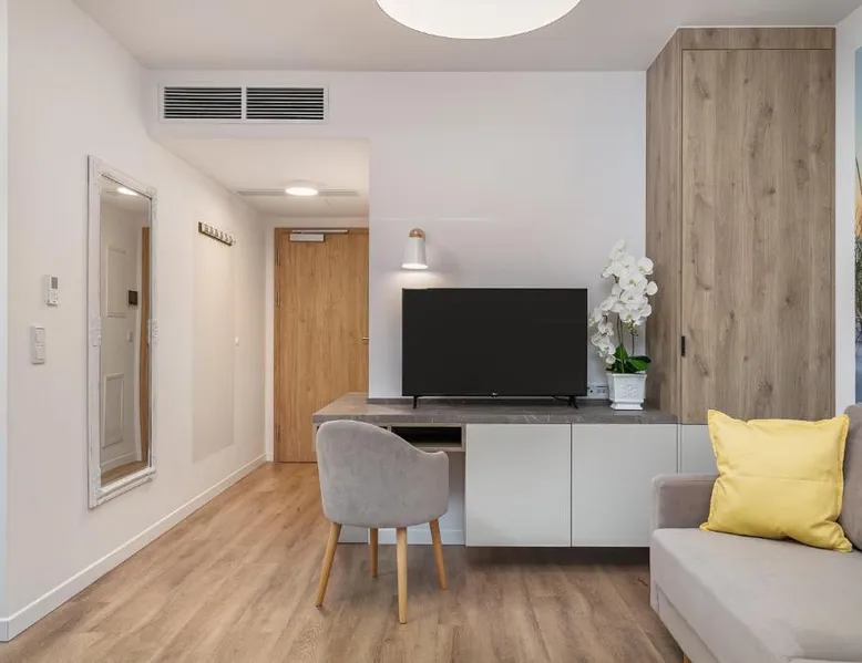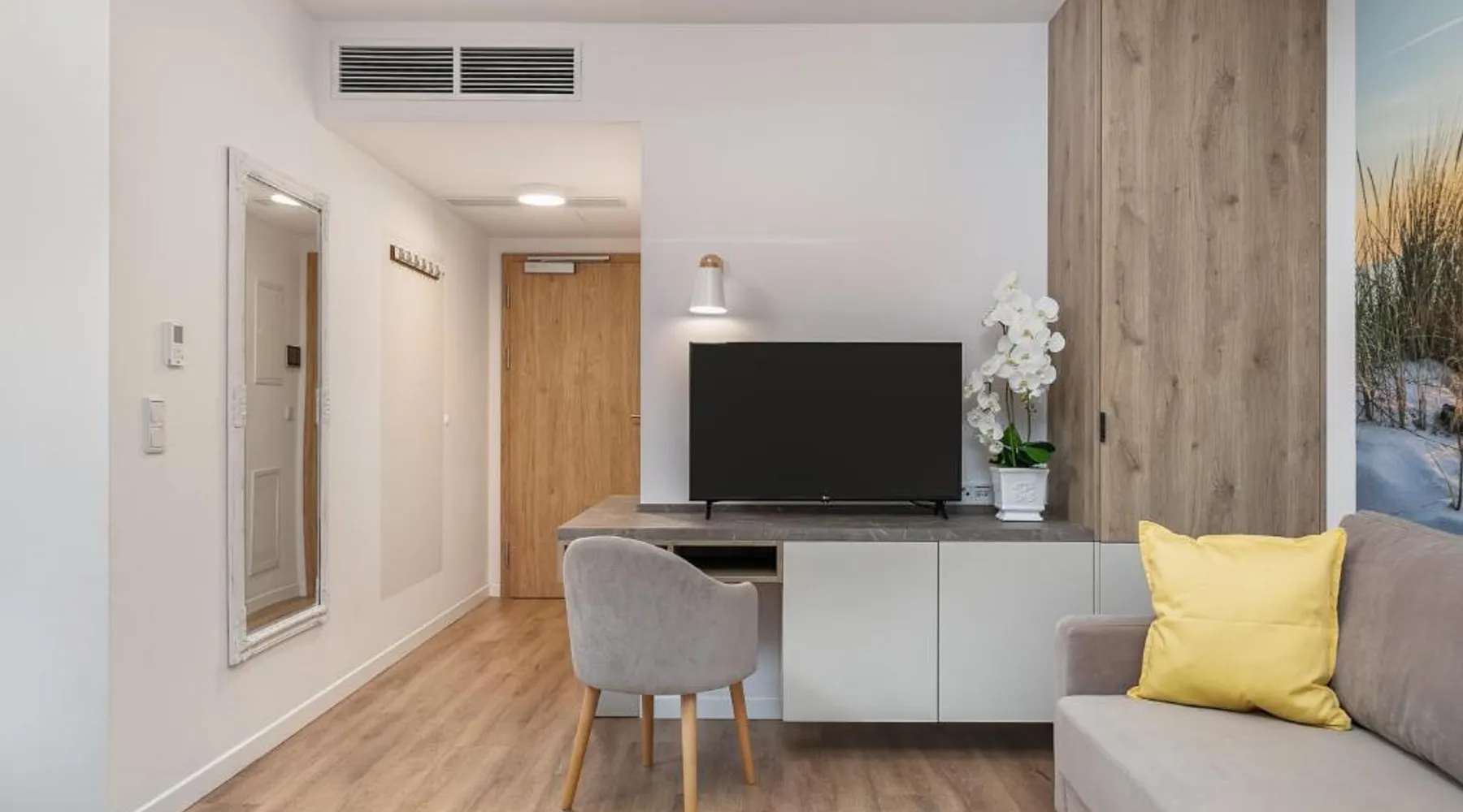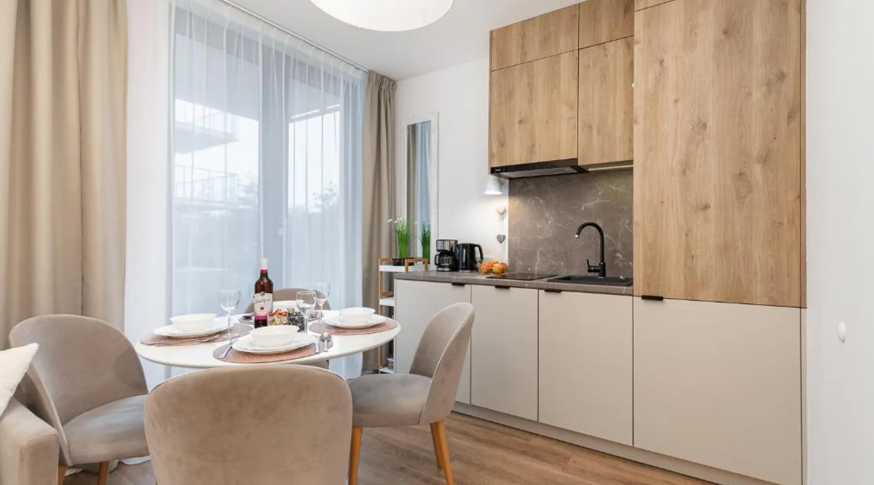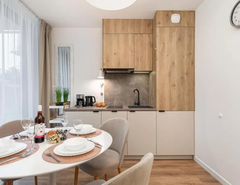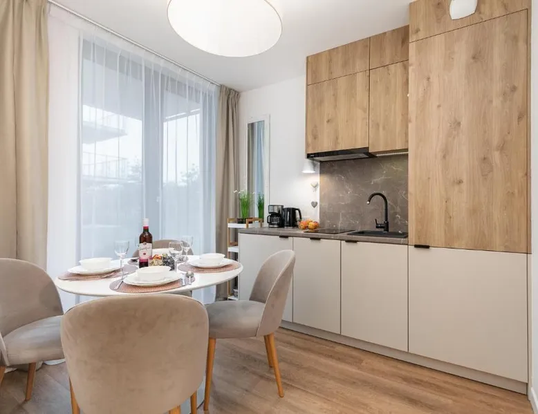 Beachfront Location: Mielno Jantaris- Apartament B3- przy plaży in Mielno offers direct beachfront access, a lush garden, and a spacious terrace. Guests can relax by the shore and enjoy stunning garden views. Comfortable Amenities: The apartment features air-conditioning, a fully equipped kitchenette, and a private bathroom with a walk-in shower. Additional amenities include a washing machine, dishwasher, and free WiFi throughout the property. Convenient Services: Private check-in and check-out services, a elevator, indoor play area, laundry service, and free on-site parking ensure a comfortable stay. The property is highly rated by guests for its excellent facilities and services. Local Attractions: Mielno Beach is just a few steps away, while Friendship Promenade lies 1640 feet nearby. Solidarity Szczecin-Goleniów Airport is 86 mi from the apartment, providing easy access for travelers. Meals can be prepared in the kitchenette, which comes with a stovetop, a refrigerator, a dishwasher and kitchenware. The studio provides air conditioning, a washing machine, a terrace with garden views as well as a private bathroom featuring a walk-in shower. The unit offers 2 beds.