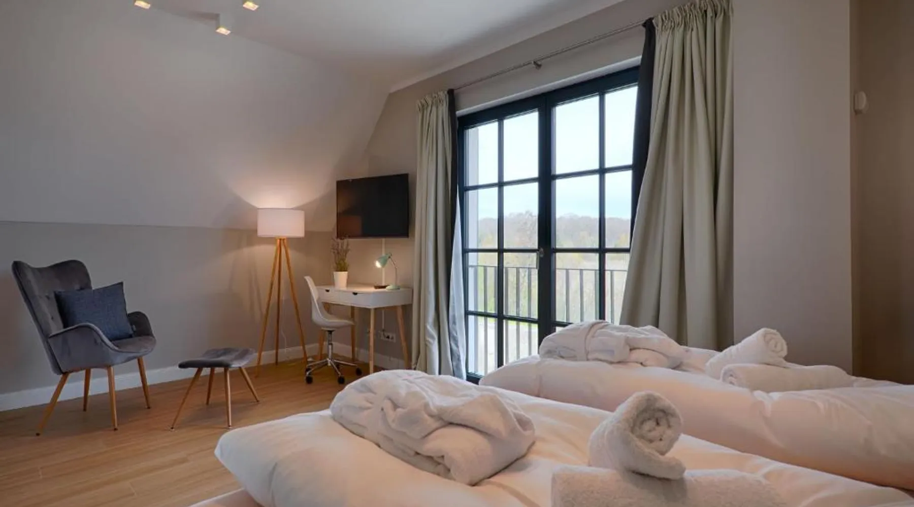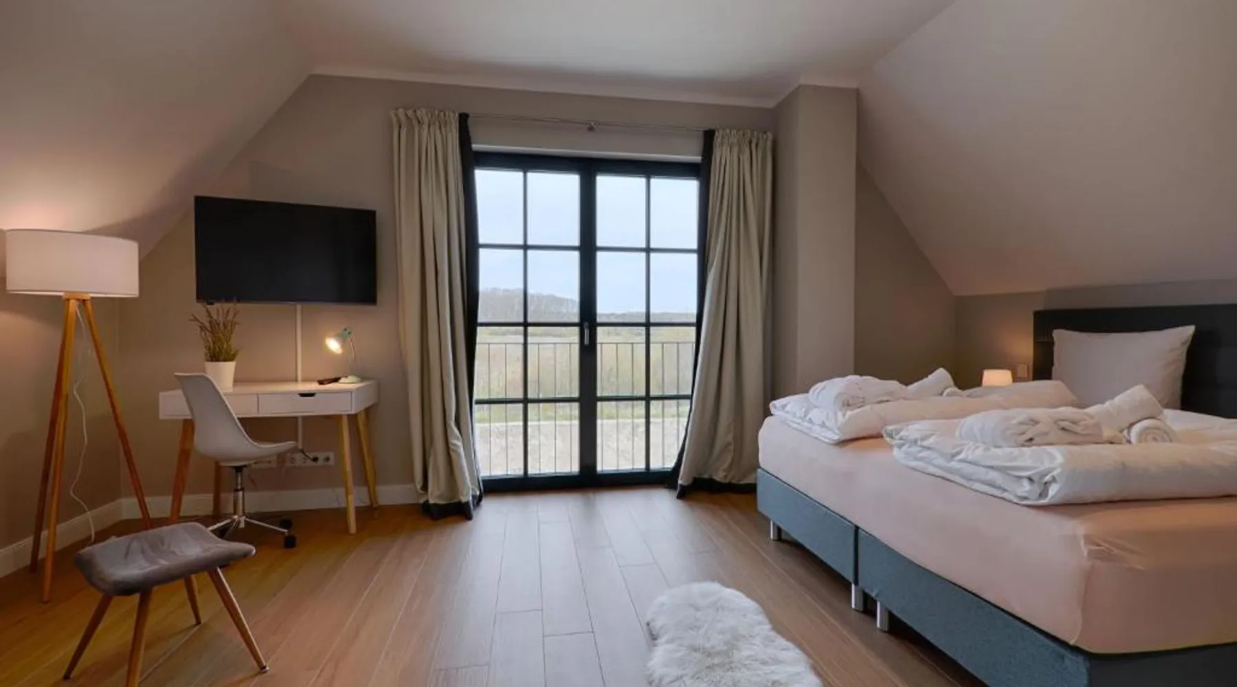 Spacious Accommodations: Reetland am Meer in Dranske offers a spacious holiday home with three bedrooms. The property features a fully equipped kitchen, private bathrooms, and a cozy living area. Wellness and Leisure: Guests can enjoy a sauna, heated pool, and fitness room. The outdoor terrace includes a sun terrace and barbecue area, while the indoor play area provides entertainment for children. Convenient Location: Located 9 minutes from Northwest shore Wittow and Kreptitzer Heide Beach, the property is 9.3 mi from Cape Arkona and 21 mi from National Park Center Koenigsstuhl. Free WiFi is available throughout the stay. Highly Rated by Guests: Reetland am Meer receives high ratings for its spaciousness, excellent facilities, and proximity to attractions. The sauna and fireplace are the standout features of this holiday home. Guests will find a stovetop, a refrigerator, a dishwasher and kitchenware in the well-fitted kitchen. The holiday home also comes with a barbecue. A seating area with a flat-screen TV, a desk, a terrace and a private bathroom are available in this spacious holiday home. The unit has 3 beds.