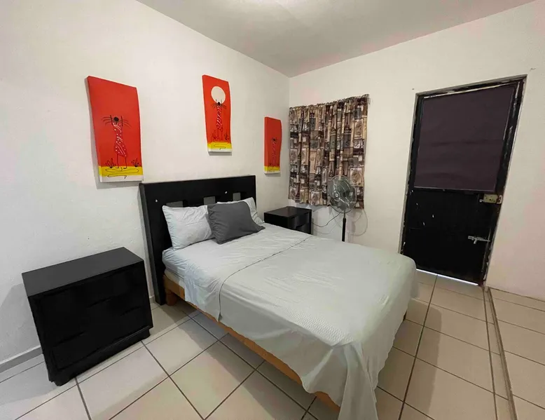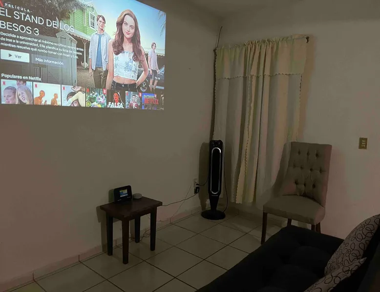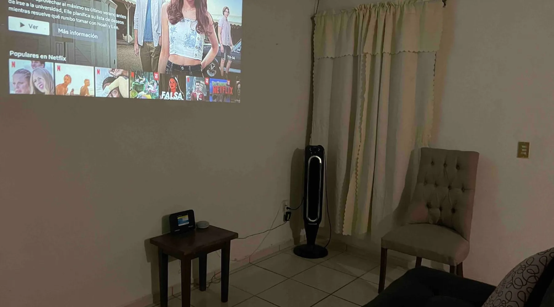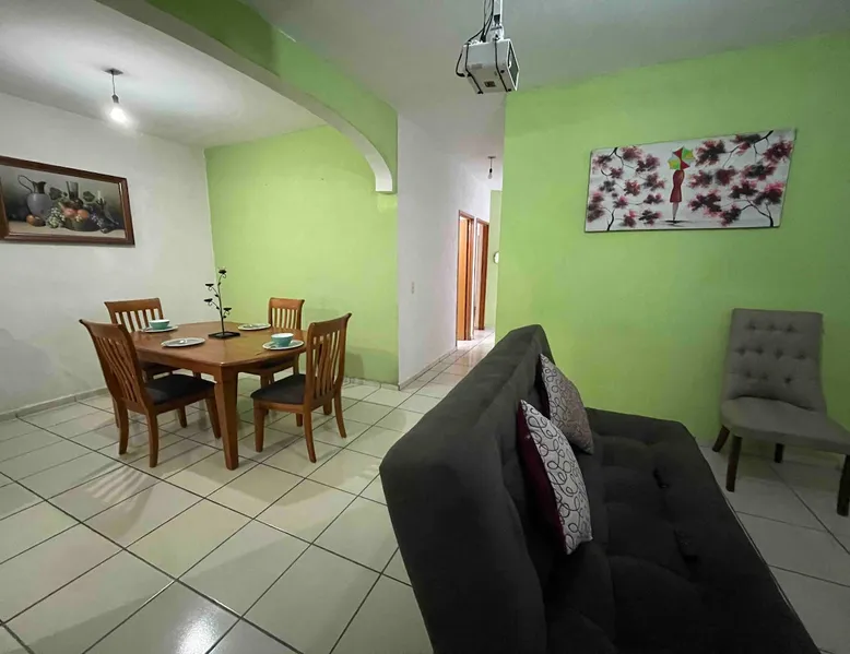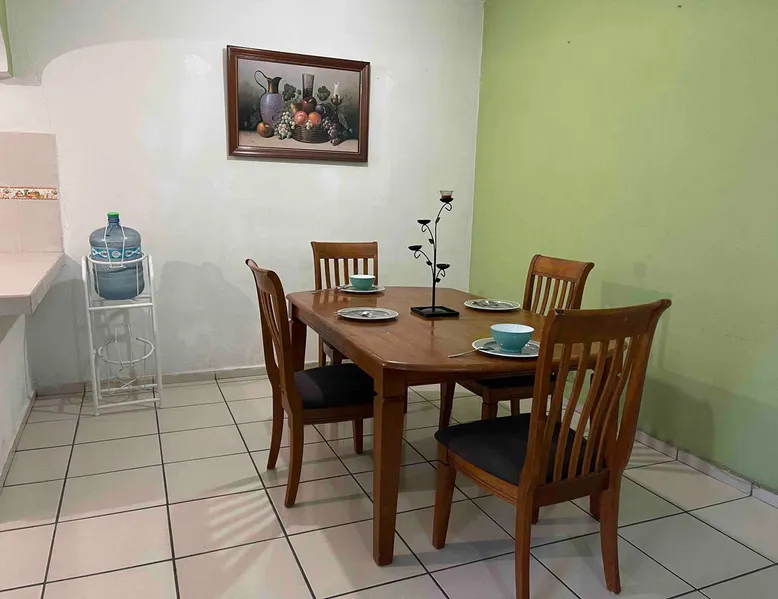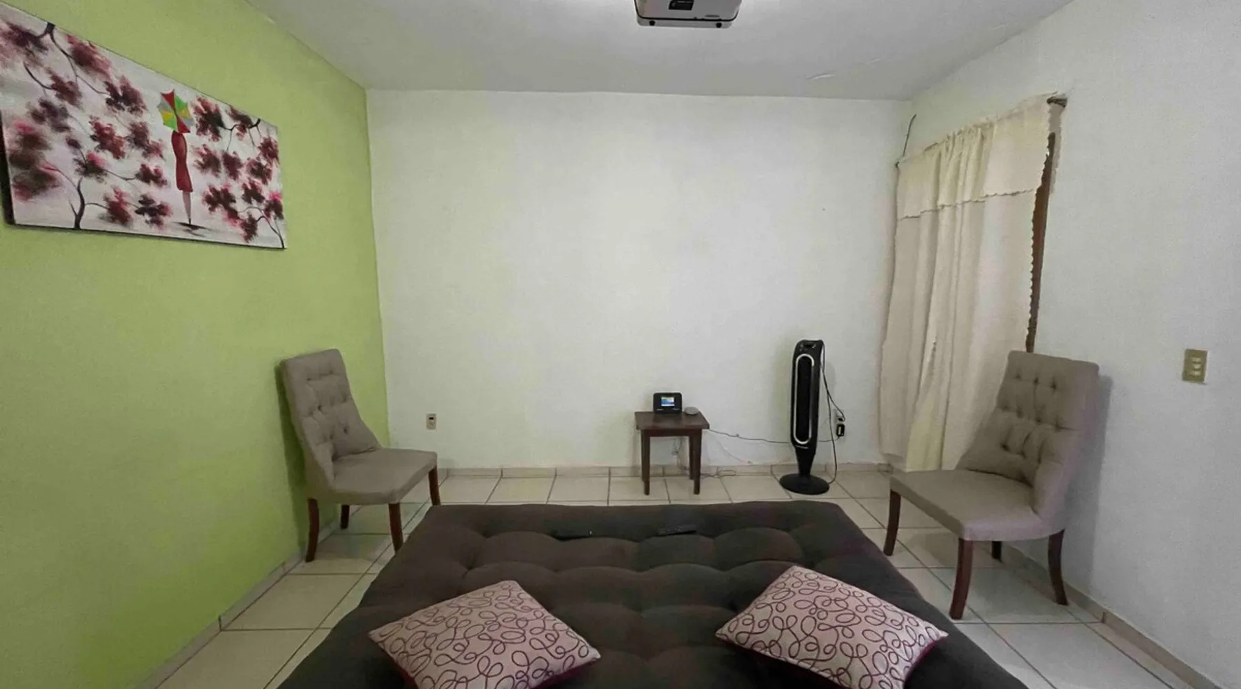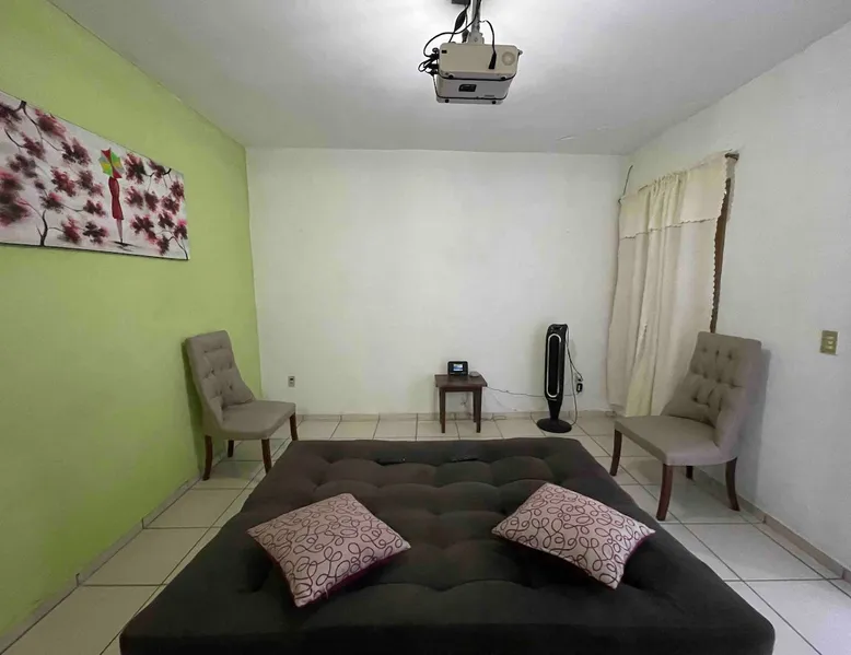 Enjoy this magnificent house located in one of the best areas of Villa de Álvarez, close to self-service shops, close to supermarkets, close to main roads which can take you anywhere from one place to another, also enjoy a magnificent home theater with downloaded apps so you can enjoy the best of the web. Just one block away you will find a nice park with children's area and green areas, where they can also enjoy with their pets. The space The house has two single rooms, each with a double bed. In addition, in the living room there is a sofa bed, a screen system by projector, with an image of up to 70 inches. The kitchen has very basic utensils. Guest access There are two patios, one in front of the house and the other in the back. Access is very convenient since it is located near main avenues and roads. Other things to note The house is located near main avenues, which is why you can move easily and enjoy the pleasures of Colima, from the sea to the mountain