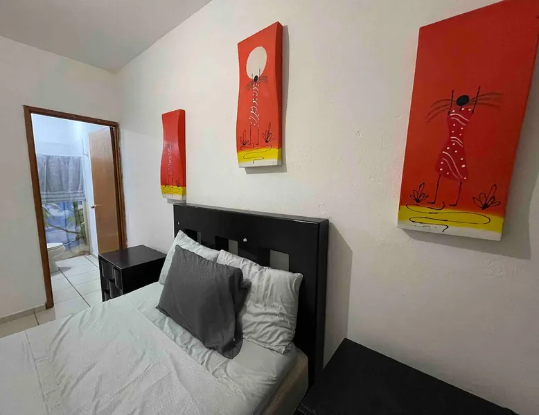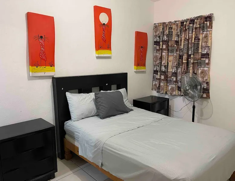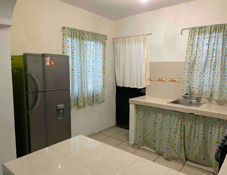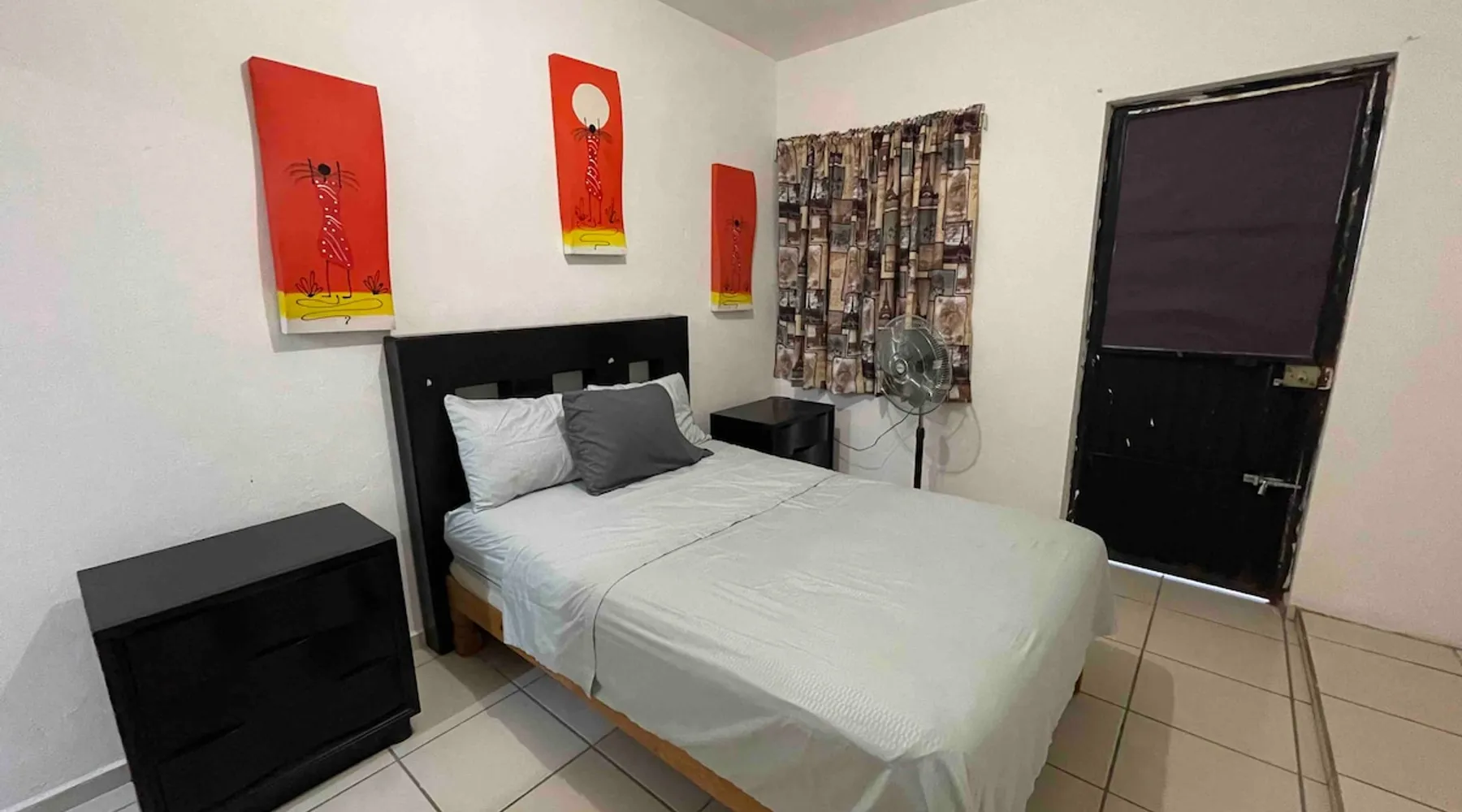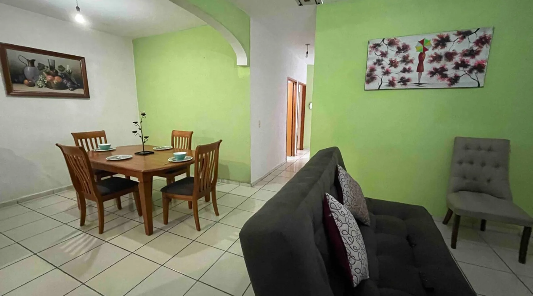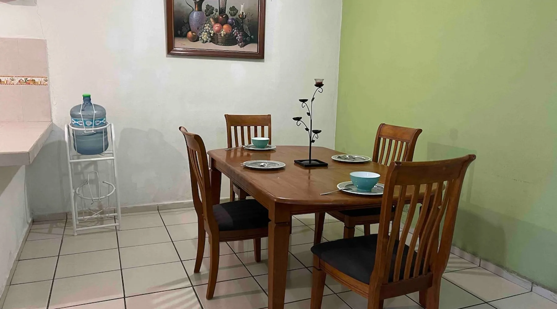 Enjoy this magnificent house located in one of the best areas of Villa de Álvarez, close to self-service shops, close to supermarkets, close to main roads which can take you anywhere from one place to another, also enjoy a magnificent home theater with downloaded apps so you can enjoy the best of the web. Just one block away you will find a nice park with children's area and green areas, where they can also enjoy with their pets. The space The house has two single rooms, each with a double bed. In addition, in the living room there is a sofa bed, a screen system by projector, with an image of up to 70 inches. The kitchen has very basic utensils. Guest access There are two patios, one in front of the house and the other in the back. Access is very convenient since it is located near main avenues and roads. Other things to note The house is located near main avenues, which is why you can move easily and enjoy the pleasures of Colima, from the sea to the mountain