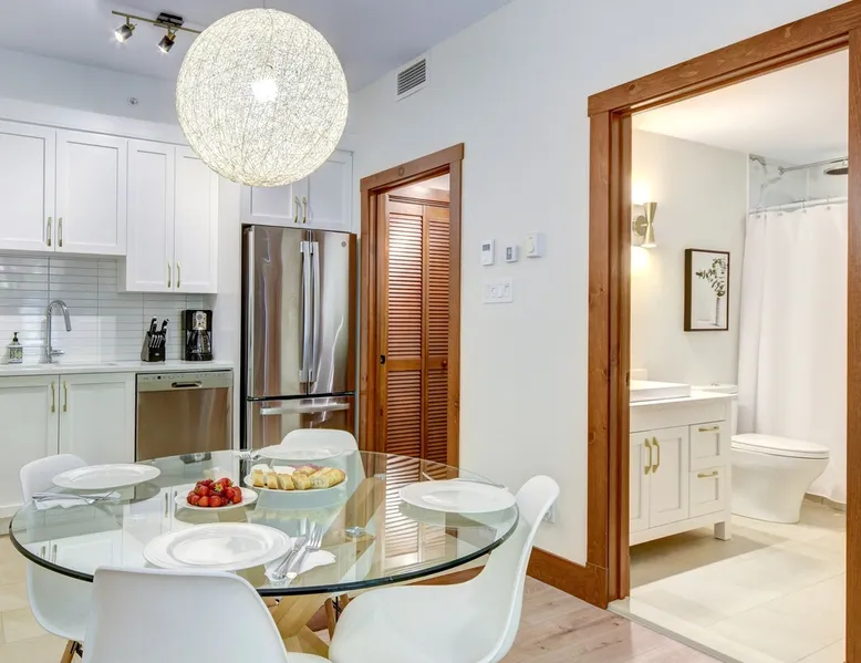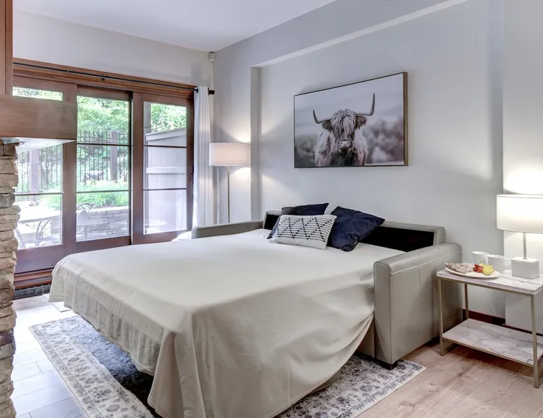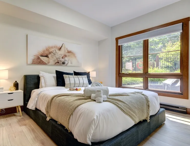 Charming condo located at the foot of the slopes of Mont Tremblant. True ski in / ski out, at a stone's throw from the Soleil chairlift !!! You will be charmed by its comfort to relax near the fireplace or in the hot tub after a day of skiing. With a fully equipped kitchen, a bedroom with a comfortable queen size bed and a sofa bed in front of the fireplace, this condo can accommodate 4 people comfortably. Located a very short walk from the Mont-Tremblant Casino. EV Charger available on site! The space Modern condominium newly renovated, in a peaceful and quiet environment. At the foot of the slopes on the Versant Soleil. The orientation of the condo is towards the forest, pool and hot tub, for more tranquility and intimacy. The swimming pool and hot tub are located just a few steps from the condo patio door. The condo is a short walking distance from the free Casino shuttle service or to the Casino Express gondola, for easy access to the Versant Sud pedestrian village. Direct access to hiking, snowshoeing, alpine touring, cross country skiing, cycling and mountain biking trails. Wifi with unlimited internet and two smart TVs are included with streaming apps. Please note that Login credentials will not be provided for the streaming services as I have found most guests prefer to log into their own accounts anyways. EV Charger available on site (Eddie) inside the interior parking garage. CITQ#295079 Guest access A few days before your stay, you will be given instructions to get to the property and access the condo. the day of check-in, you will be provided with a personal code to enter the apartment that will be valid only for the duration of our stay. Other things to note The swimming pool is open during summer only and the hot tub is open during ski season and during summer. I cannot offer any refunds if the pool or hot tub are closed for any reason during your stay. Exceptionally the pool and/or hot tub could be closed for unexpected repairs, and I do not have control over this. Regular maintenance is planned to take place outside of the summer and ski seasons. Registration details Quebec – Registration number 295079, expires on 2026-12-20T00:00:00Z