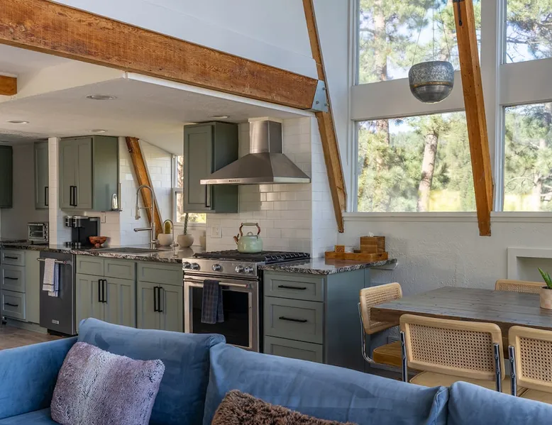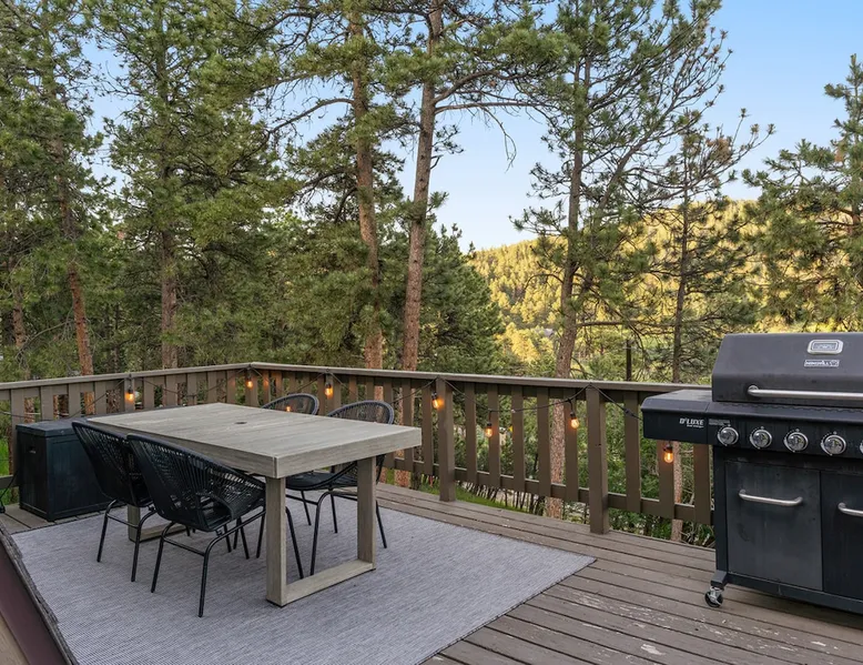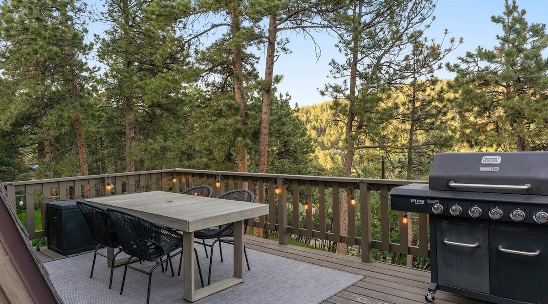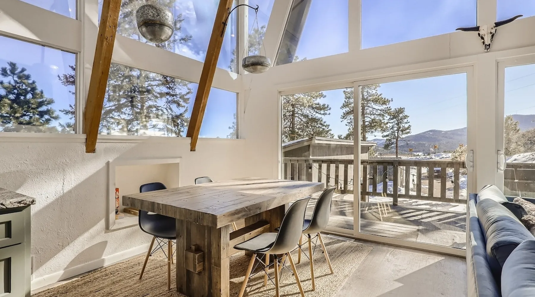 Escape to this dreamy remodeled A-frame surrounded by nature near hiking trails, Red Rocks, and Evergreen. Bask in natural light, luxury finishes, and serene outdoor spaces offering total privacy. Unwind with 3 king beds, two cozy living rooms with large smart TVs, and a stylish office space. Just 13 mins to Evergreen, 20 mins to Red Rocks, 35 mins to Denver, and under an hour to Echo or Loveland skiing. Your perfect mountain-modern haven awaits for work, rest, and unforgettable adventures. The space Welcome to our charming home nestled in the heart of the Rocky Mountains! This cozy retreat offers a perfect blend of comfort, convenience, and entertainment for your mountain getaway. As you step inside, you'll be greeted by vaulted ceilings and a warm and inviting atmosphere, with modern decor that reflects the beauty of the surrounding natural landscape. Bedrooms: three spacious bedrooms await you, each featuring luxurious king-sized beds adorned with plush bedding for a restful night's sleep. Large windows allow natural light to filter in, offering serene views of the forested surroundings. Bathrooms: Conveniently located on the main floor, you'll find one beautifully appointed bathroom, which is attached to the master bedroom, boasting a sleek design with a walk-in shower, modern fixtures, and ample counter space. The second bathroom offers a bathtub/shower combination and is easily accessible from the common areas and second bedroom. The third bathroom is located off the second living room on the ground floor with a walk in shower. Loft Area: Ascend the stairs to discover a charming loft area, perfect for leisure and entertainment. Here, you'll find a collection of board games invites friendly competition and laughter, creating unforgettable moments with family and friends. Additional Amenities: Fully Equipped Kitchen: Whip up delicious meals in the fully equipped kitchen, complete with modern appliances, cookware, and utensils. Whether you're preparing a hearty breakfast before hitting the trails or enjoying a cozy dinner by the fireplace, you'll find everything you need to satisfy your culinary cravings. Living Area: Unwind in the comfortable living area, featuring plush sofas and a cozy fireplace. Curl up with a good book, watch your favorite shows on the flat-screen TV, or simply enjoy the company of your loved ones in this inviting space. Conveniently located in the heart of the Rockies, our Airbnb home offers easy access to a variety of outdoor activities, including hiking, mountain biking, fishing, and skiing. Explore nearby trails, discover charming mountain towns, or simply immerse yourself in the tranquility of nature—all within reach from our cozy retreat. Experience the ultimate mountain getaway at our charming home—where comfort, convenience, and entertainment await you at every turn. Book your stay today and create unforgettable memories amidst the breathtaking beauty of the Rocky Mountains! Guest access You'll have full access to the entire property. Other things to note IMPORTANT: 4WD vehicles are strongly recommended in winter months. Our contract with the snow plowing company states that plows will be deployed only once 6” of snow has accumulated on the roads. We will not be able to send someone until then. Reservations may be subject to extra guest fees, as well as additional charges for optional services such as adding pets or requesting early check-ins.