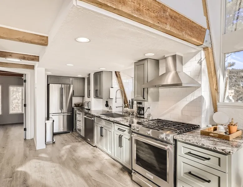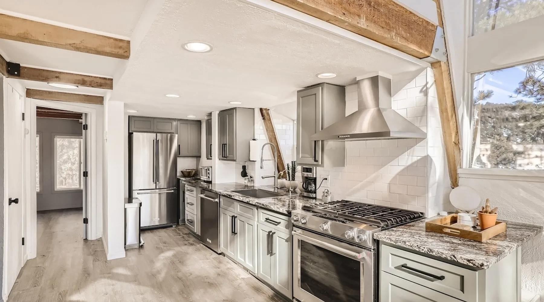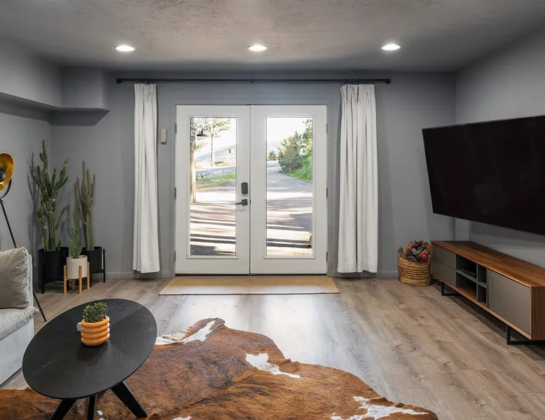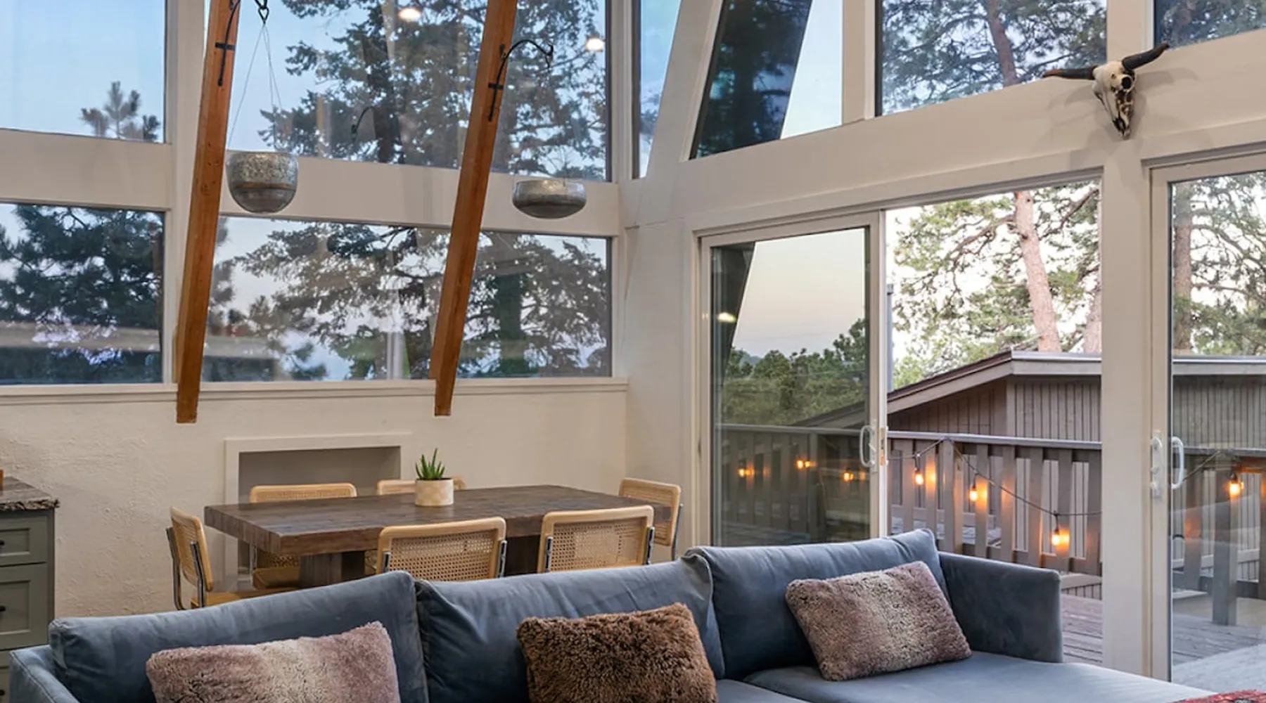Escape to this dreamy remodeled A-frame surrounded by nature near hiking trails, Red Rocks, and Evergreen. Bask in natural light, luxury finishes, and serene outdoor spaces offering total privacy. Unwind with 3 king beds, two cozy living rooms with large smart TVs, and a stylish office space. Just 13 mins to Evergreen, 20 mins to Red Rocks, 35 mins to Denver, and under an hour to Echo or Loveland skiing. Your perfect mountain-modern haven awaits for work, rest, and unforgettable adventures. The space Welcome to our charming home nestled in the heart of the Rocky Mountains! This cozy retreat offers a perfect blend of comfort, convenience, and entertainment for your mountain getaway. As you step inside, you'll be greeted by vaulted ceilings and a warm and inviting atmosphere, with modern decor that reflects the beauty of the surrounding natural landscape. Bedrooms: three spacious bedrooms await you, each featuring luxurious king-sized beds adorned with plush bedding for a restful night's sleep. Large windows allow natural light to filter in, offering serene views of the forested surroundings. Bathrooms: Conveniently located on the main floor, you'll find one beautifully appointed bathroom, which is attached to the master bedroom, boasting a sleek design with a walk-in shower, modern fixtures, and ample counter space. The second bathroom offers a bathtub/shower combination and is easily accessible from the common areas and second bedroom. The third bathroom is located off the second living room on the ground floor with a walk in shower. Loft Area: Ascend the stairs to discover a charming loft area, perfect for leisure and entertainment. Here, you'll find a collection of board games invites friendly competition and laughter, creating unforgettable moments with family and friends. Additional Amenities: Fully Equipped Kitchen: Whip up delicious meals in the fully equipped kitchen, complete with modern appliances, cookware, and utensils. Whether you're preparing a hearty breakfast before hitting the trails or enjoying a cozy dinner by the fireplace, you'll find everything you need to satisfy your culinary cravings. Living Area: Unwind in the comfortable living area, featuring plush sofas and a cozy fireplace. Curl up with a good book, watch your favorite shows on the flat-screen TV, or simply enjoy the company of your loved ones in this inviting space. Conveniently located in the heart of the Rockies, our Airbnb home offers easy access to a variety of outdoor activities, including hiking, mountain biking, fishing, and skiing. Explore nearby trails, discover charming mountain towns, or simply immerse yourself in the tranquility of nature—all within reach from our cozy retreat. Experience the ultimate mountain getaway at our charming home—where comfort, convenience, and entertainment await you at every turn. Book your stay today and create unforgettable memories amidst the breathtaking beauty of the Rocky Mountains! Guest access You'll have full access to the entire property. Other things to note IMPORTANT: 4WD vehicles are strongly recommended in winter months. Our contract with the snow plowing company states that plows will be deployed only once 6” of snow has accumulated on the roads. We will not be able to send someone until then. Reservations may be subject to extra guest fees, as well as additional charges for optional services such as adding pets or requesting early check-ins.