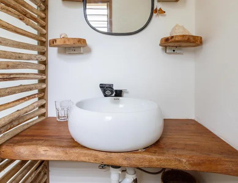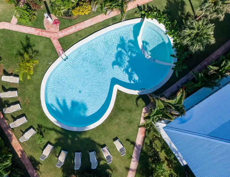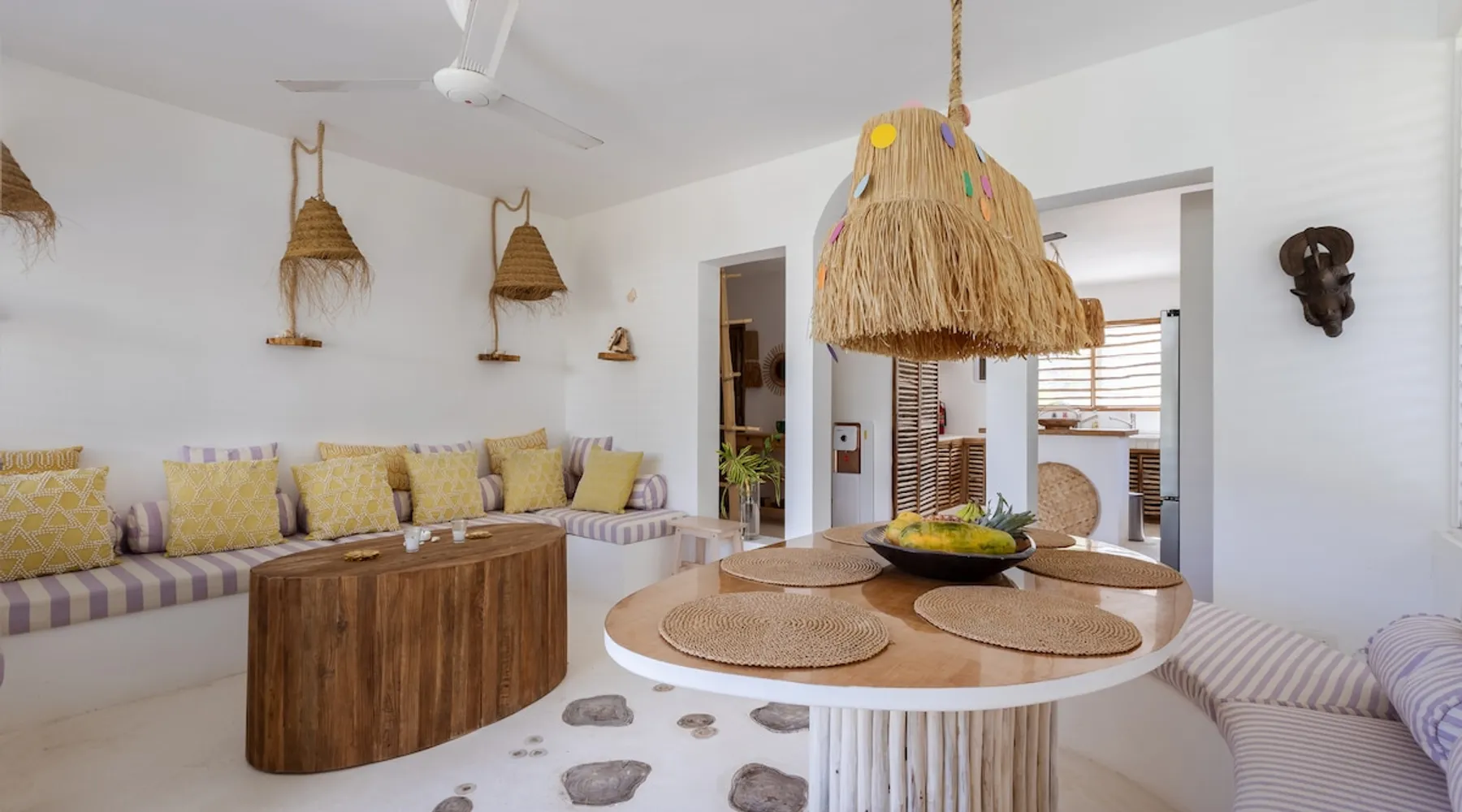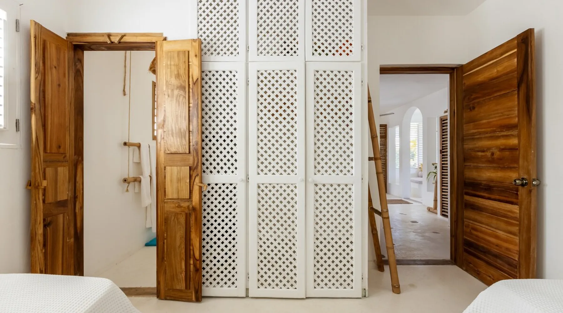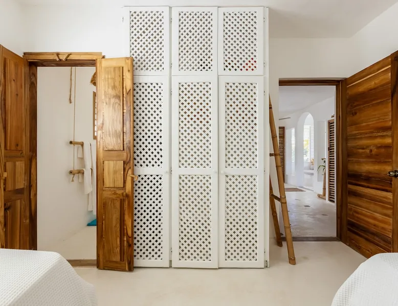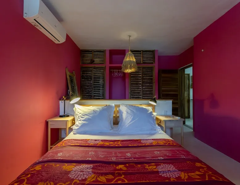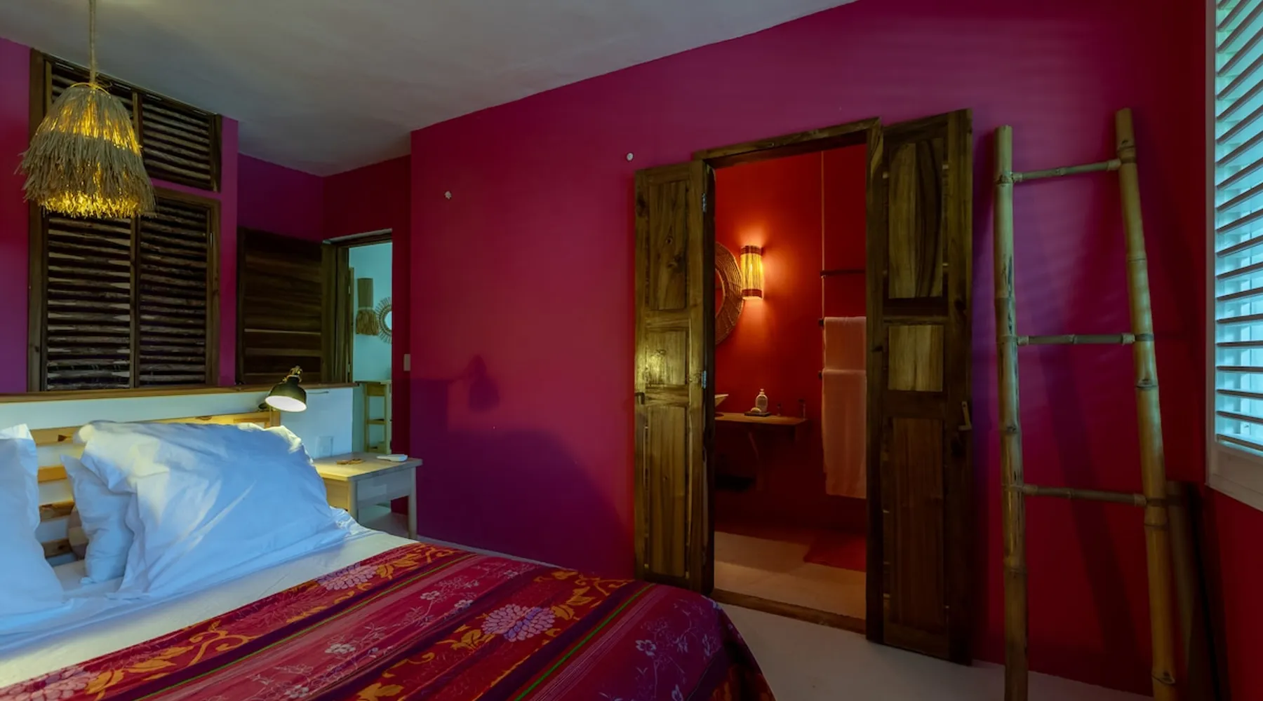 A charming 2 double bedroom apartment on the first floor of a typical Creole-style building, set in beautiful gardens with a swimming pool and 70 meters from the sea. This apartment is located in Las Gaviotas Residences in Las Terrenas, on Playa Bonita, one of the most beautiful beaches on the island and one of the few sites with direct access to the sea with no roads to cross. Fiber-optic Internet installed November 2023! The space ENTIRELY RENOVATED SPRING 2023 This ground level boho-chic apartment in a 15 unit quaint beachfront complex consists of a sitting area, a dining area seating 6 people, a fully equipped large kitchen with an island, a guest WC, a master bedroom with ensuite shower room with WC, a second bedroom with ensuite shower room. Plenty of cupboards, wardrobes and storage throughout. The kitchen is well equipped with full amenities including new appliances. Fiber optic internet was recently installed (November 2023) The apartment is fitted with plantation shutters lined with mosquito fabric. Air conditioning in both bedrooms and ceiling fans in all rooms. The master bedroom which faces the sea is furnished with a double bed 150cm wide from which you can be lulled to sleep by the sound of the waves. The second bedroom is furnished by 2 large single beds 100cm. A selection of pillows is available. Sheets are cotton. Both bedrooms have good reading lights and spacious wardrobes. Other things to note Electricity consumption is included in our prices. Fiber optic internet installed.