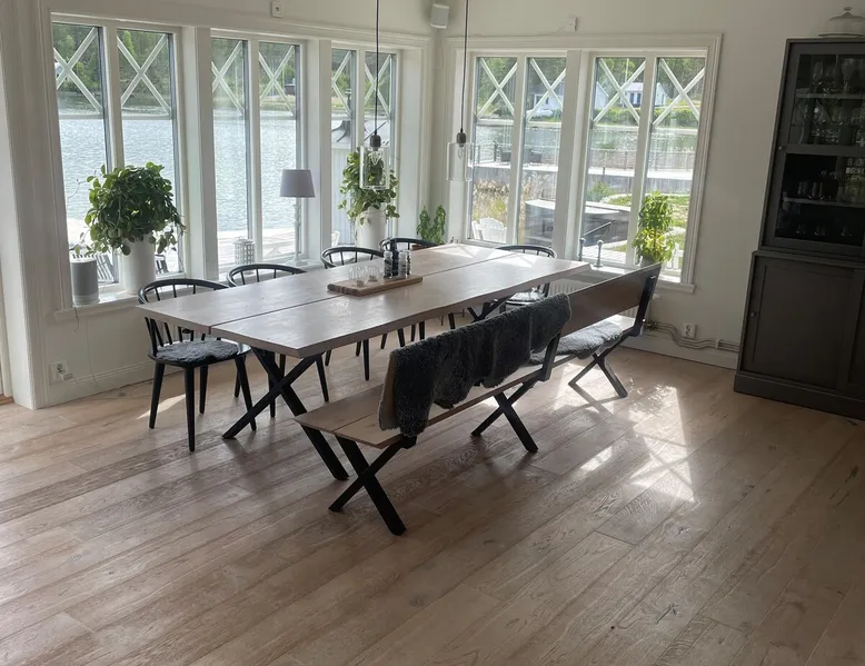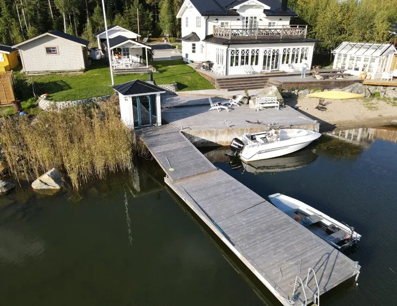 Spacious house with room for many. The house consists of 6 beds (180 cm, 2 120 cm, 3 x 90 cm) guest cottage consists of a bunk bed (80 cm up, 140 cm at the bottom) Large dining table both inside and out. On the farm there is carport with space for 2 cars, charging for electric car. Fishing boat is available to use. Orangery with wood stove and seating, sauna and hot tub to brighten the evenings with. The house is located about 8 km from central Söderhamn.