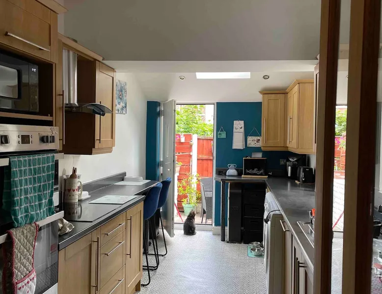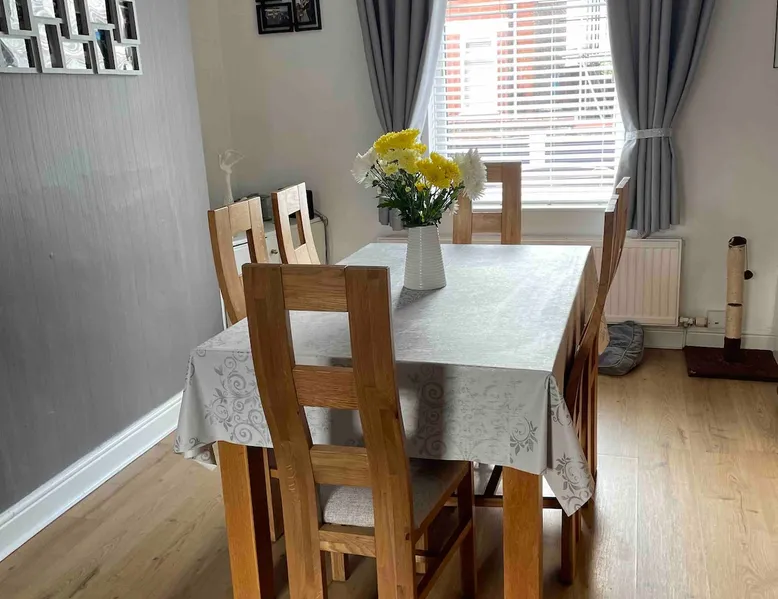 Your family will be close to everything when you stay at this centrally-located place. Local transport accessible to all areas of Manchester via metro link or bus. Close to Trafford Center , media city and Manchester United’s ground. Guests are solely responsible for their children at all times The space Double bedroom, shared reception rooms, large Kitchen and bathroom with shower, outside seating space Guest access Bedroom, bathroom, kitchen, dining room, lounge outside area During your stay Will be available for all your stay if you are bringing children you must look after them at all times when in my home Other things to note We have a dog called red ( of course he is a Man U fan) we also have a cat who strolls in and out when she pleases both are friendly. They are part of the family so if you do not like cats or dogs this isn’t the stay for you It’s on the street parking.