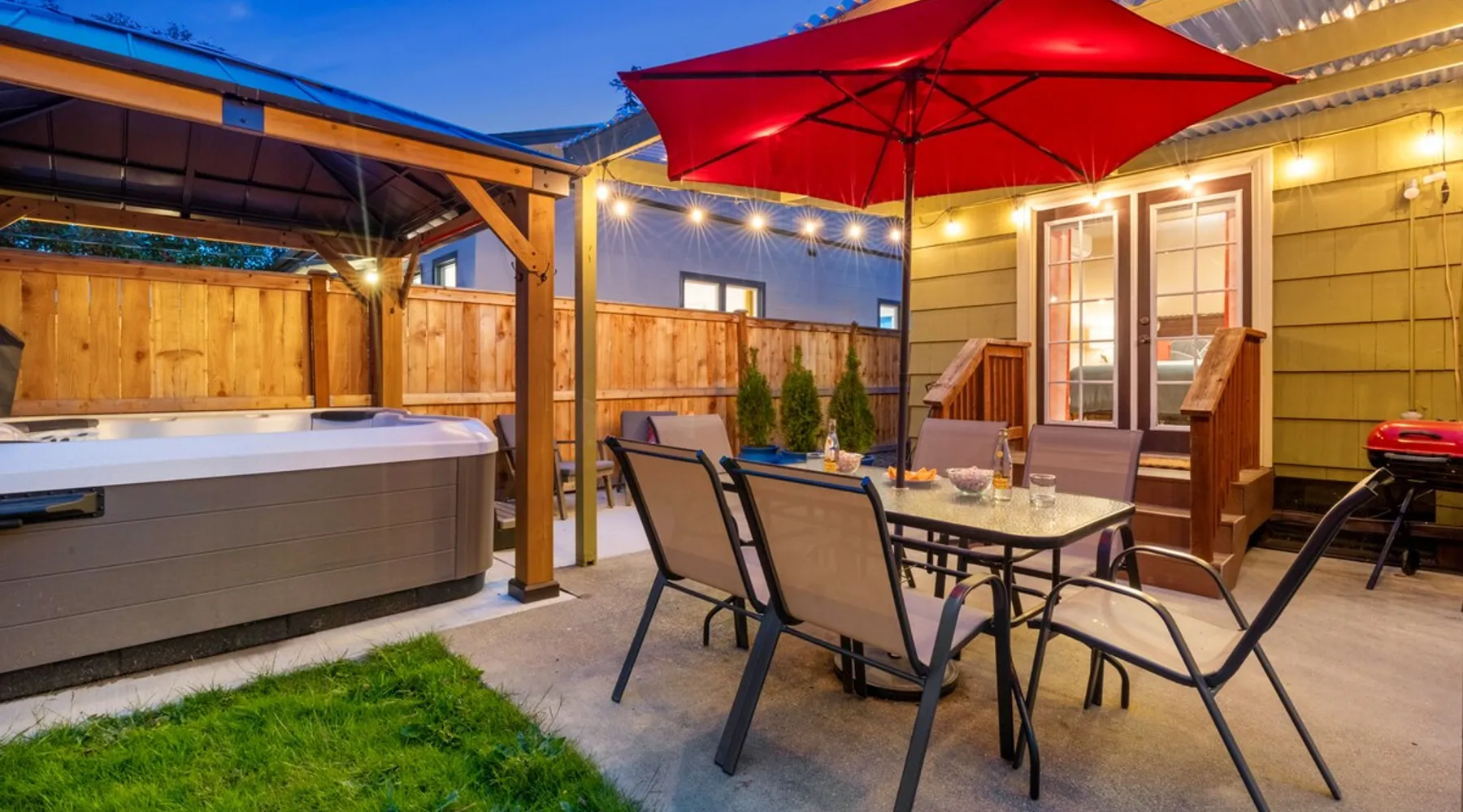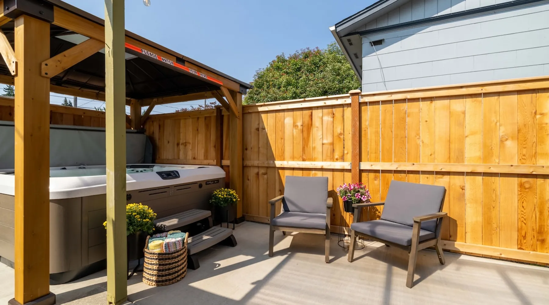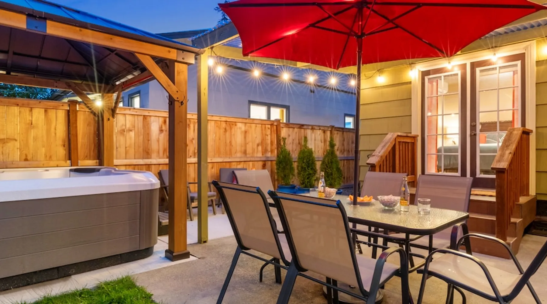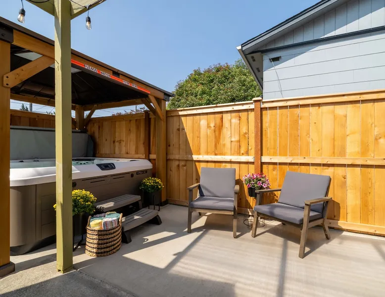 Welcome to your dream cottage, a delightful retreat offering 3 bedrooms, 2.5 bathrooms, and a haven for wellness enthusiasts. This charming abode has been meticulously designed to provide a tranquil escape with a dedicated fitness room, complete with options for meditation, workouts, and indulgent relaxation in the sauna. Step outside onto the patio for some time in the hot tub & fresh air. Across the street is a playground, a 5 minute walk will take you to the store. 10 minute walk to downtown The space The main floor seamlessly connects the living room, dining area, and kitchen, fostering a sense of togetherness and easy flow throughout the space. The living room features cozy seating arrangements, perfect for unwinding with loved ones or curling up with a good book.The fully equipped kitchen boasts modern appliances, ample counter space, and all the necessary tools to prepare delicious meals. Whether you're a seasoned chef or a culinary novice, this kitchen provides everything you need to create gastronomic delights. The adjacent dining area offers a stylish setting for enjoying your meals together, with a large table and comfortable seating. The three bedrooms are spacious and thoughtfully appointed, providing a serene sanctuary for rest and relaxation. Each bedroom is furnished with plush beds, adorned with soft linens and plump pillows, ensuring a peaceful night's sleep. The fitness room is a dedicated space for wellness and rejuvenation. Whether you seek meditation, a workout, or relaxation, this room caters to all your needs. Settle into a serene corner for peaceful meditation, surrounded by calming decor and natural elements., and when it's time to unwind, step into the sauna, allowing the warmth to melt away any tension, leaving you feeling refreshed and rejuvenated. As you step outside onto the patio, you're greeted by a delightful oasis. Enjoy a moment of serenity as you revel in the peaceful surroundings, surrounded by lush greenery and a charming outdoor seating area. In summary, this three-bedroom, two-and-a-half-bathroom cottage offers a blissful retreat, blending comfort, wellness, and relaxation seamlessly. With a dedicated fitness room for meditation and workouts, a luxurious sauna, and a patio featuring a hot tub, this enchanting cottage provides the perfect setting to rejuvenate your mind, body, and spirit. Dog Friendly for well behaved pups, with pre-approval and fee. Up to 2 dogs allowed. We look forward to hosting you! Guest access The entire cottage and fenced backyard are available for your use. Other things to note Dog Friendly for well behaved pups, with pre-approval and fee. Up to 2 dogs allowed. Registration Details 001822